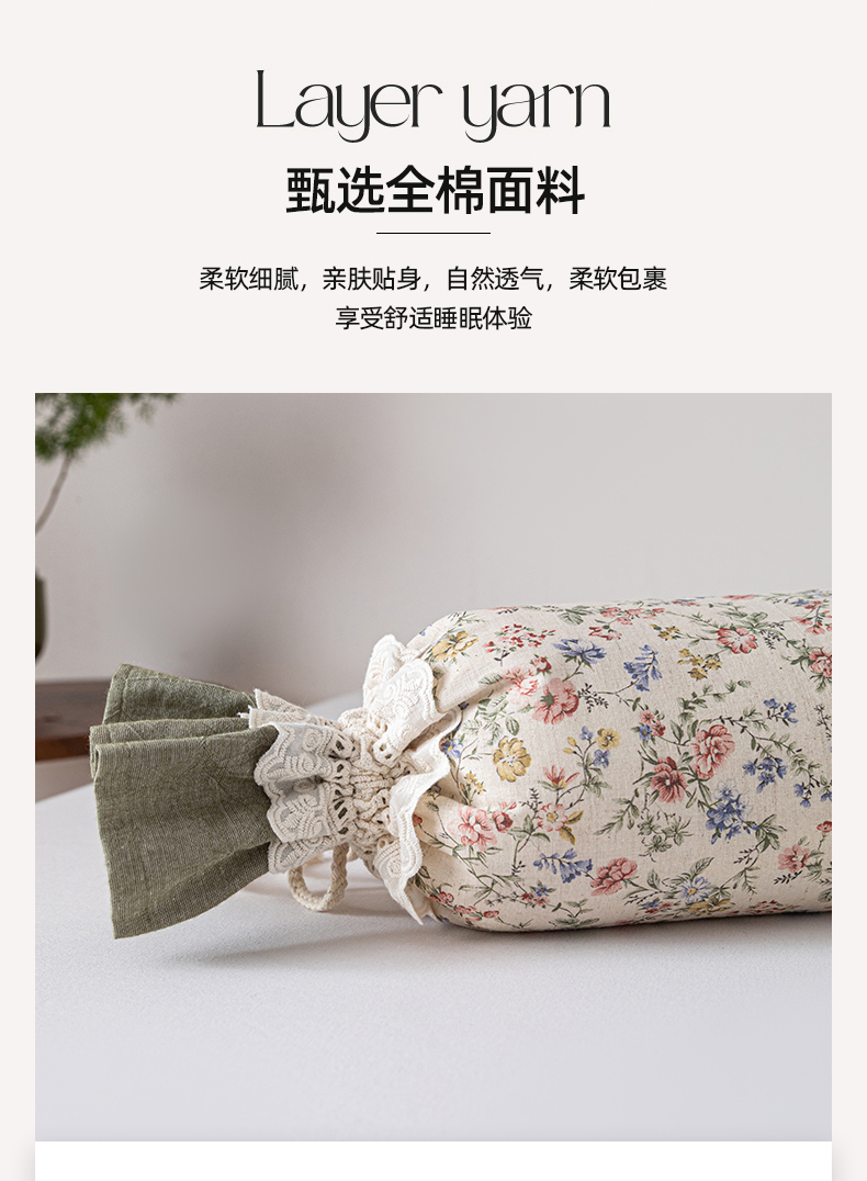 商品名称:卓昌枕芯 2026新款全棉双层纱小清新碎花糖果枕颈椎枕安抚枕枕芯枕头 糖果 -花语