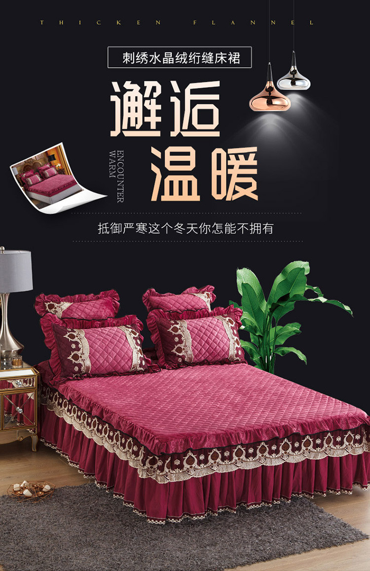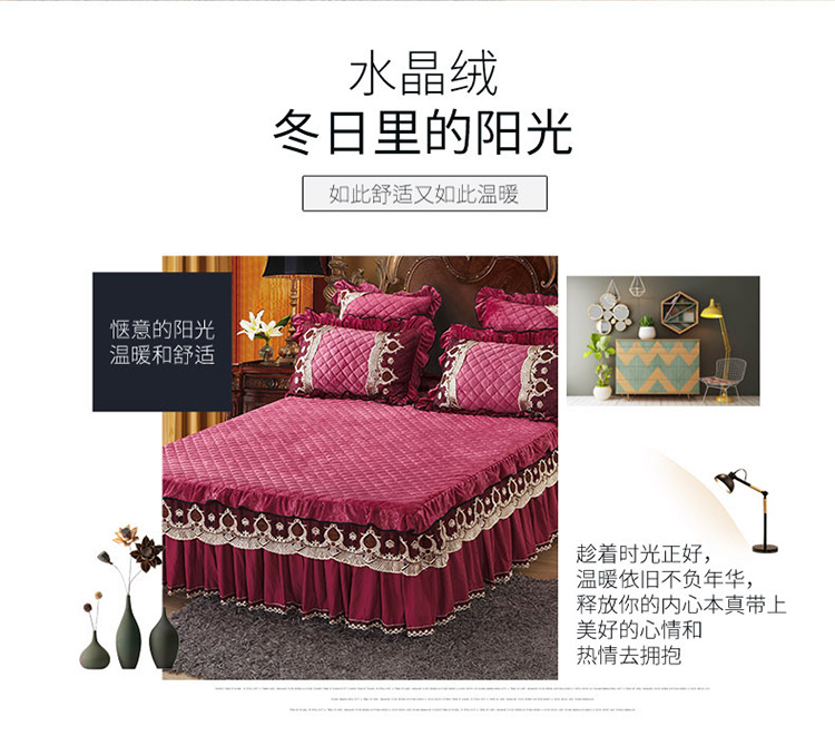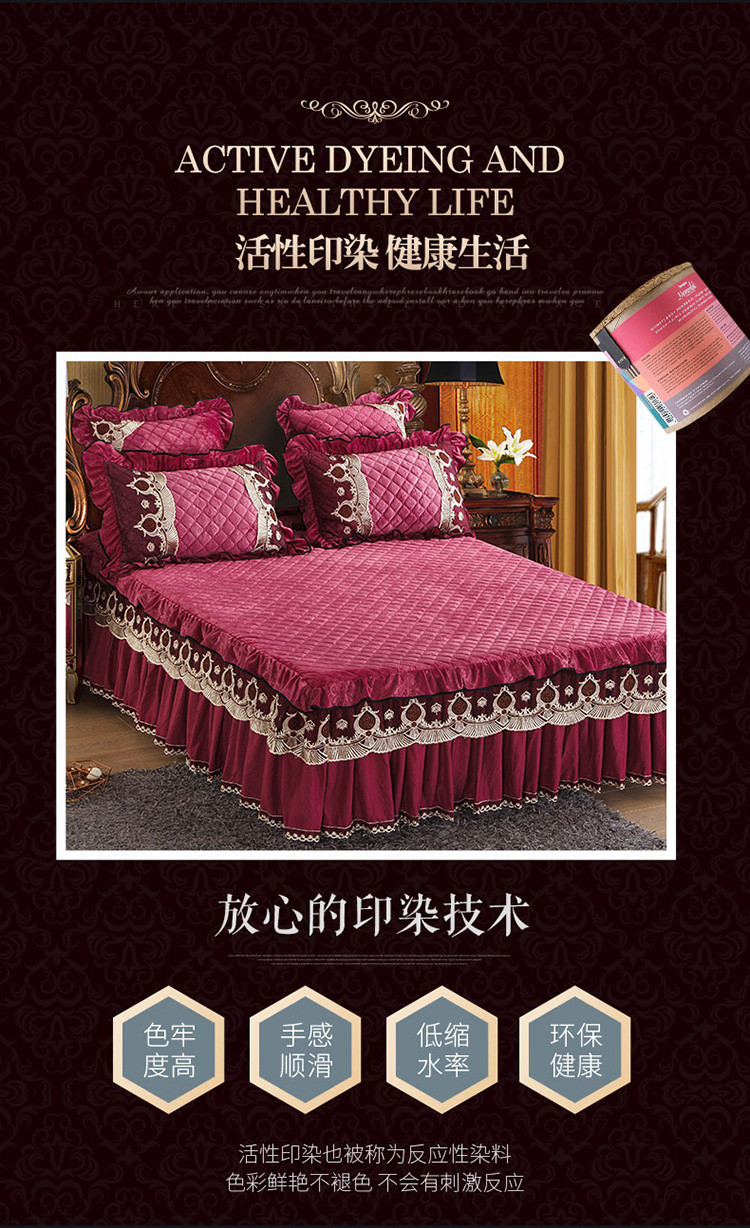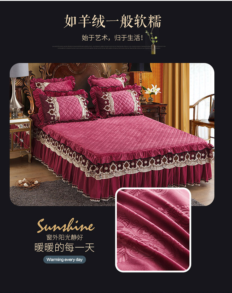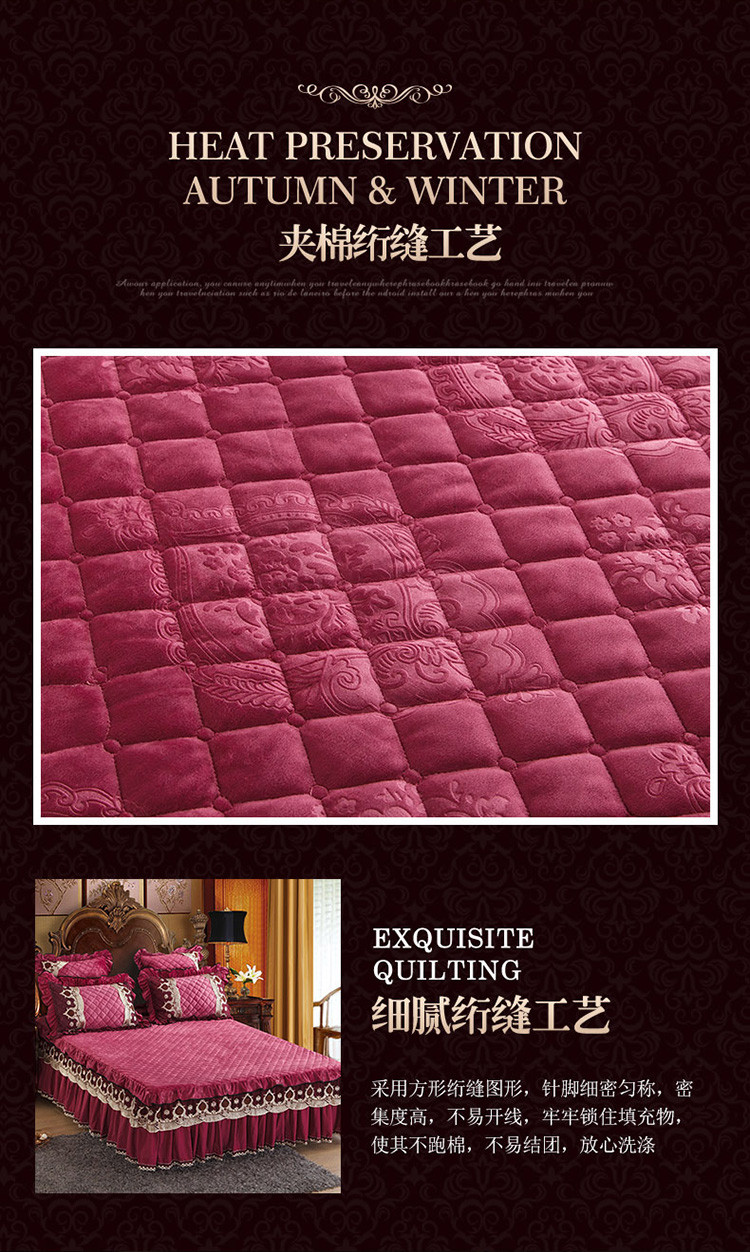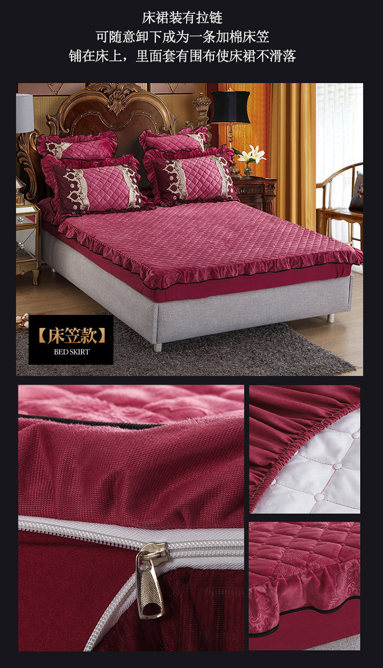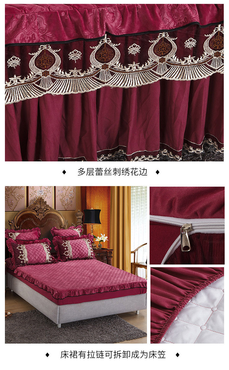 商品名称:兴美佳水晶绒压花拉链款单床裙-豪庭盛世 豆沙色