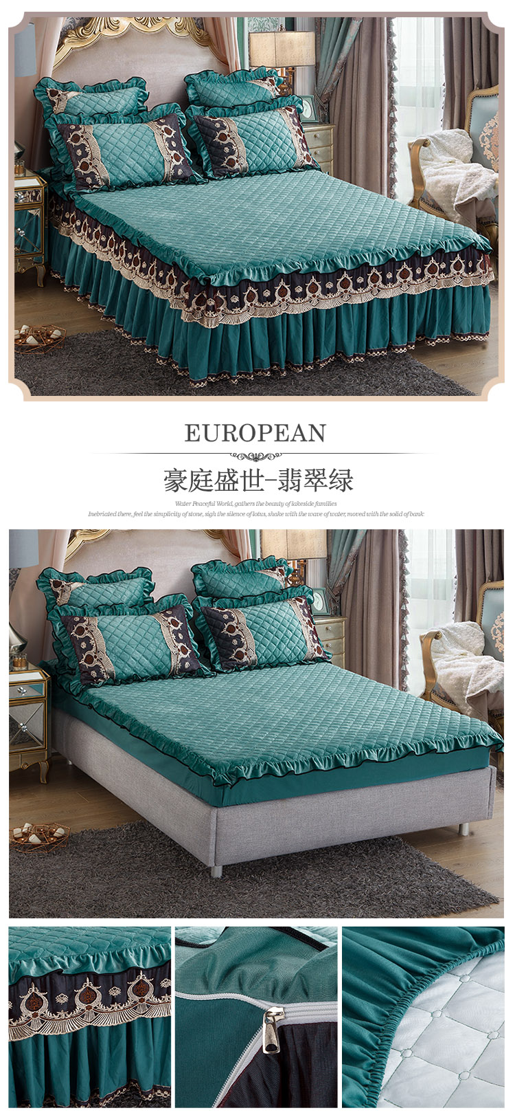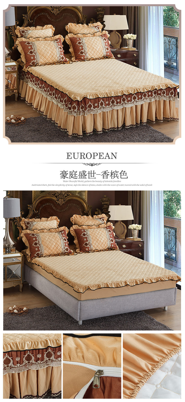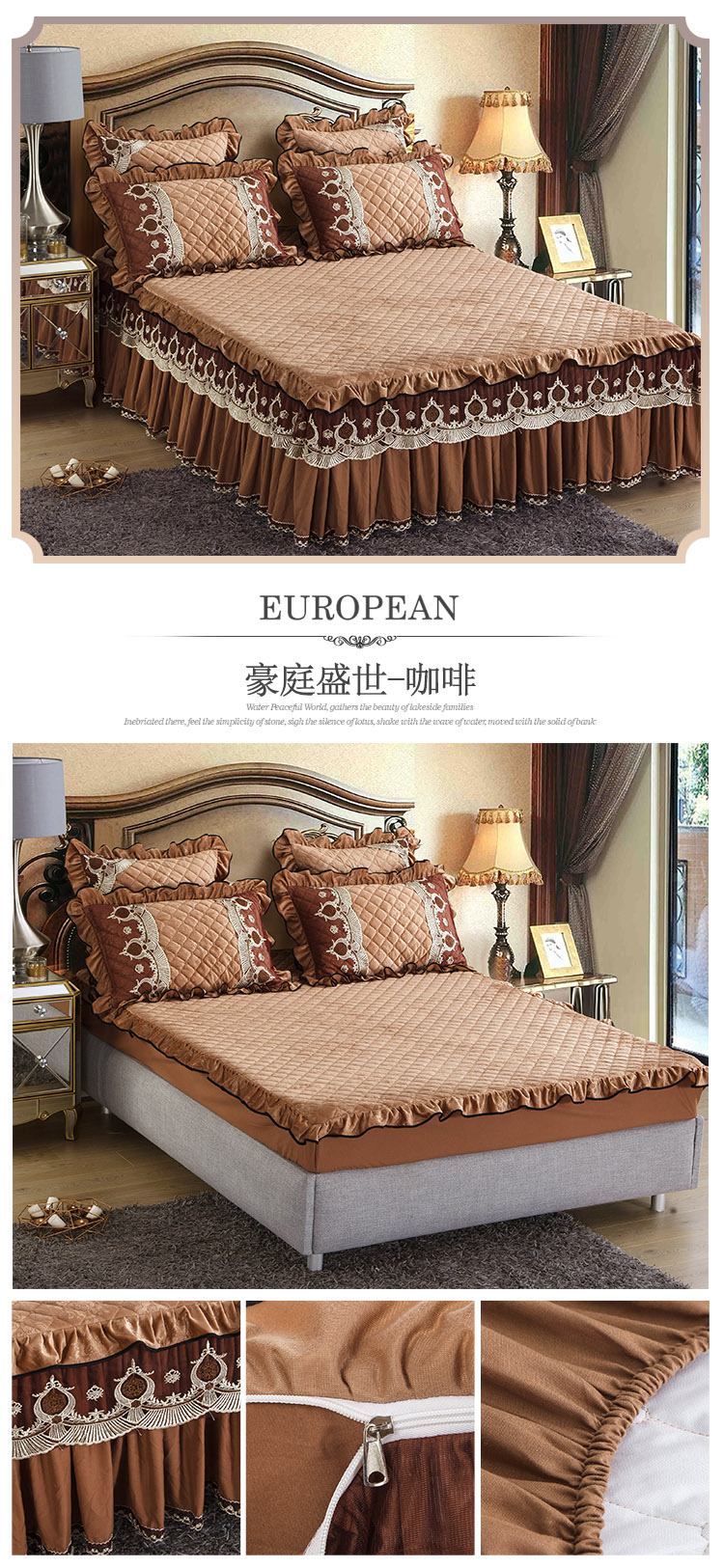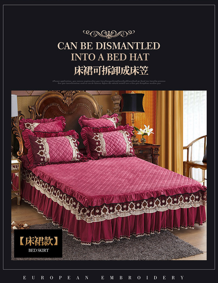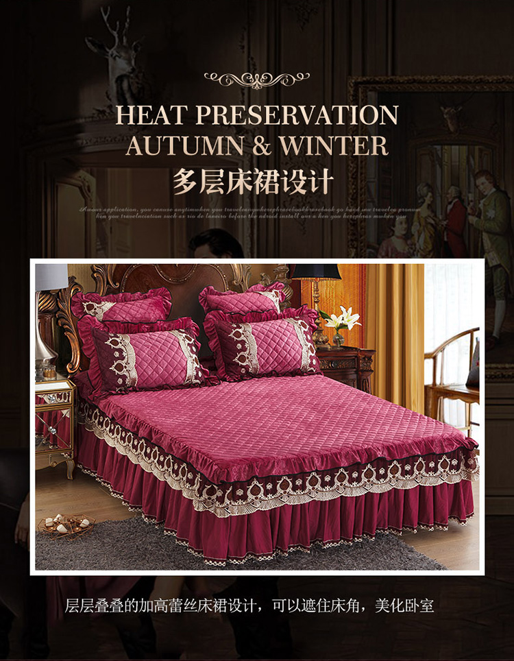 商品名称:兴美佳水晶绒压花拉链款单床裙-豪庭盛世 豆沙色