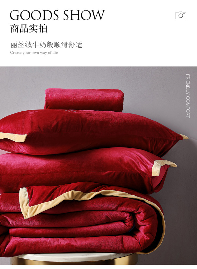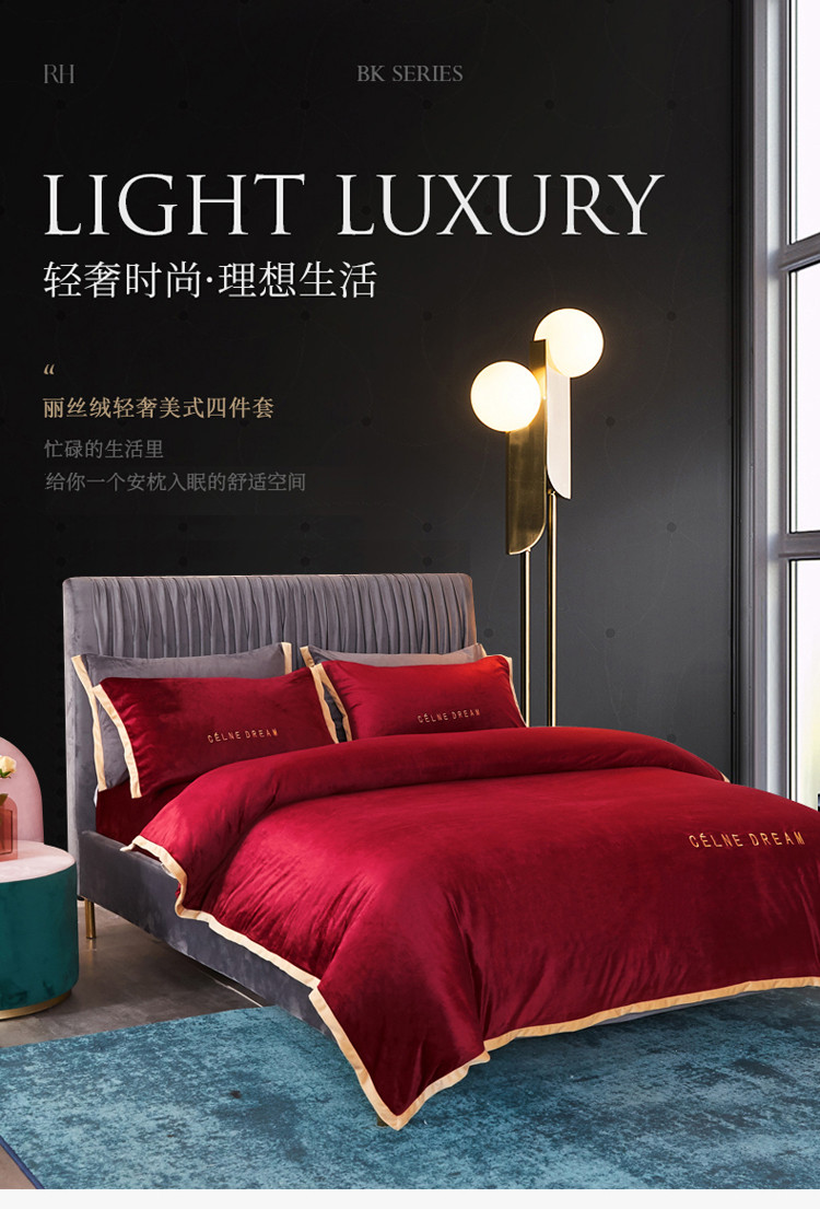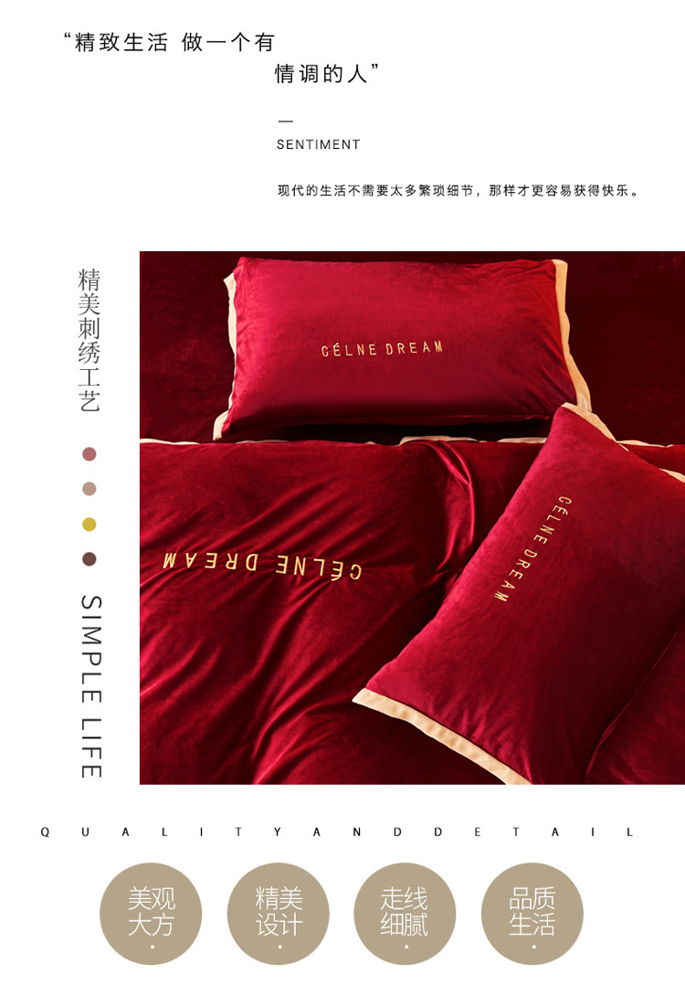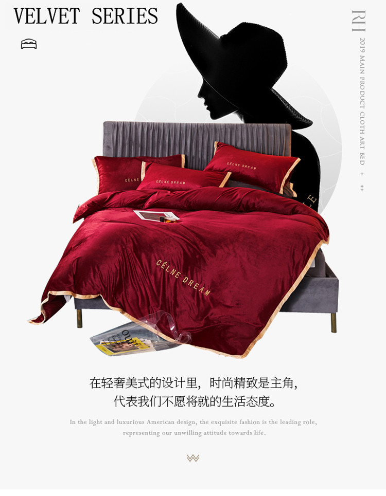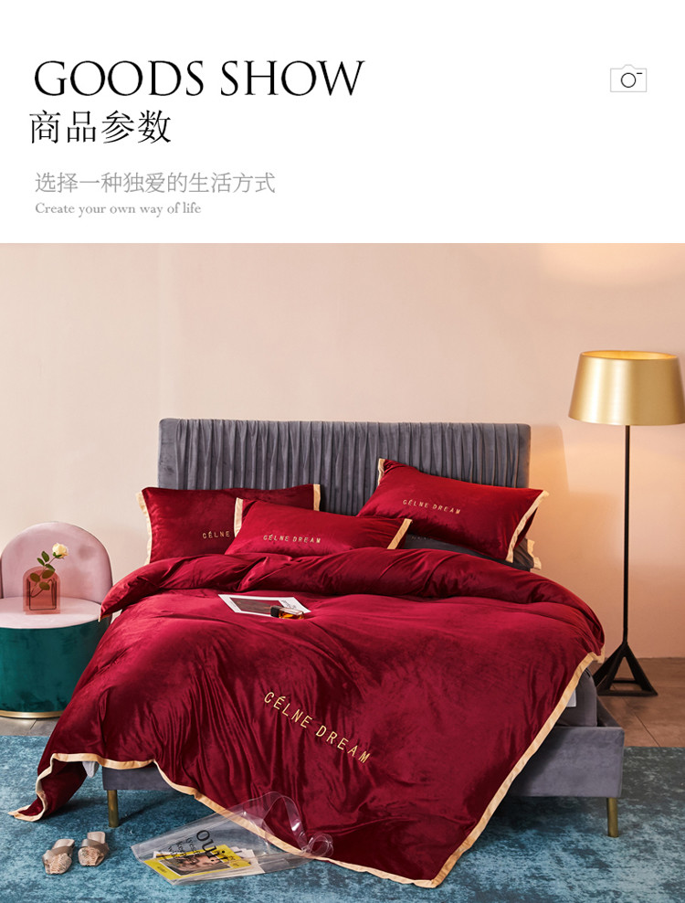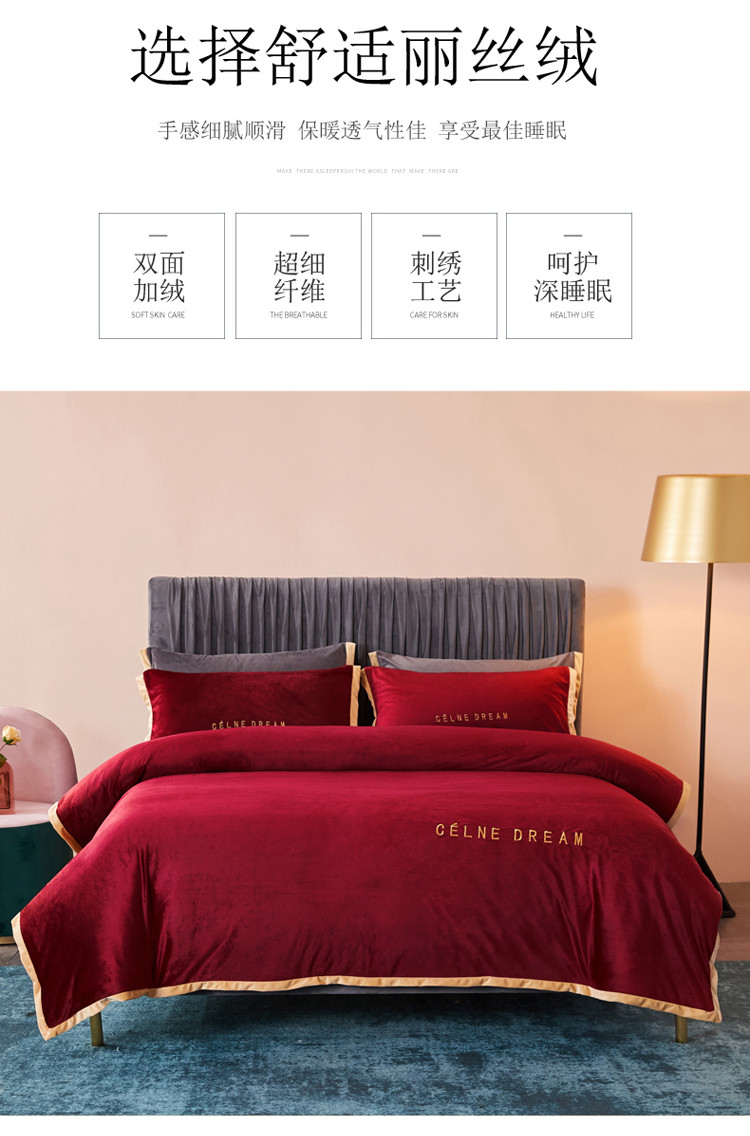 商品名称:安妮2020赛琳娜丽丝绒水晶绒四件套床单款带包装棚拍图 酒红