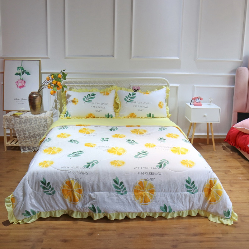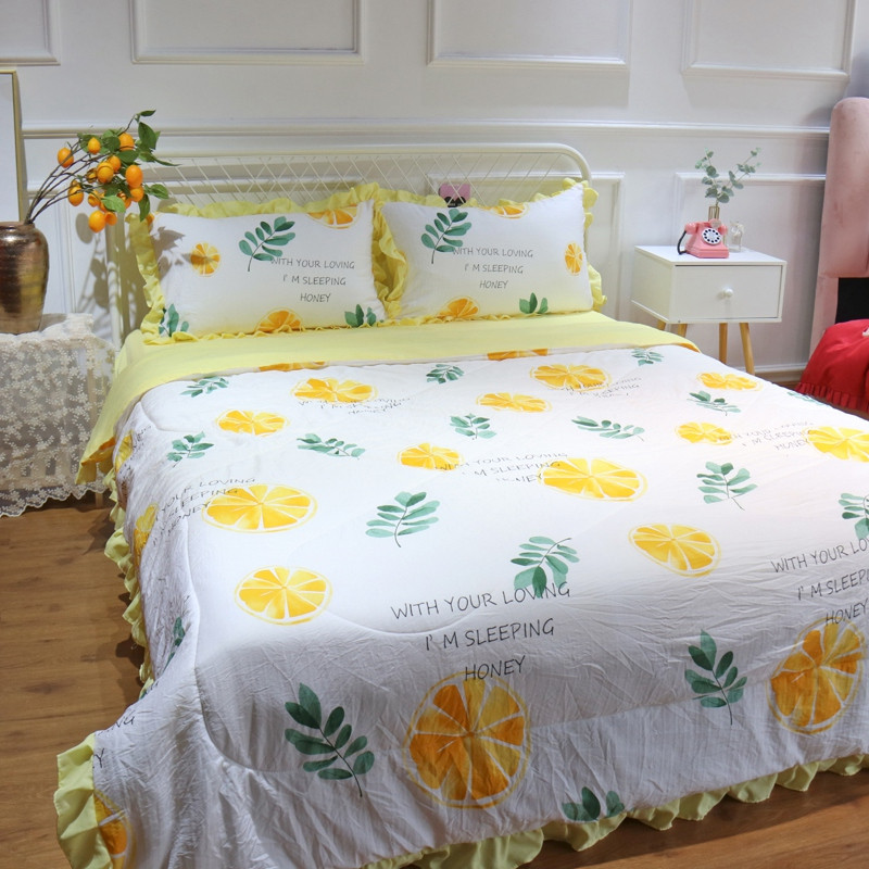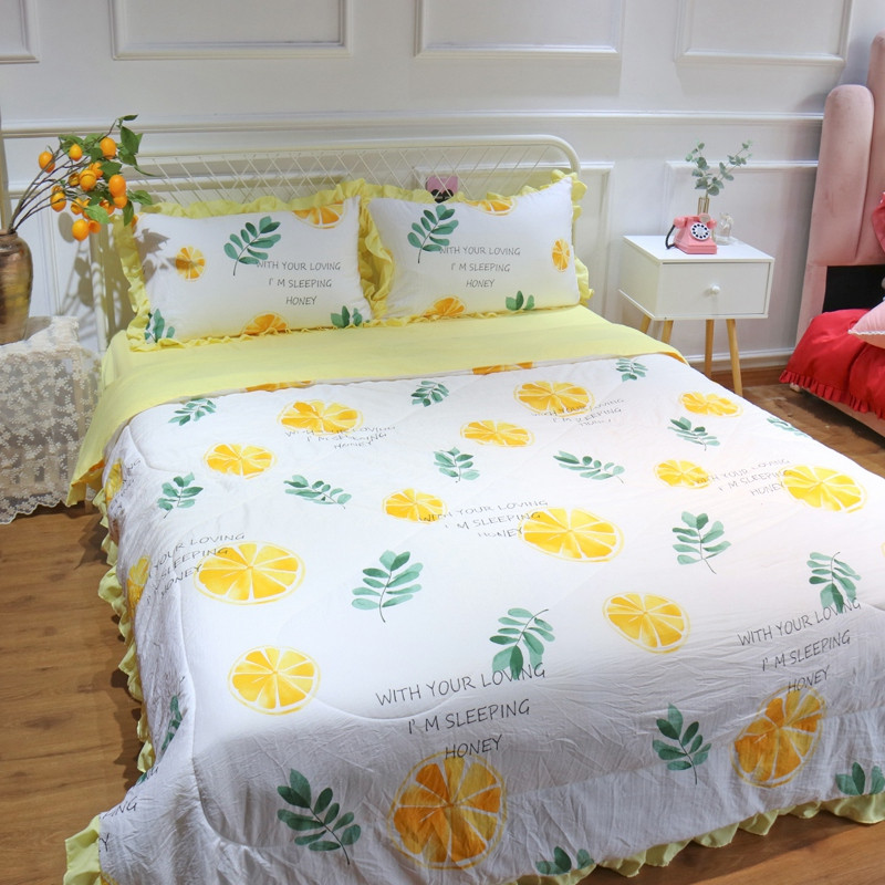 润缦 2020新款超柔水洗棉夏被四件套 黄橙子