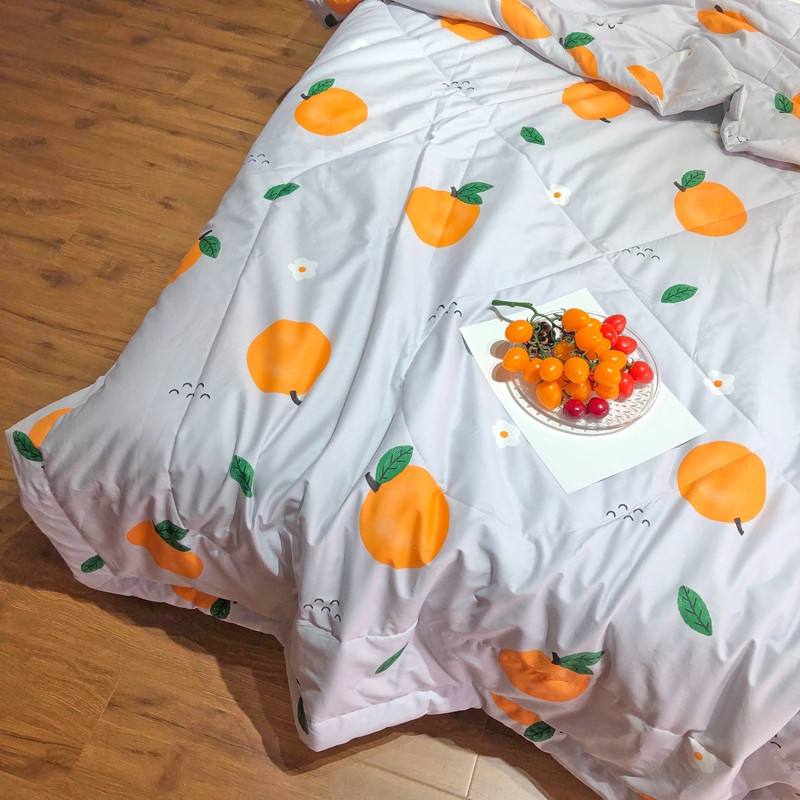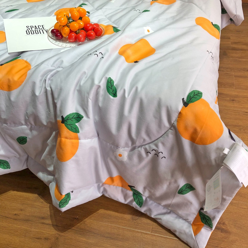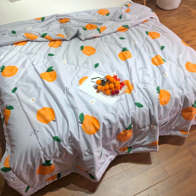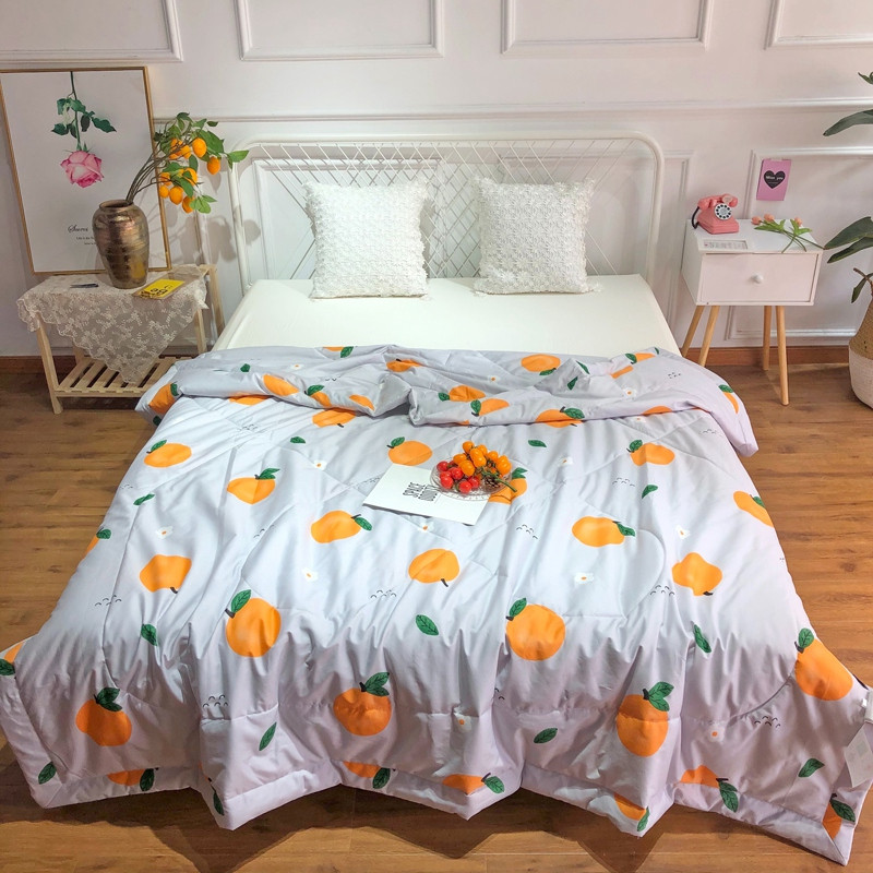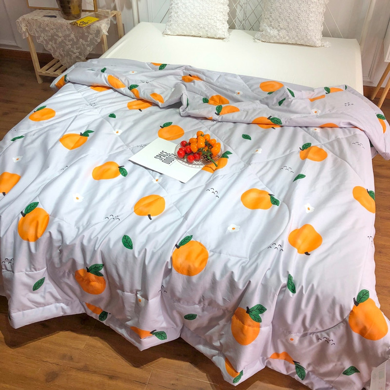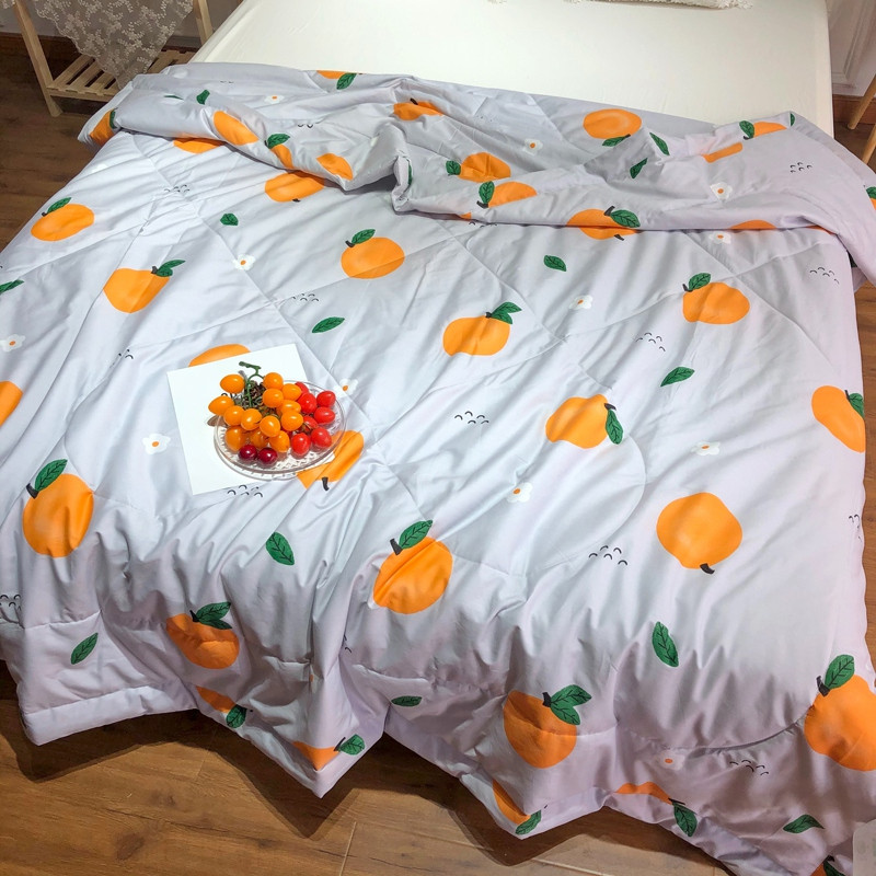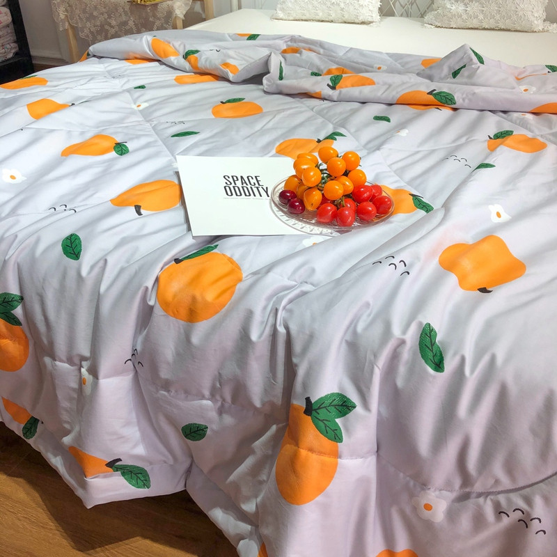 润缦 2020新款纯棉全棉精梳棉夏被 小橘子灰