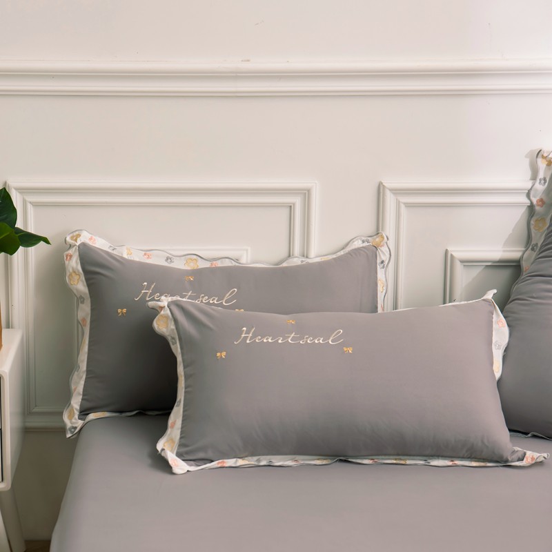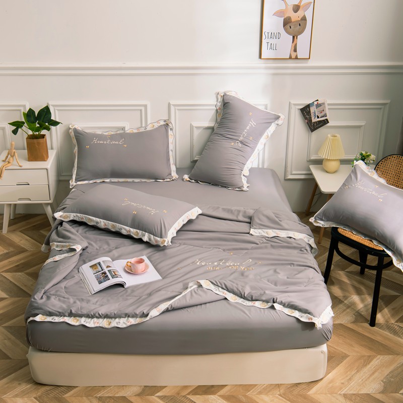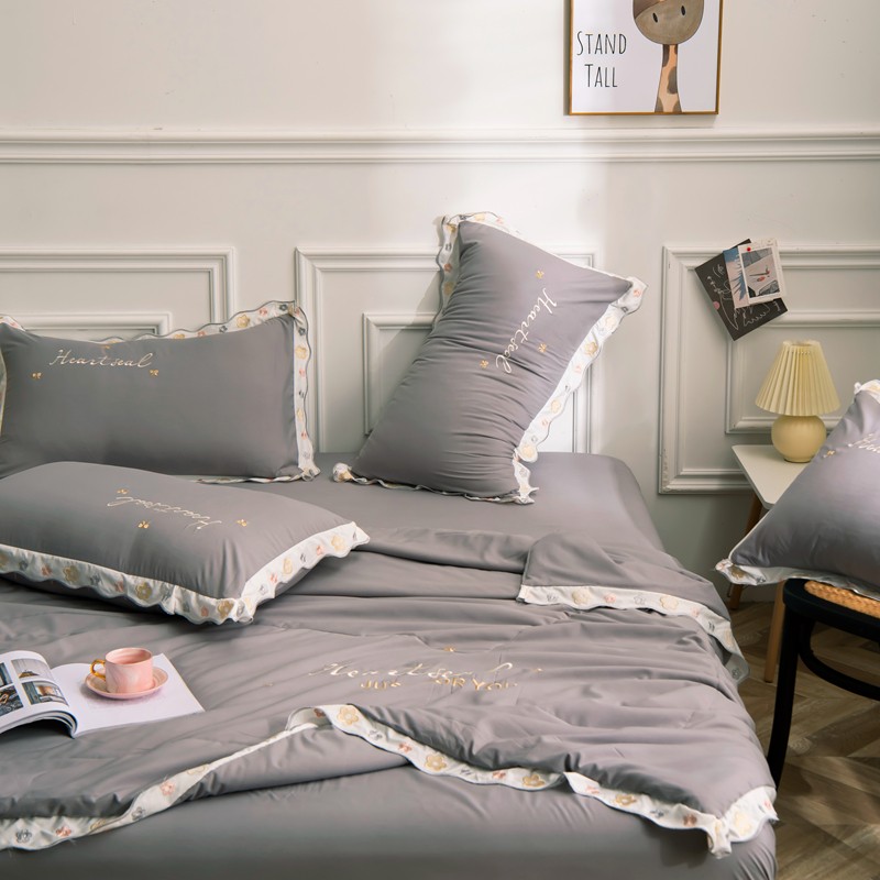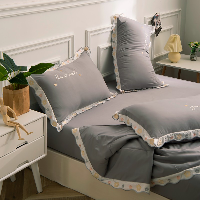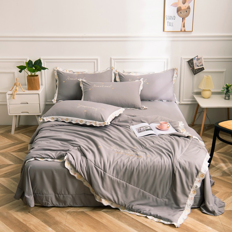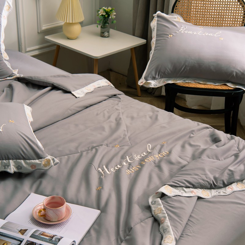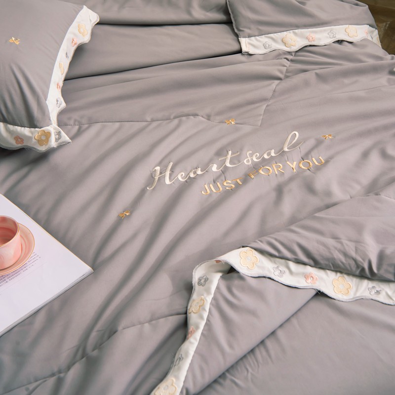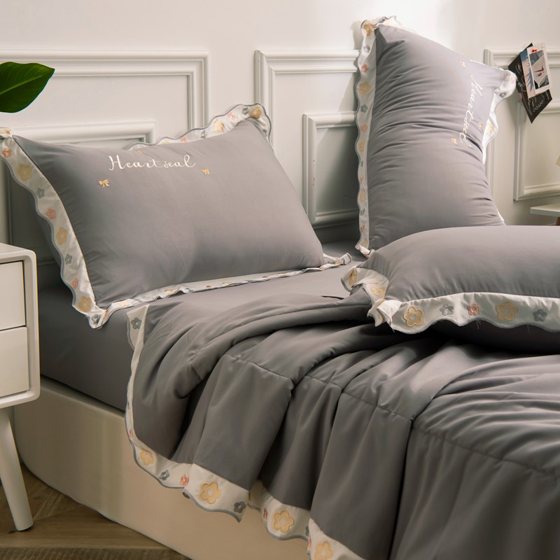 安妮家居 2021新款泫雅风水洗刺绣夏被四件套 爵士灰