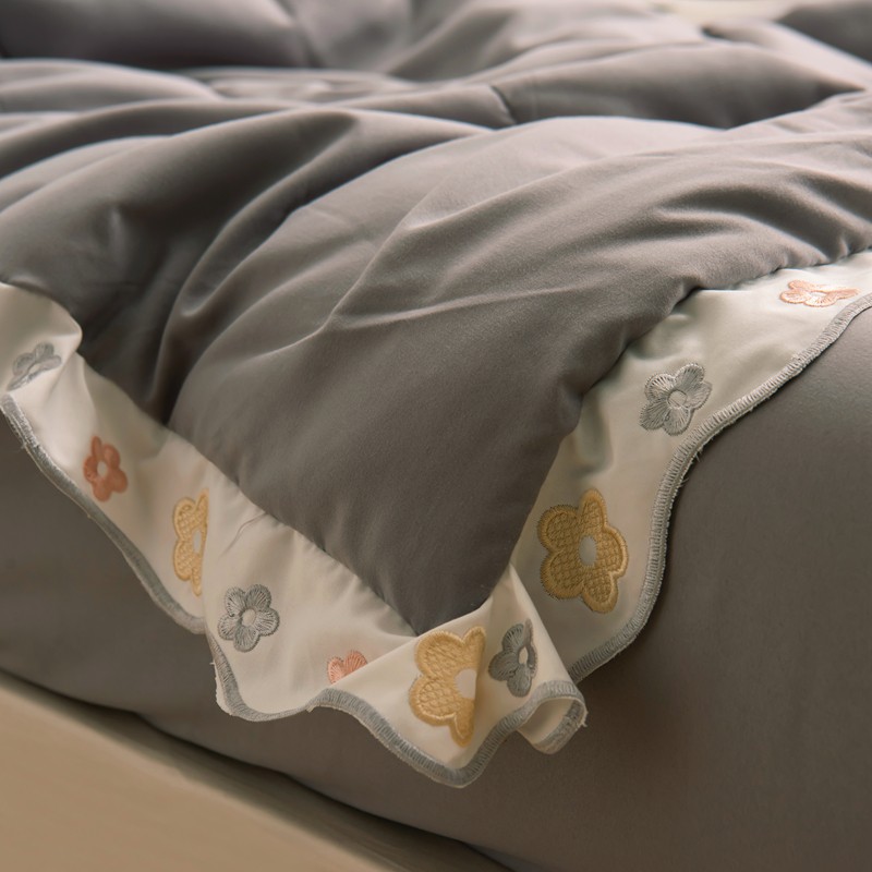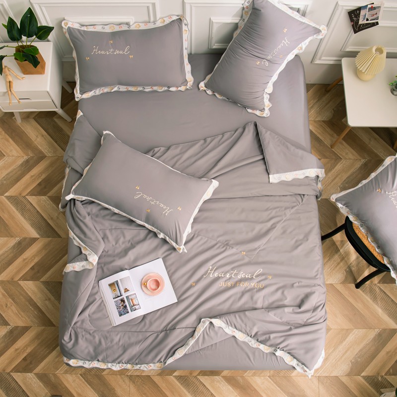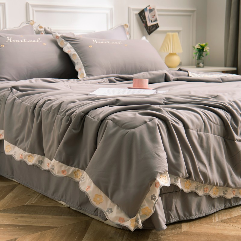 商品名称:安妮家居 2021新款泫雅风水洗刺绣夏被四件套 爵士灰