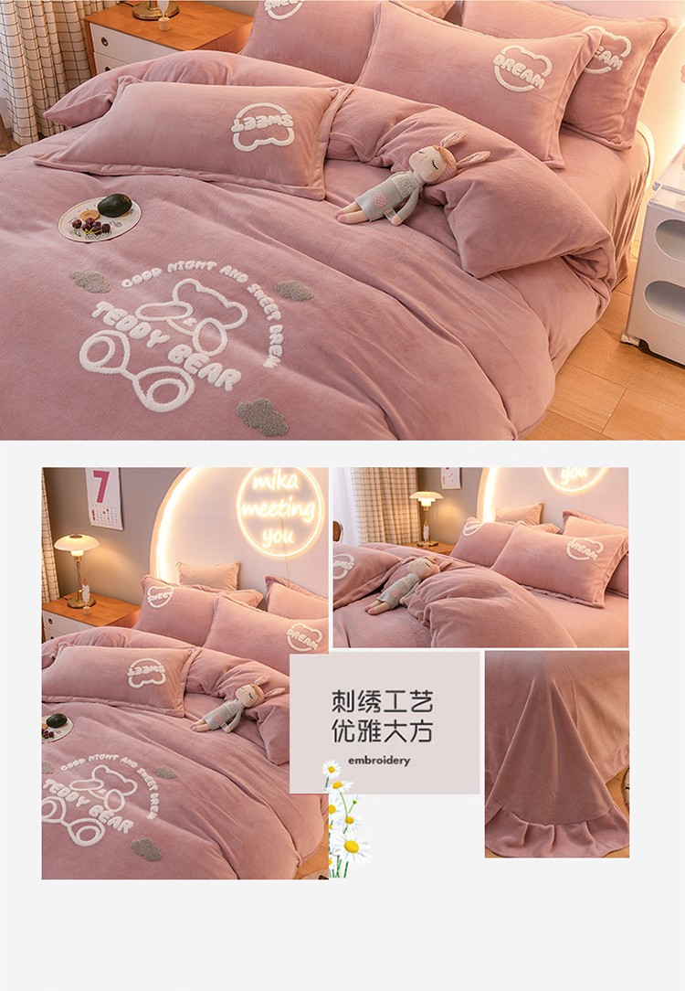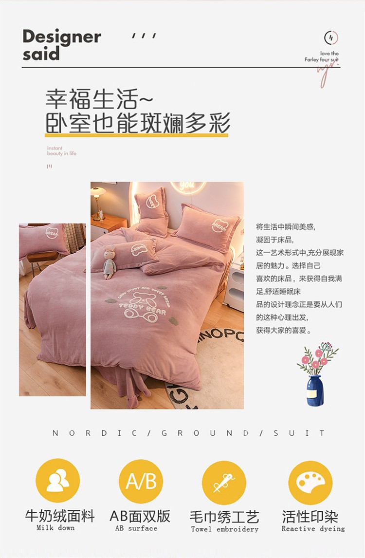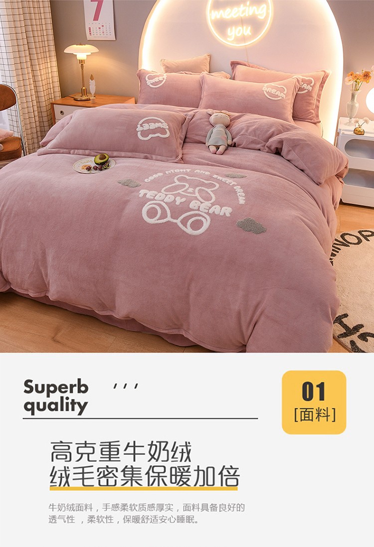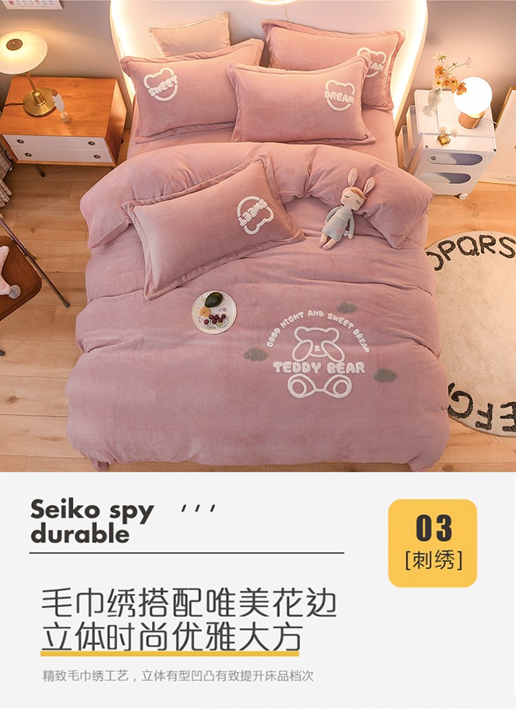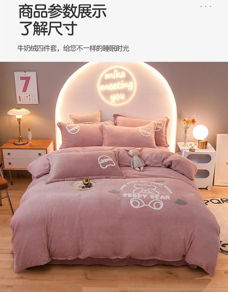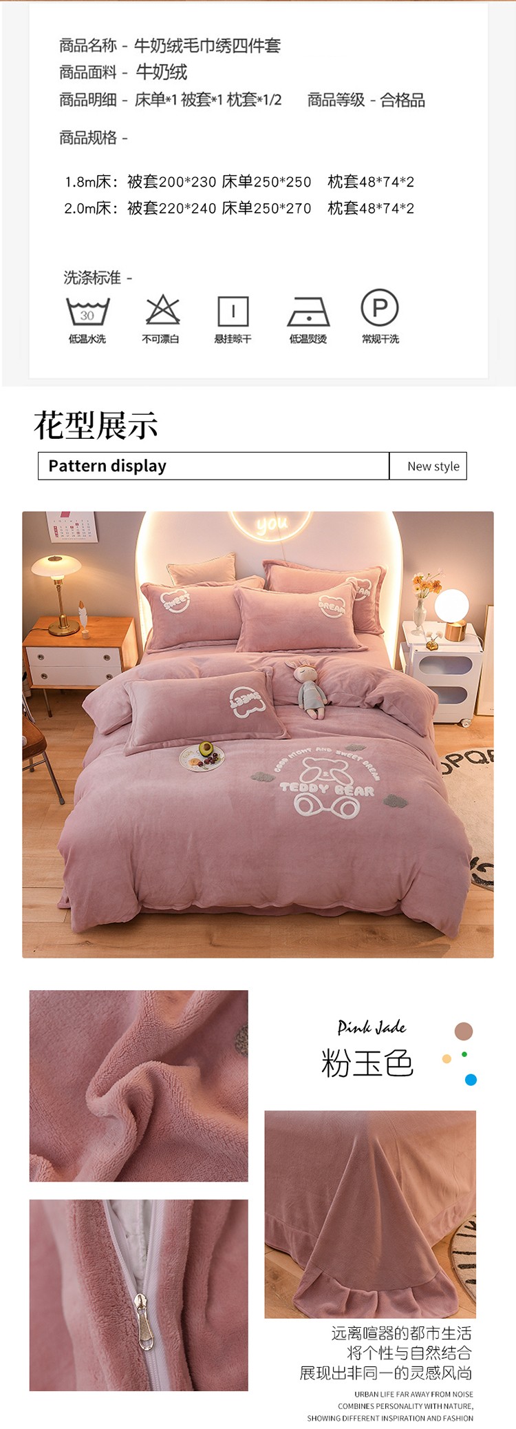 商品名称:靓生活 2021新款牛奶绒毛巾绣四件套 熊宝贝-浅豆沙