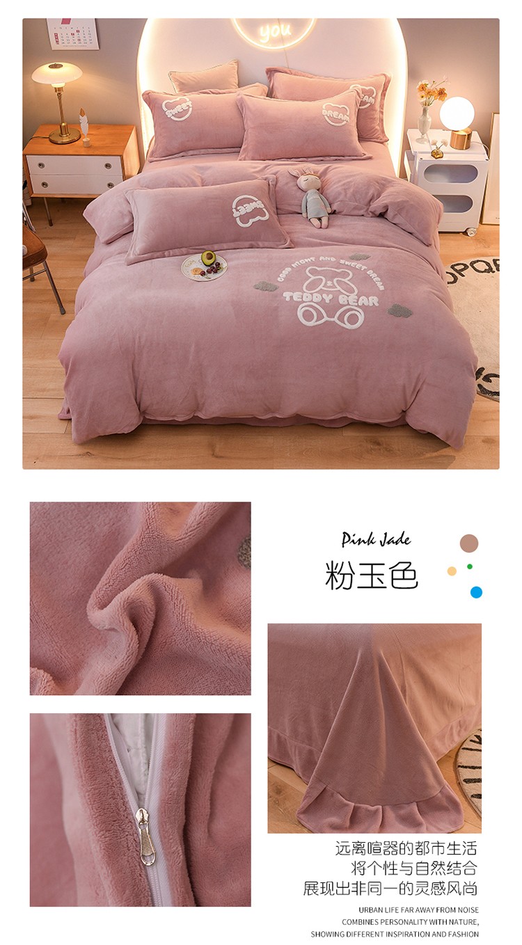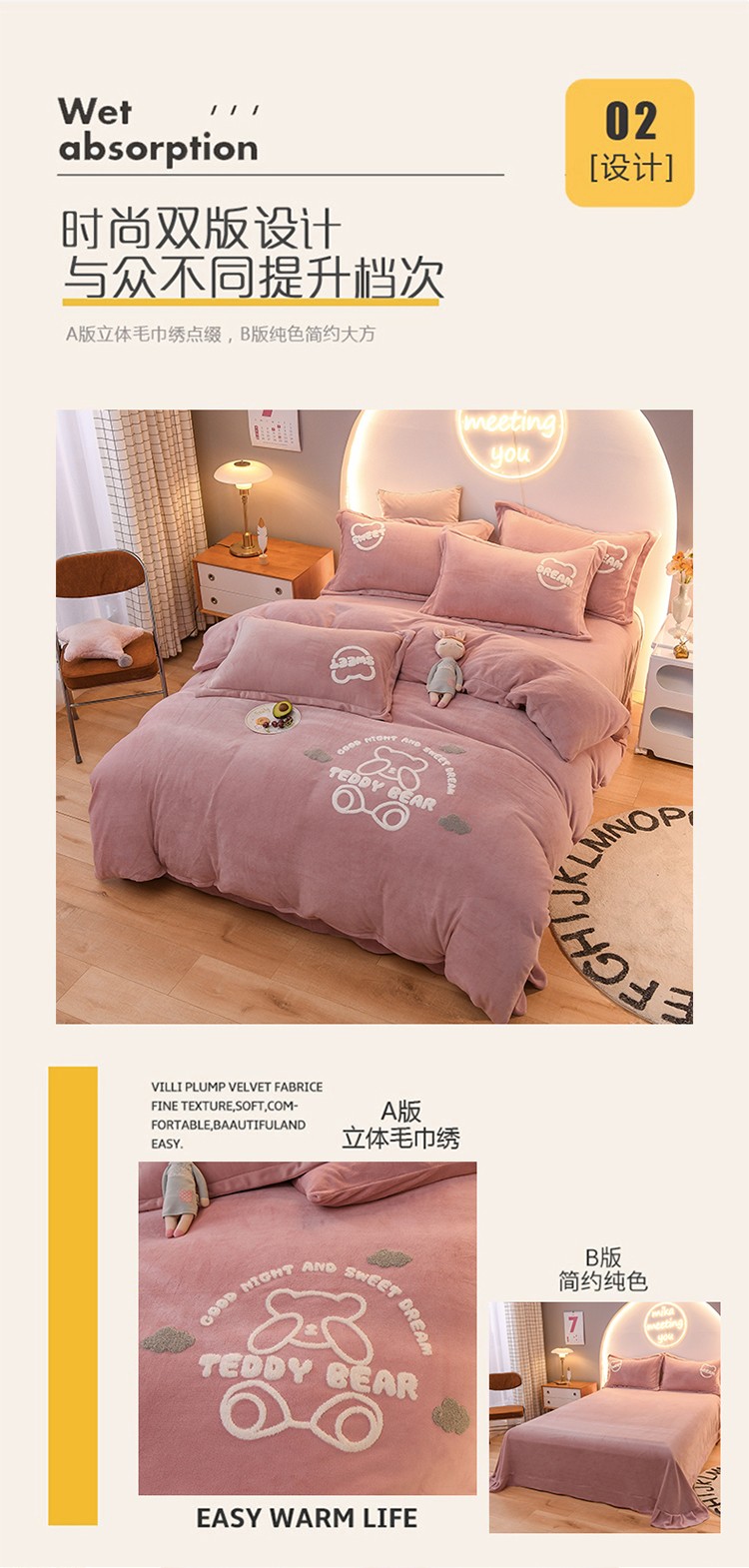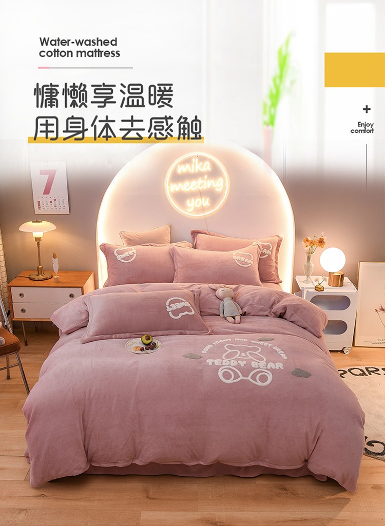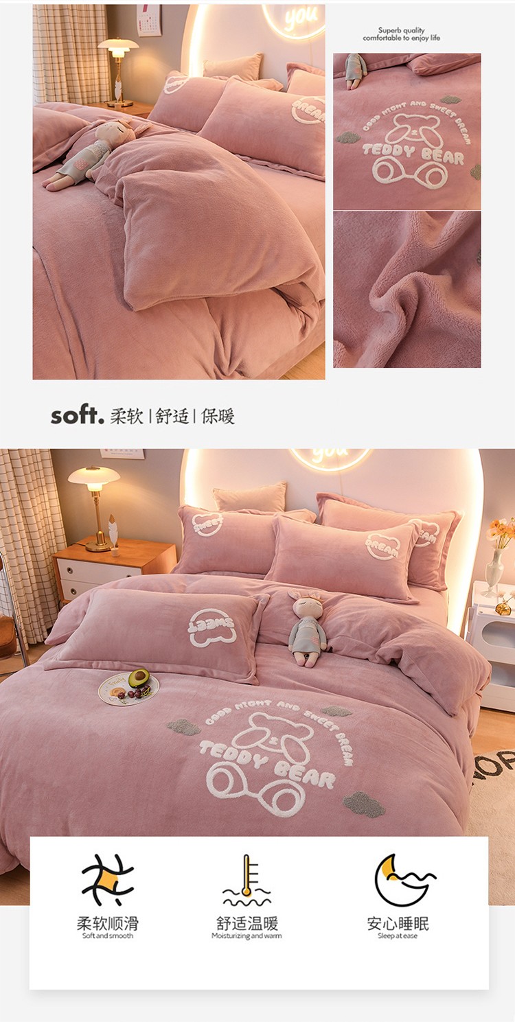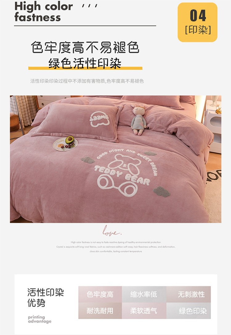 商品名称:靓生活 2021新款牛奶绒毛巾绣四件套 熊宝贝-浅豆沙