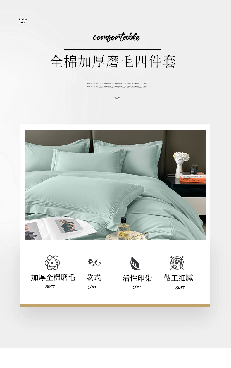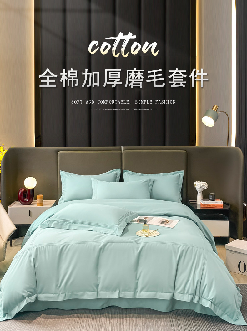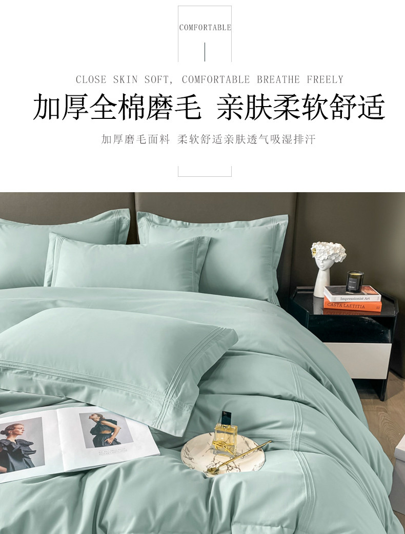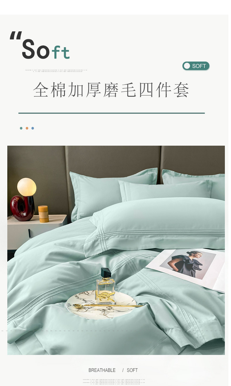商品名称:安妮 2022新款轻奢赫本加厚全棉磨毛四件套 赫本迷雾蓝