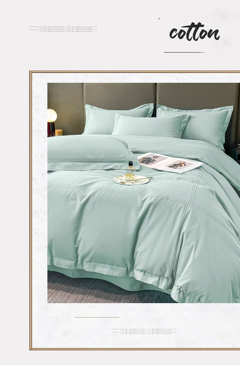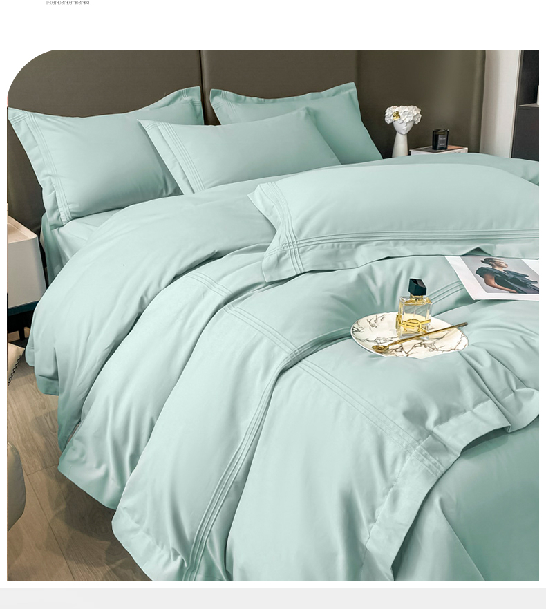 (总)安妮家居 2025新款100S长绒棉贡缎纯色四件套,水漾蓝,胧月灰,奶白色,蔷薇粉,柔缦紫,砂砾咖