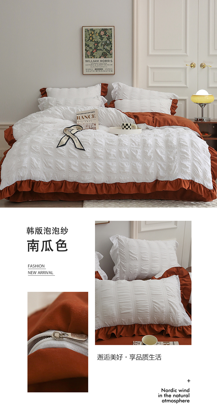 商品名称:仟网汇2023新款韩版方格泡泡纱四件套 南瓜色
