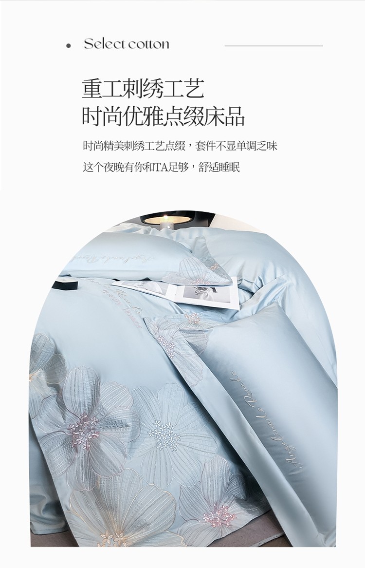 新款高端刺绣长绒棉全棉四件套纯棉被套床笠床单四件套 繁星兰