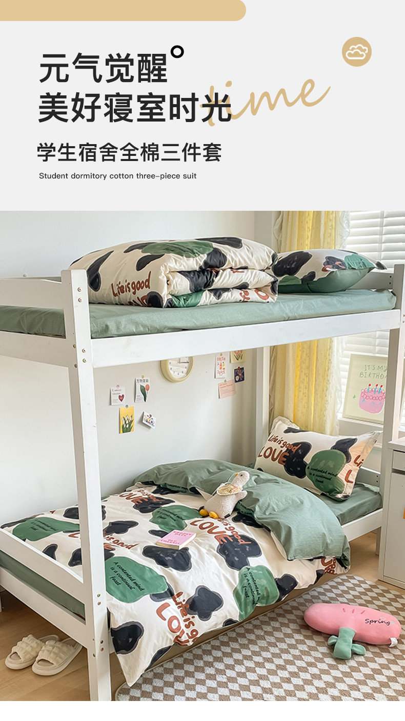金鑫汇 2023新款全棉宿舍印花三件套 蜗居