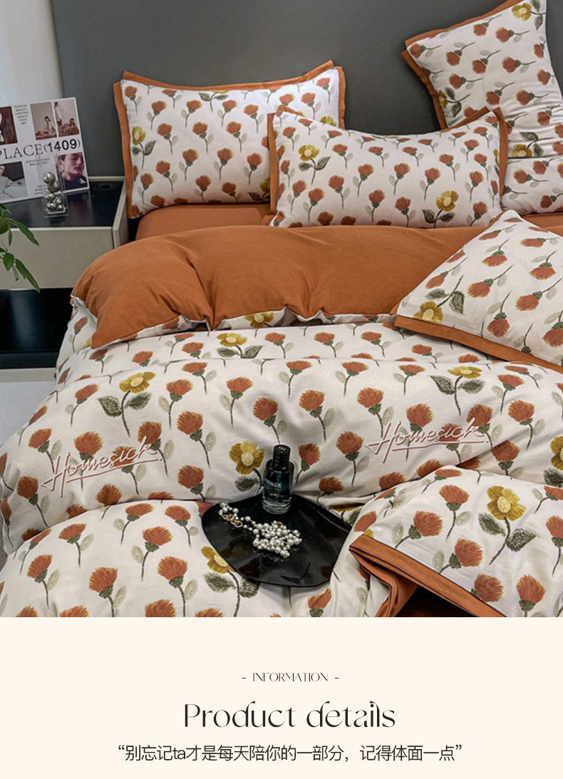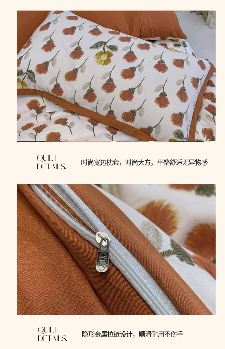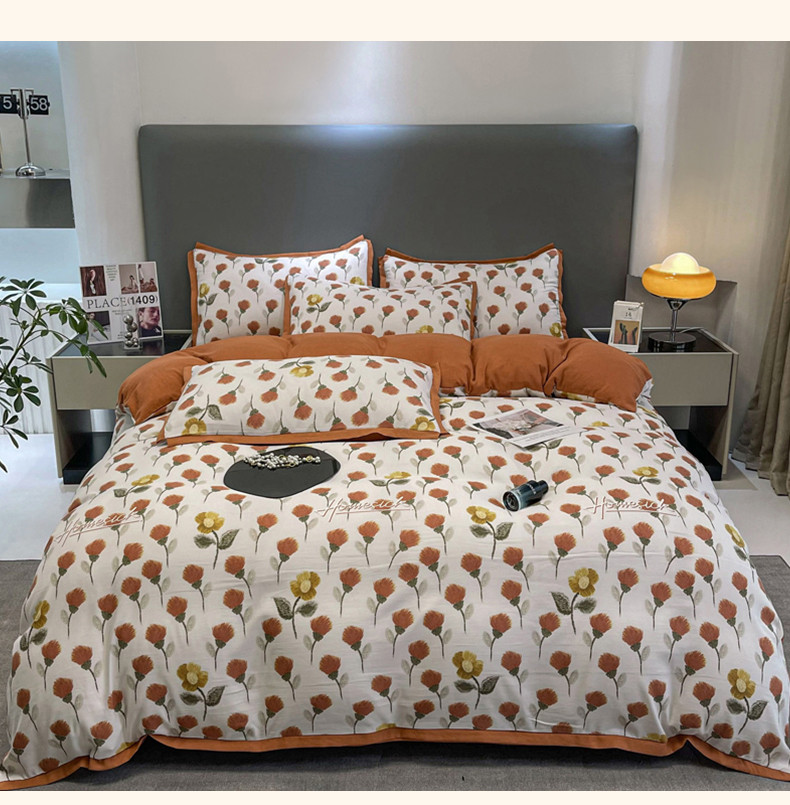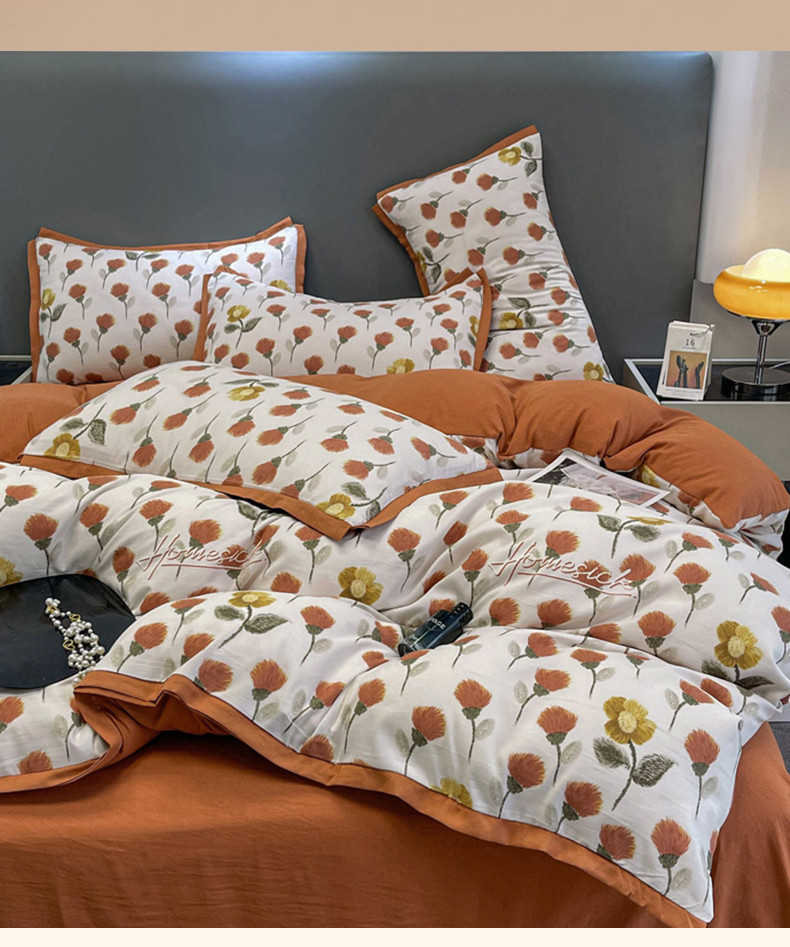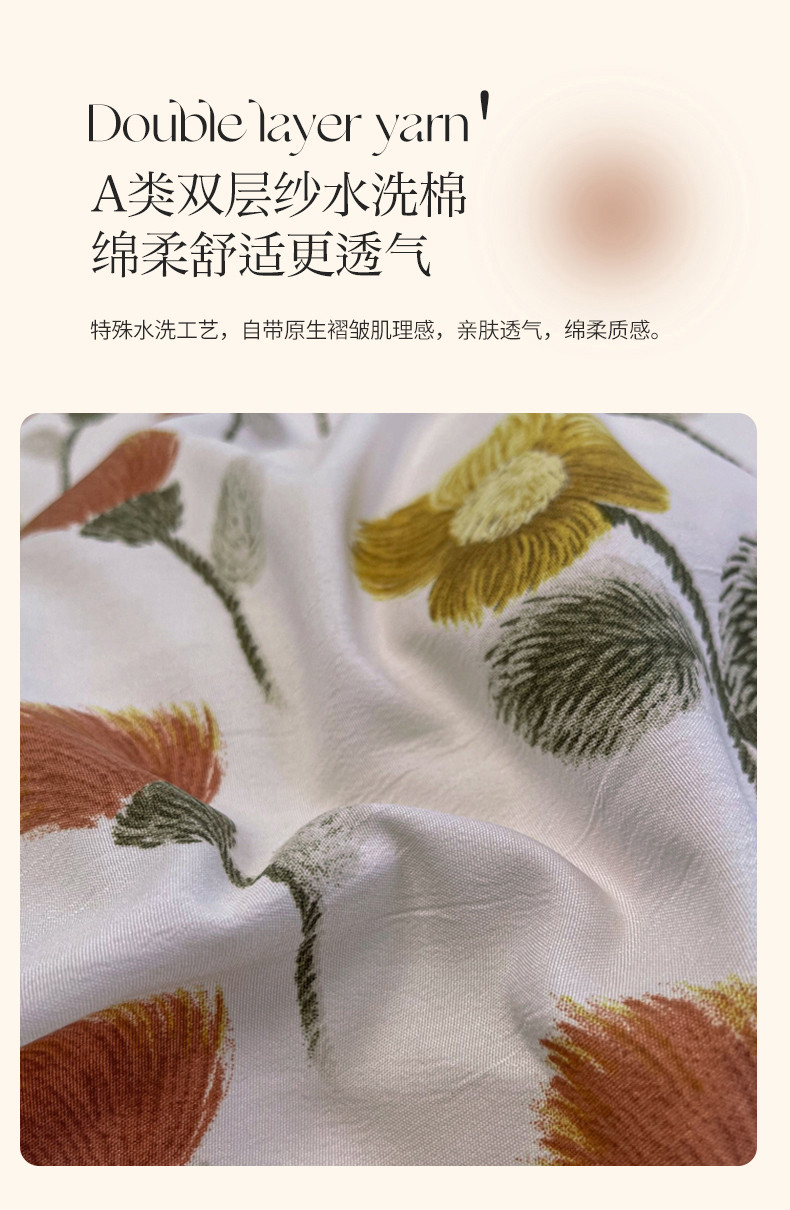 仟网汇 2023新款网红爆款棉麻水洗印花皱皱纱四件套 缤纷
