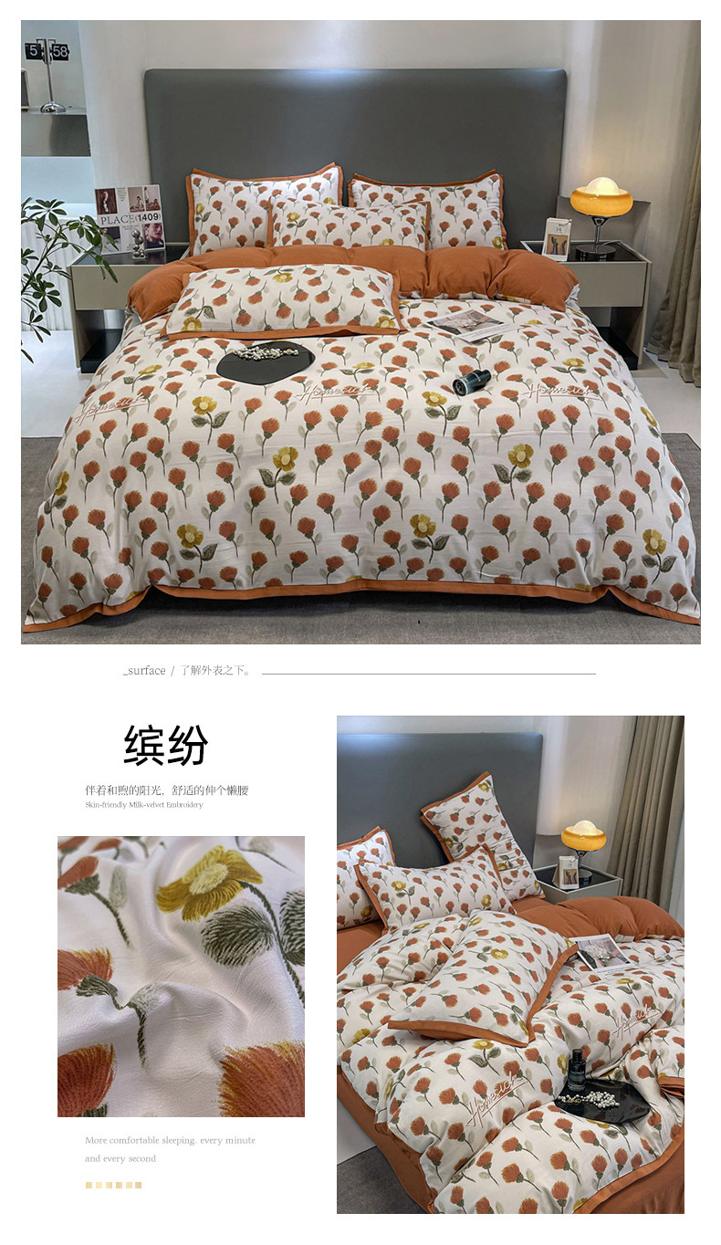 (总)仟网汇 2025新款亲肤舒适双面牛奶绒床盖款四件套,爱心灰,爱心紫,复古小花,黑珍珠,可可奶咖,蔷薇粉,丝绒蛋糕,胭脂,樱桃格趣,枝枝兔,妖姬,紫波点,豆蔻年华,朵缦,赫本,黑糖珍珠,樱桃派,豹纹kt咖