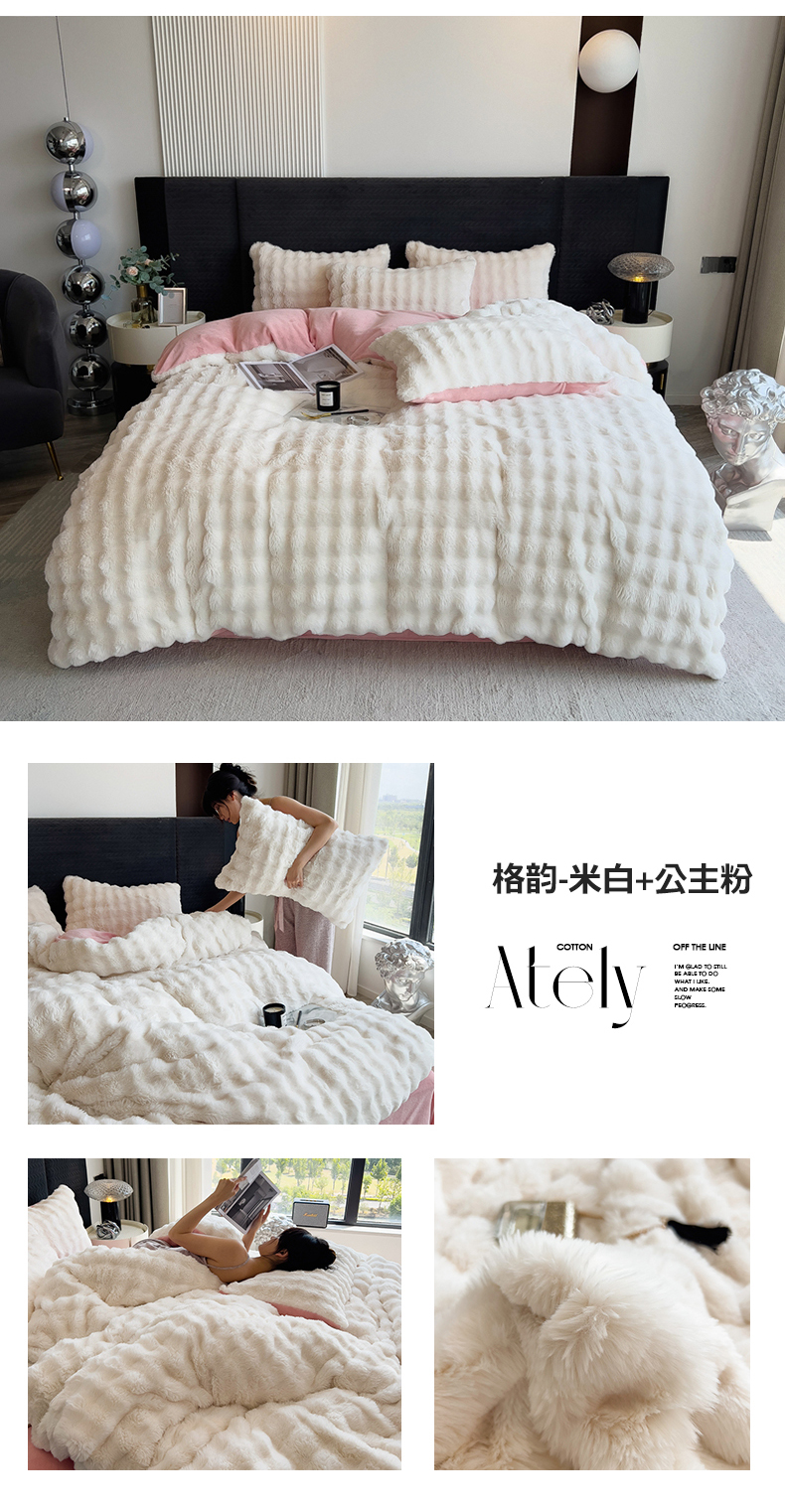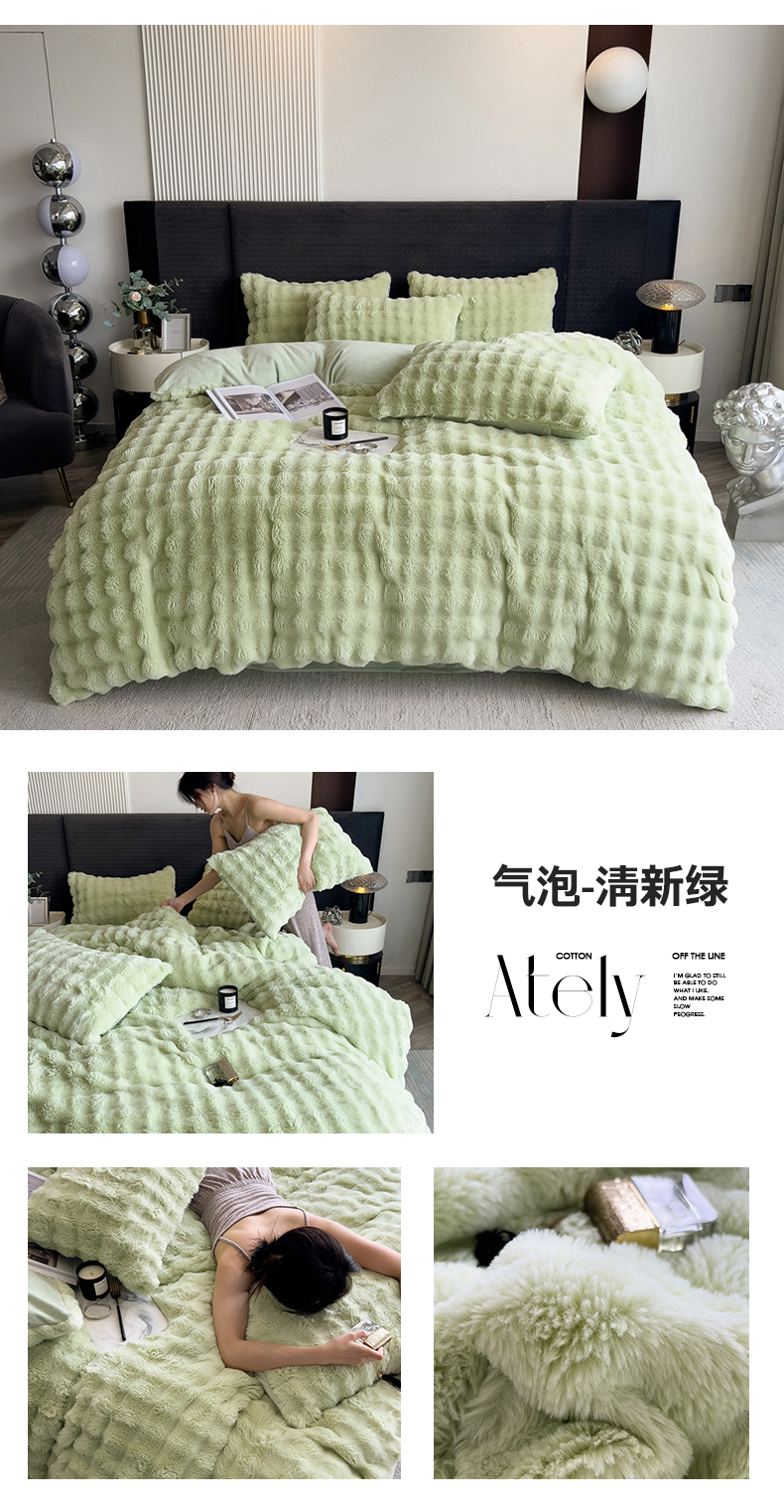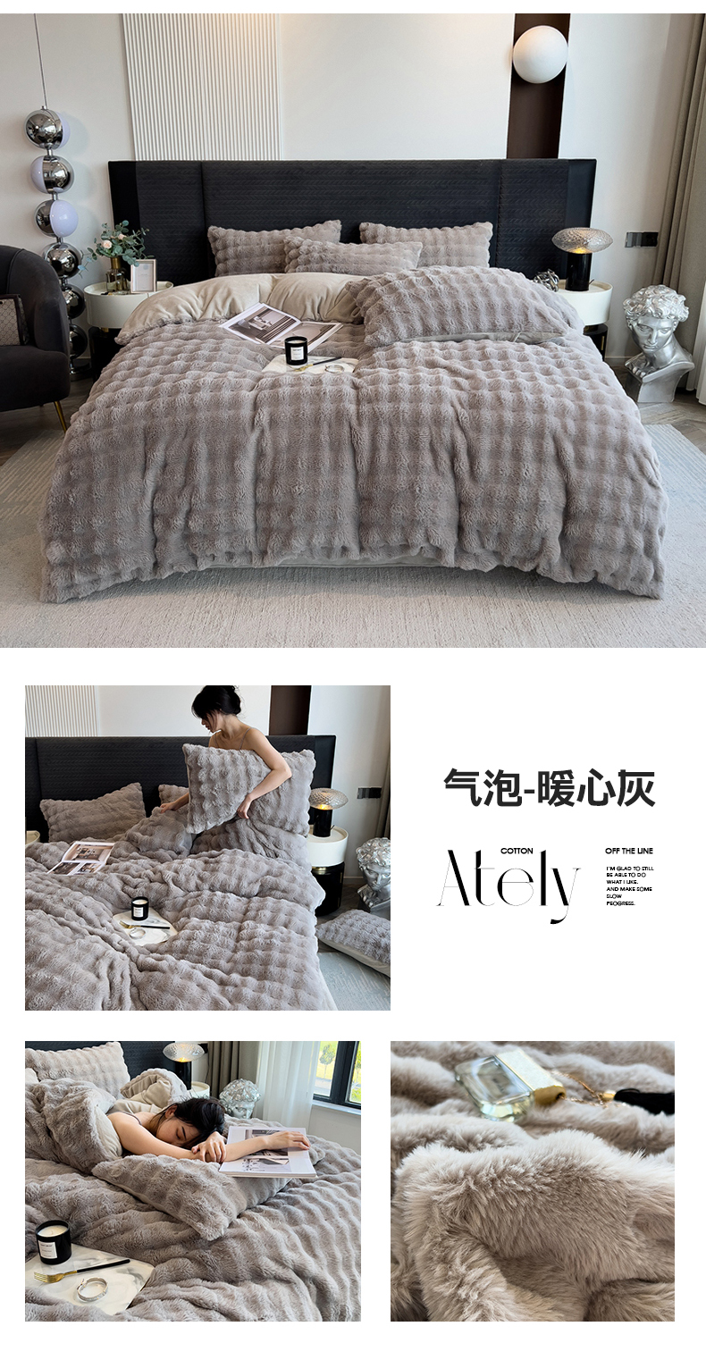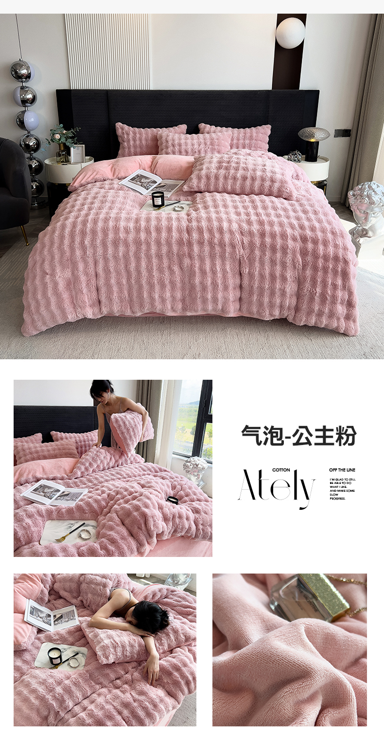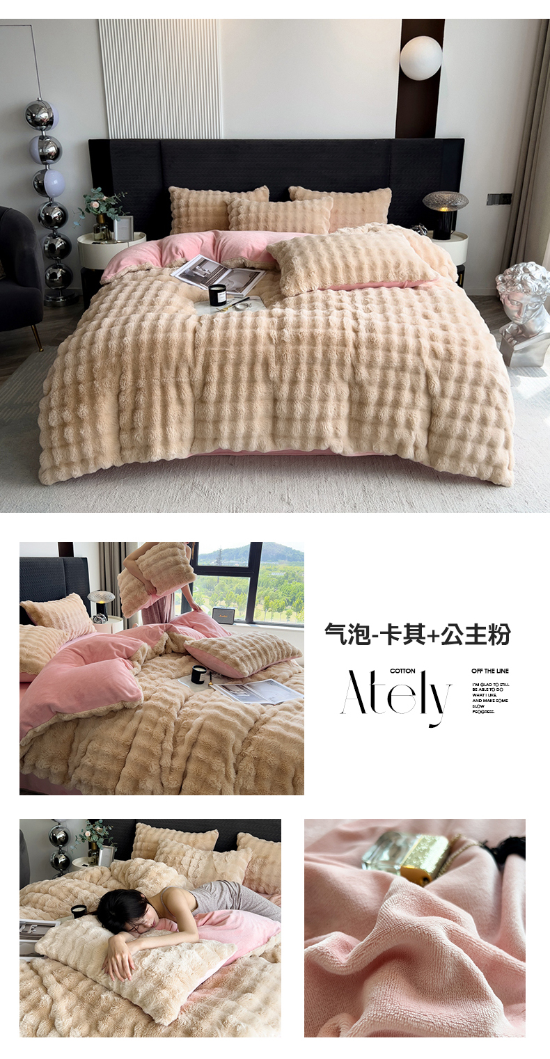 (总)全季家居 2023新款高克重400克立体剪花大泡泡兔毛绒四件套