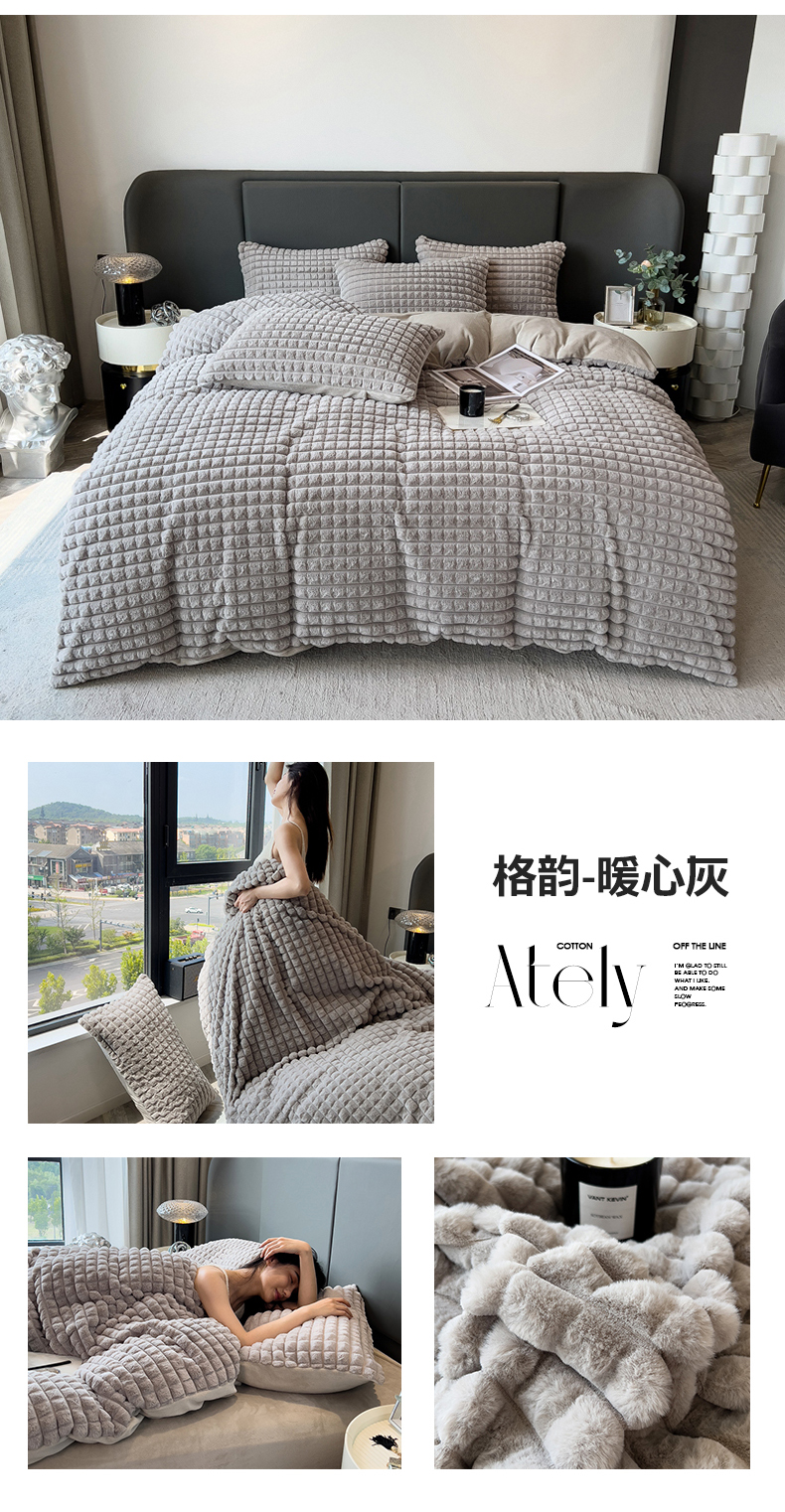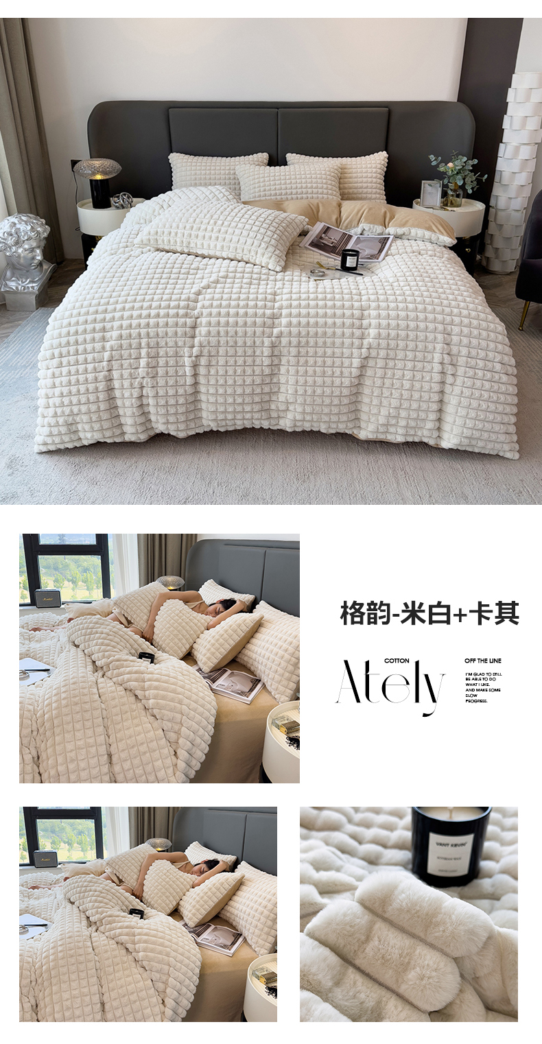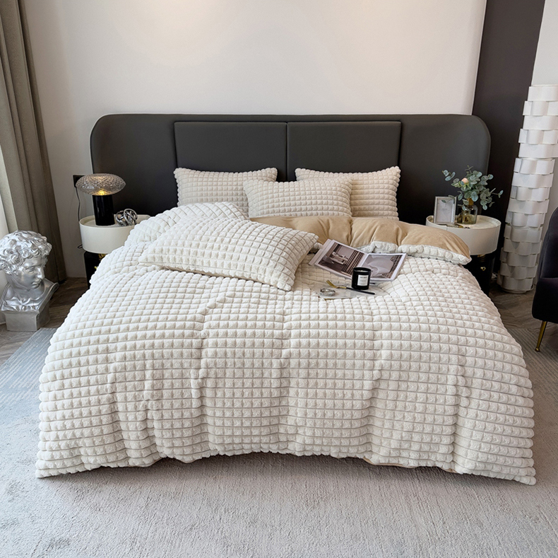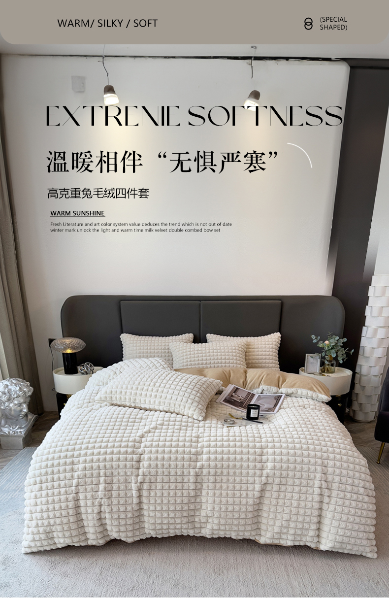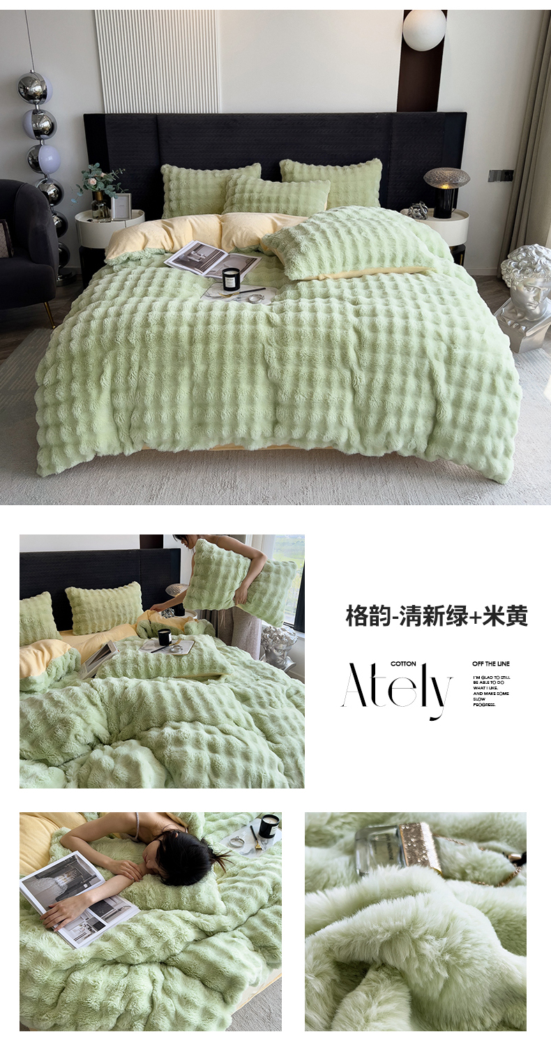 (总)全季家居 2023新款高克重400克立体剪花大泡泡兔毛绒四件套