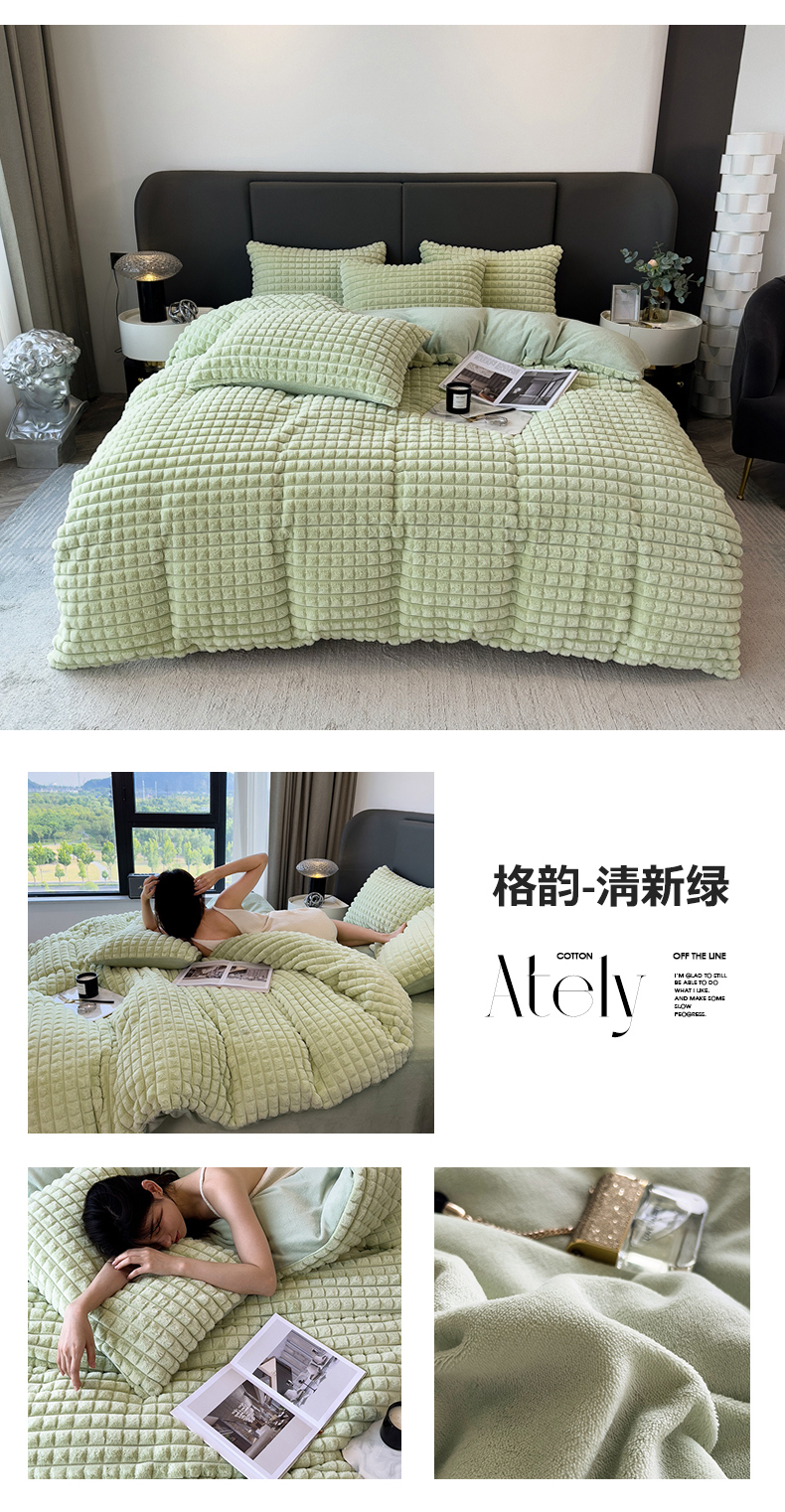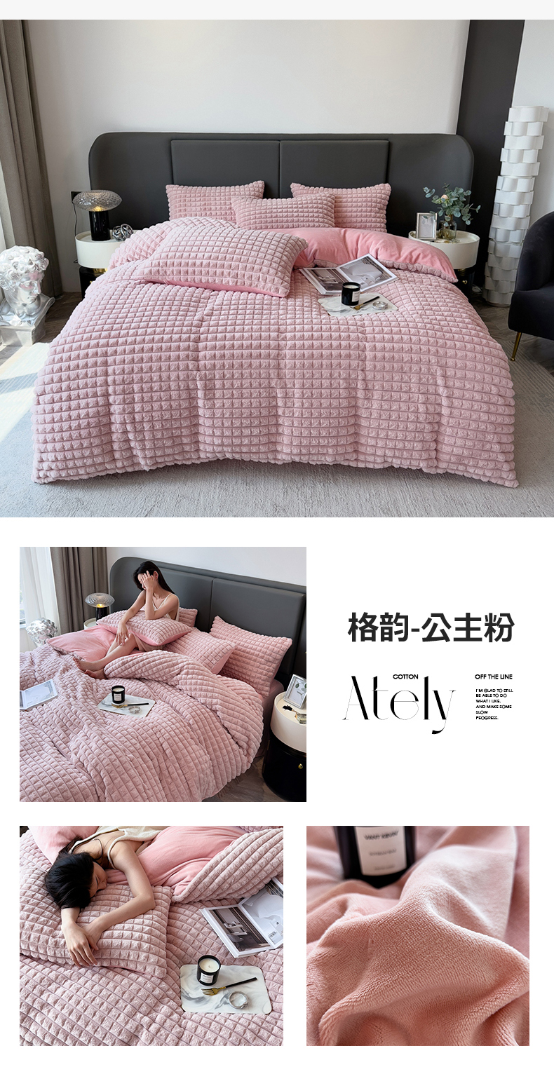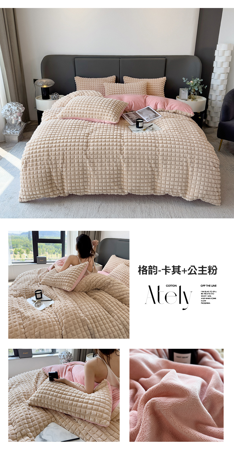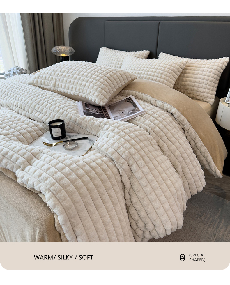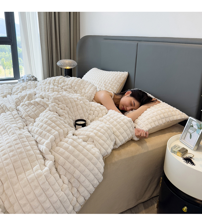 (总)全季家居 2023新款高克重400克立体剪花大泡泡兔毛绒四件套