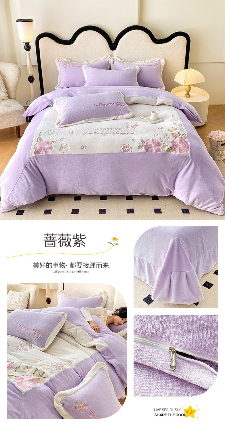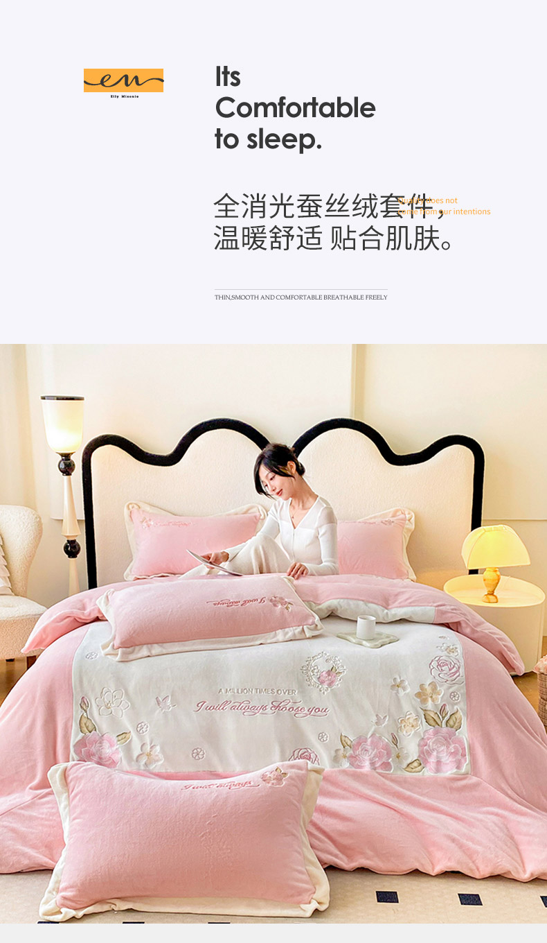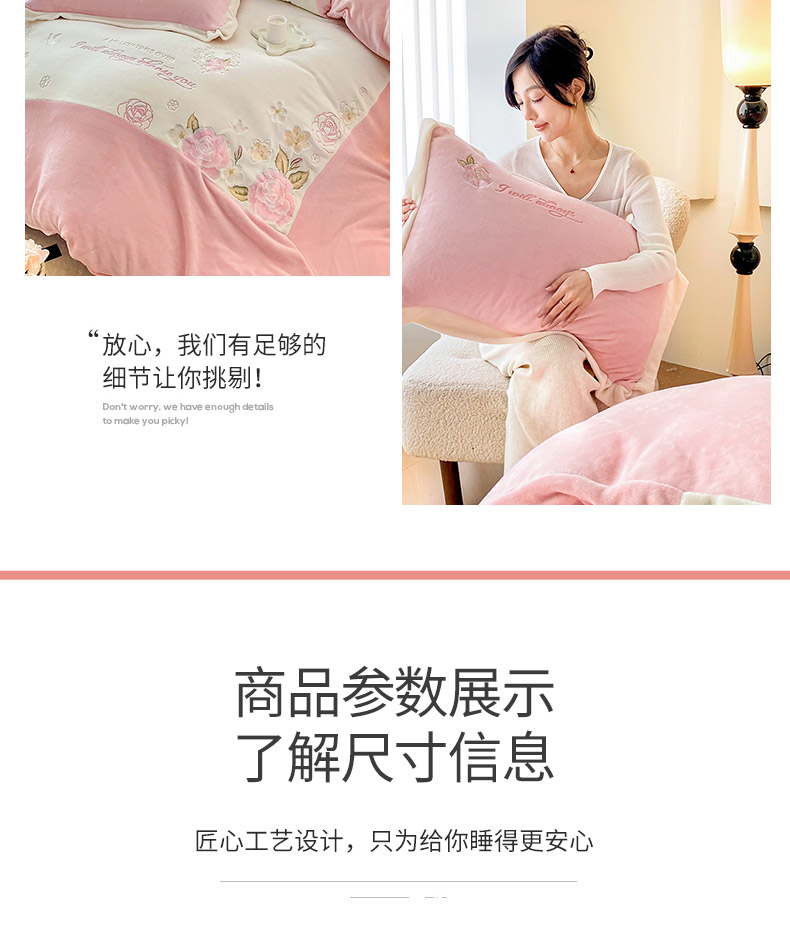 (总)可以家居 2025新款高克重全消光超细旦奶芙云绒四件套-玛利亚系列-莱卡芙,贵族粉,清雅蓝,伯爵绿,优雅紫,粉豆沙