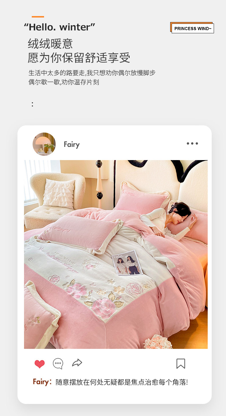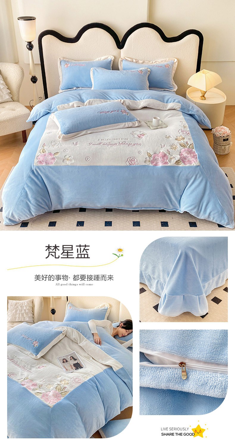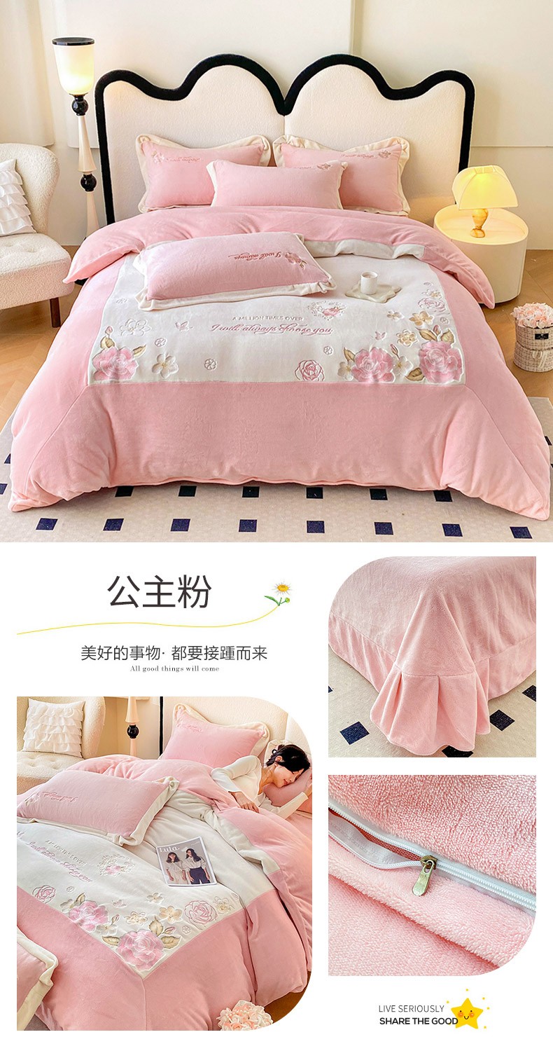 (总)可以家居 2025新款高克重全消光超细旦奶芙云绒四件套-玛利亚系列-莱卡芙,贵族粉,清雅蓝,伯爵绿,优雅紫,粉豆沙