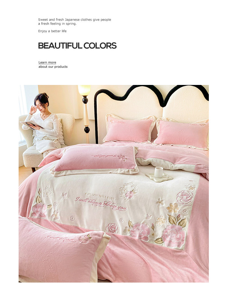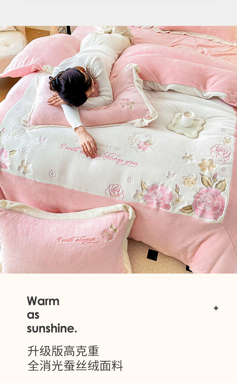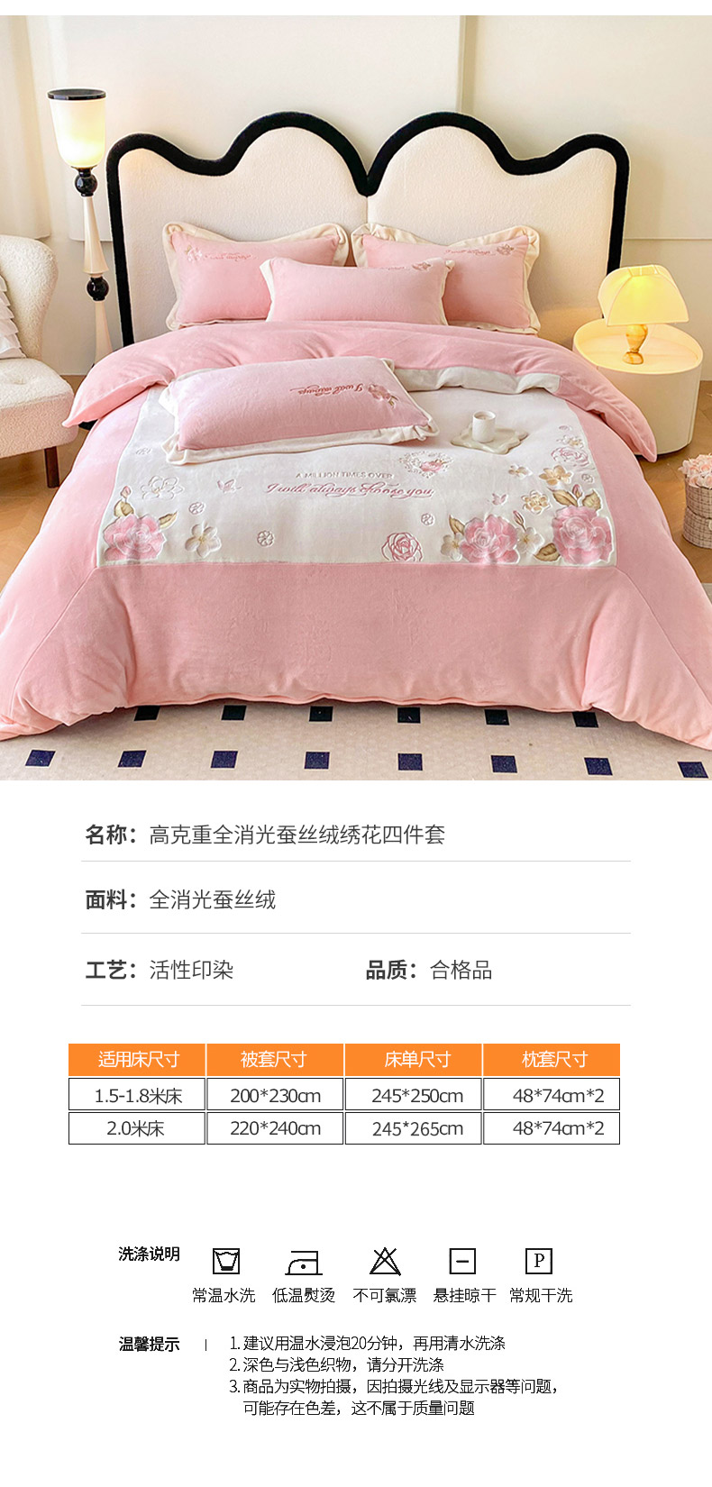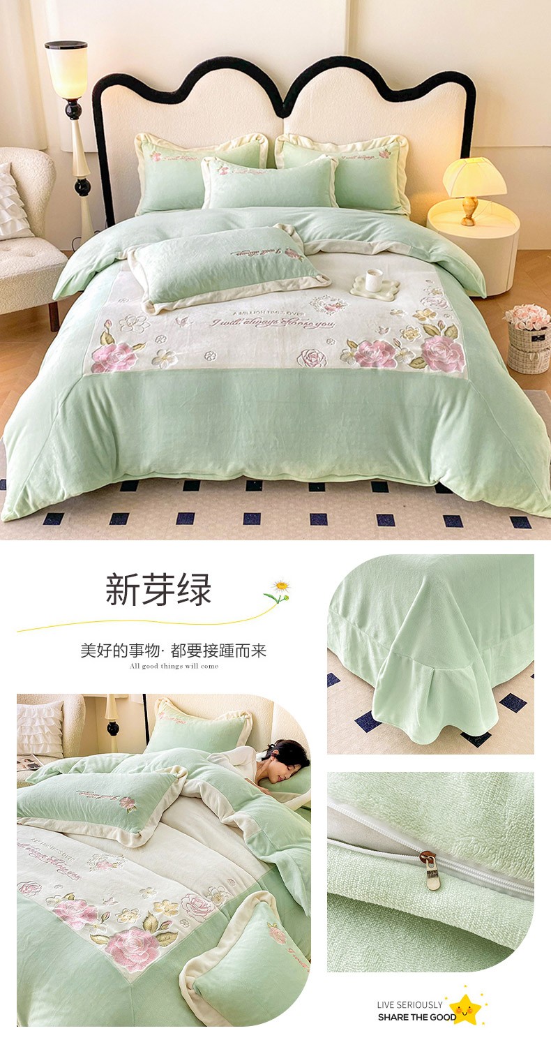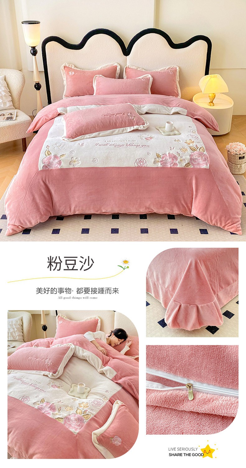 (总)可以家居 2025新款高克重全消光超细旦奶芙云绒四件套-玛利亚系列,粉豆沙,贵族粉,新芽绿