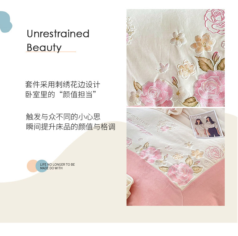 (总)可以家居 2023新款高克重全消光绣花四件套-伊芙琳