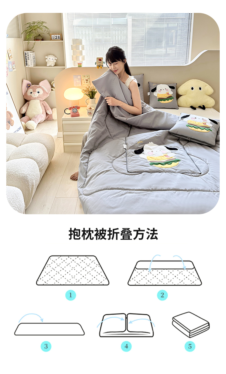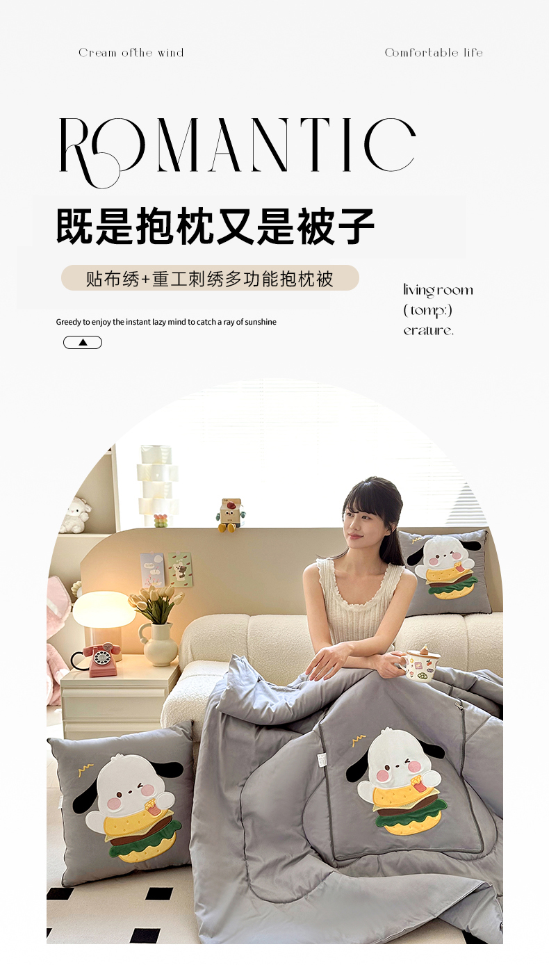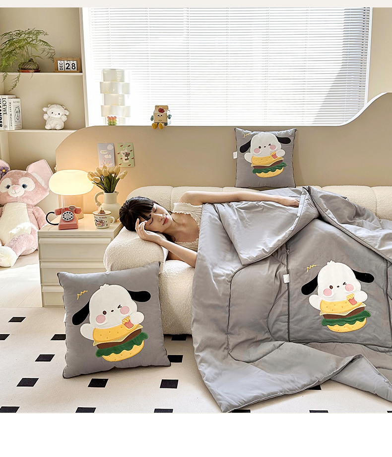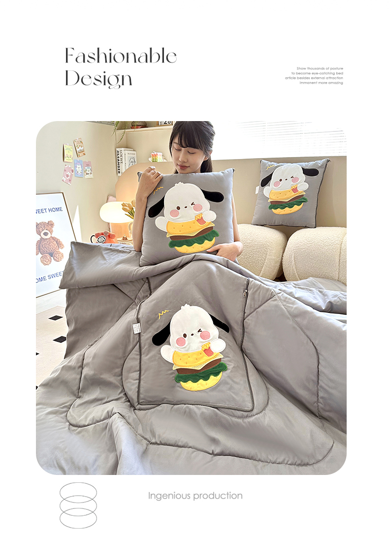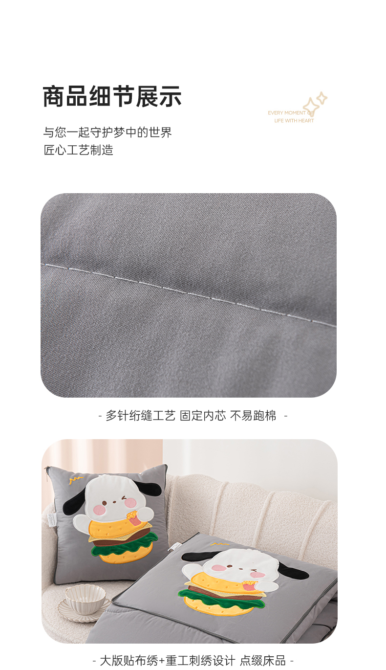 商品名称:铭宣家居 2024新款贴布绣+重工刺绣多功能抱枕被系列 汉堡狗狗 汉堡狗狗-灰色