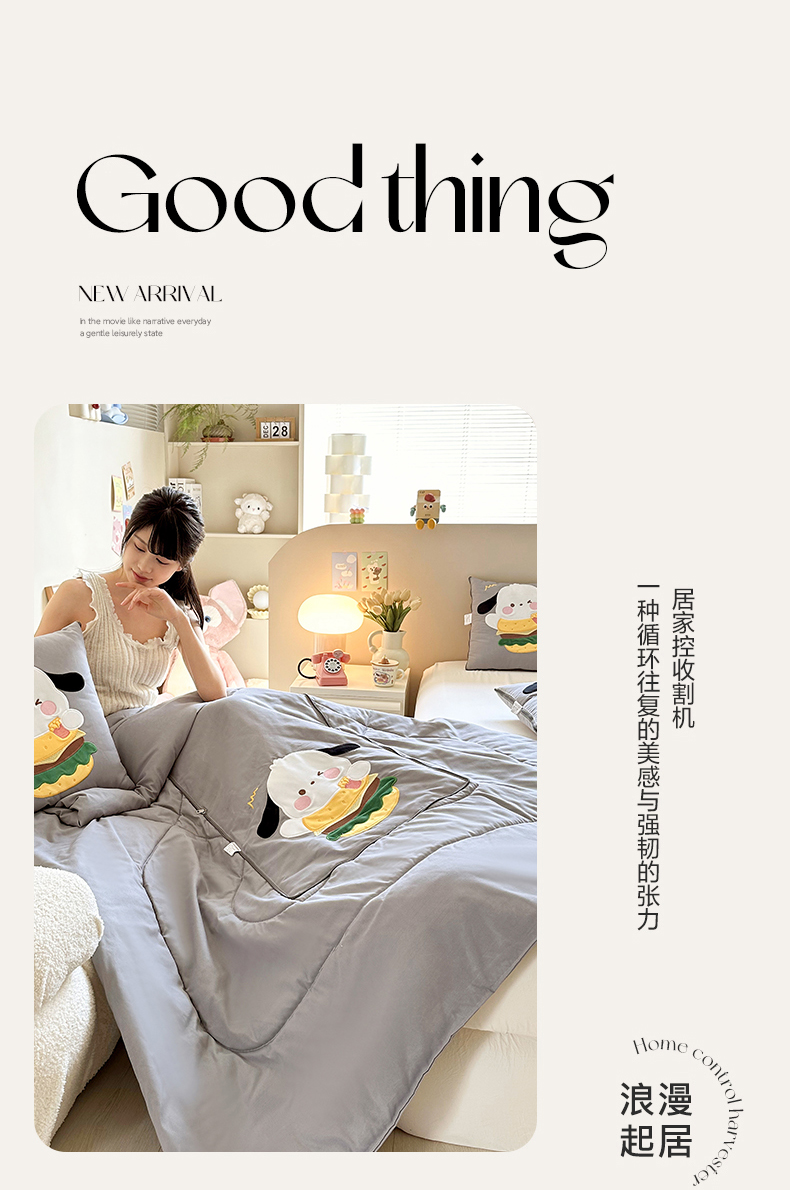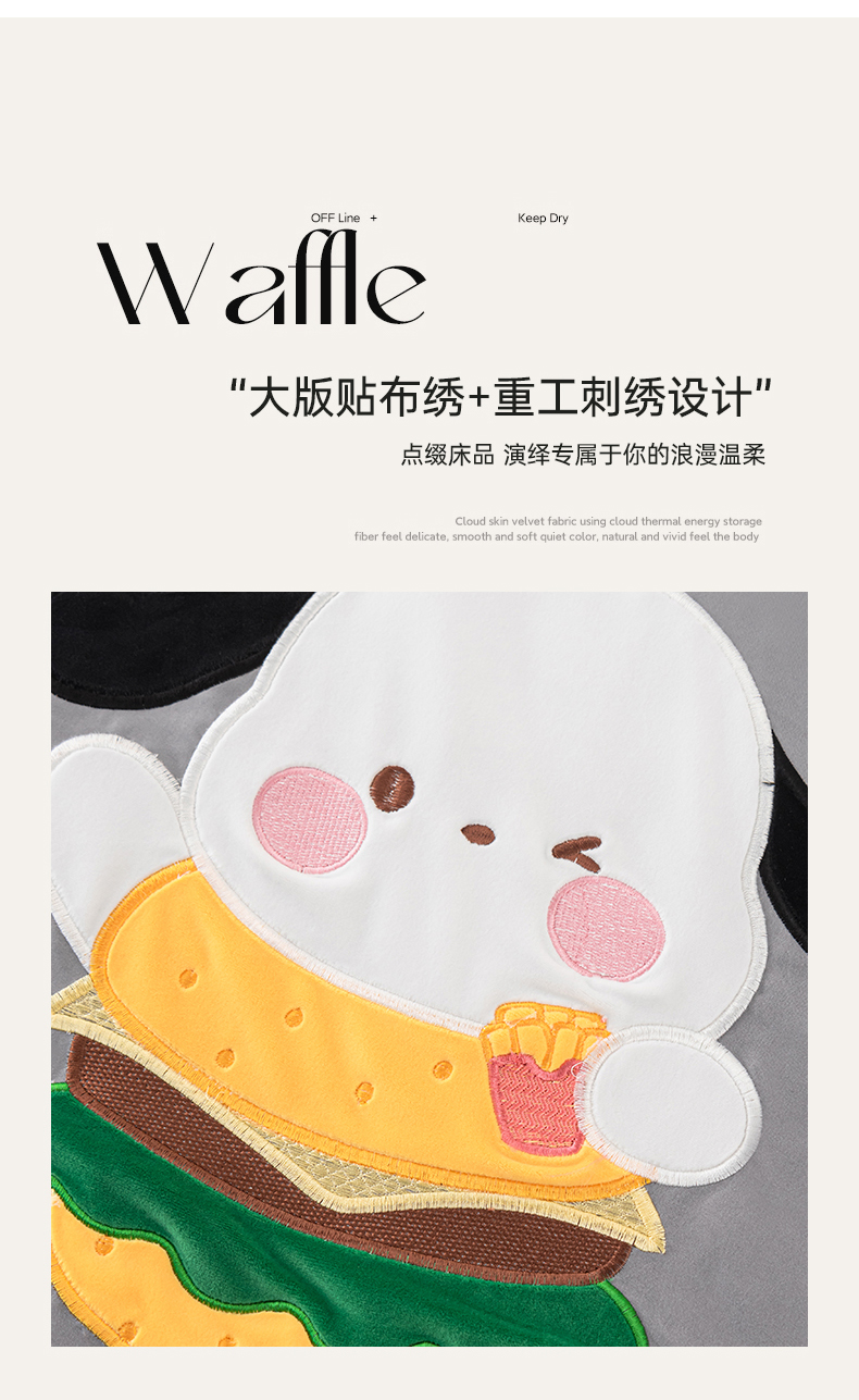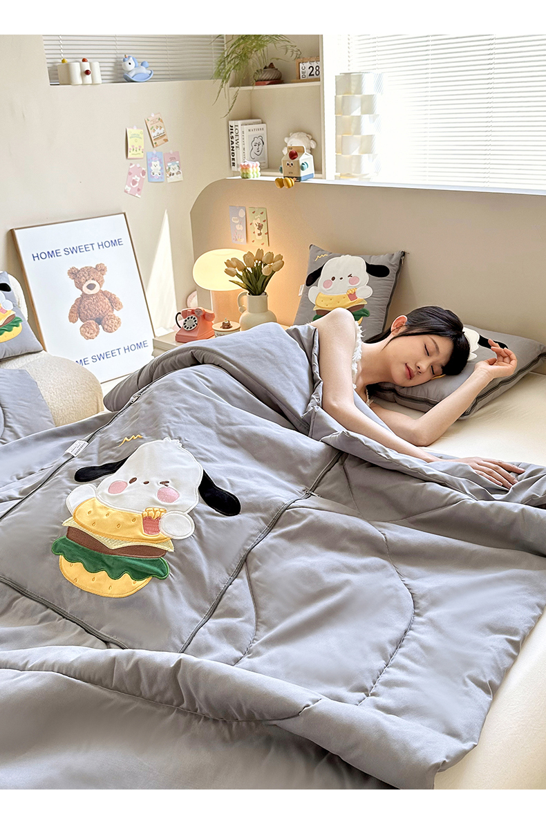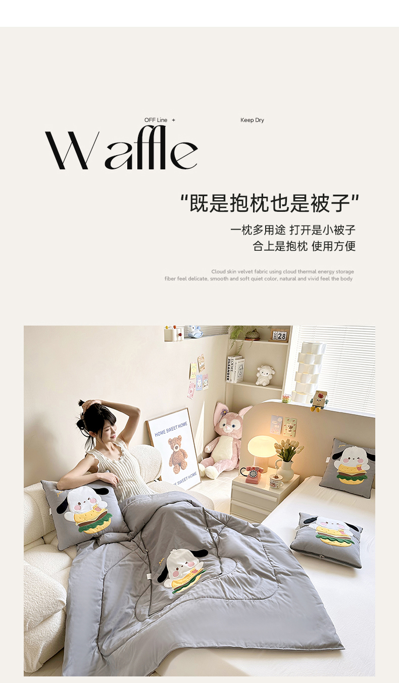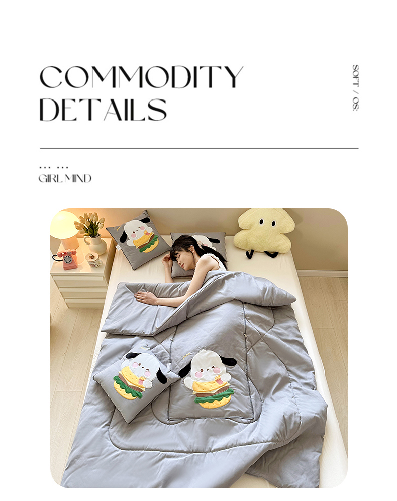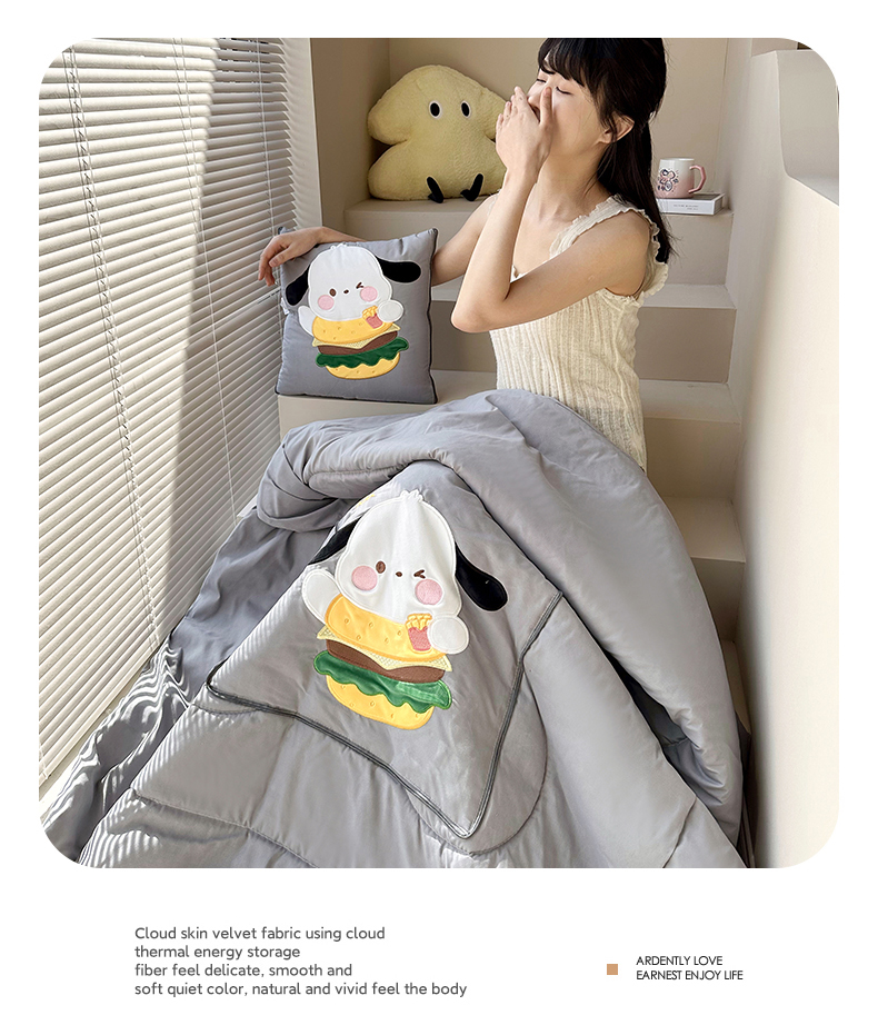 商品名称:铭宣家居 2024新款贴布绣+重工刺绣多功能抱枕被系列 汉堡狗狗 汉堡狗狗-灰色