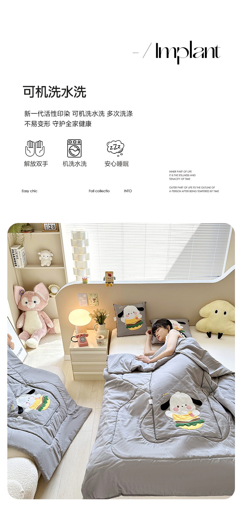 (总)铭宣家居 2024新款正版三丽鸥授权加厚AB版婴儿绒和北极绒贴布绣刺绣抱枕被,大耳狗,酷洛米,美乐蒂