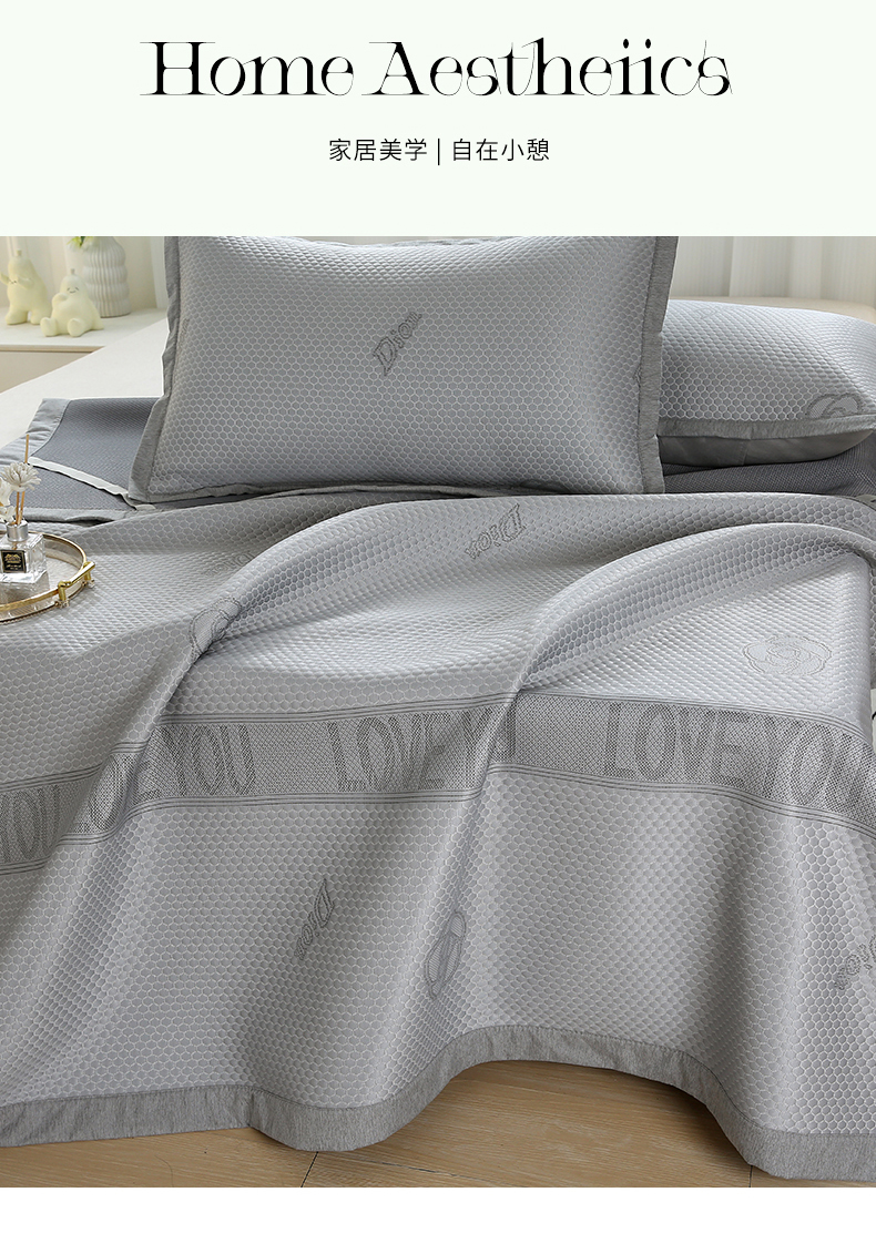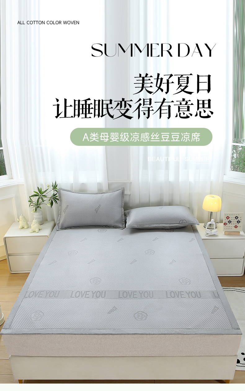 青雅席业 2025新款抗菌提花凉感丝豆豆席-玫瑰花语系列 玫瑰花语-灰