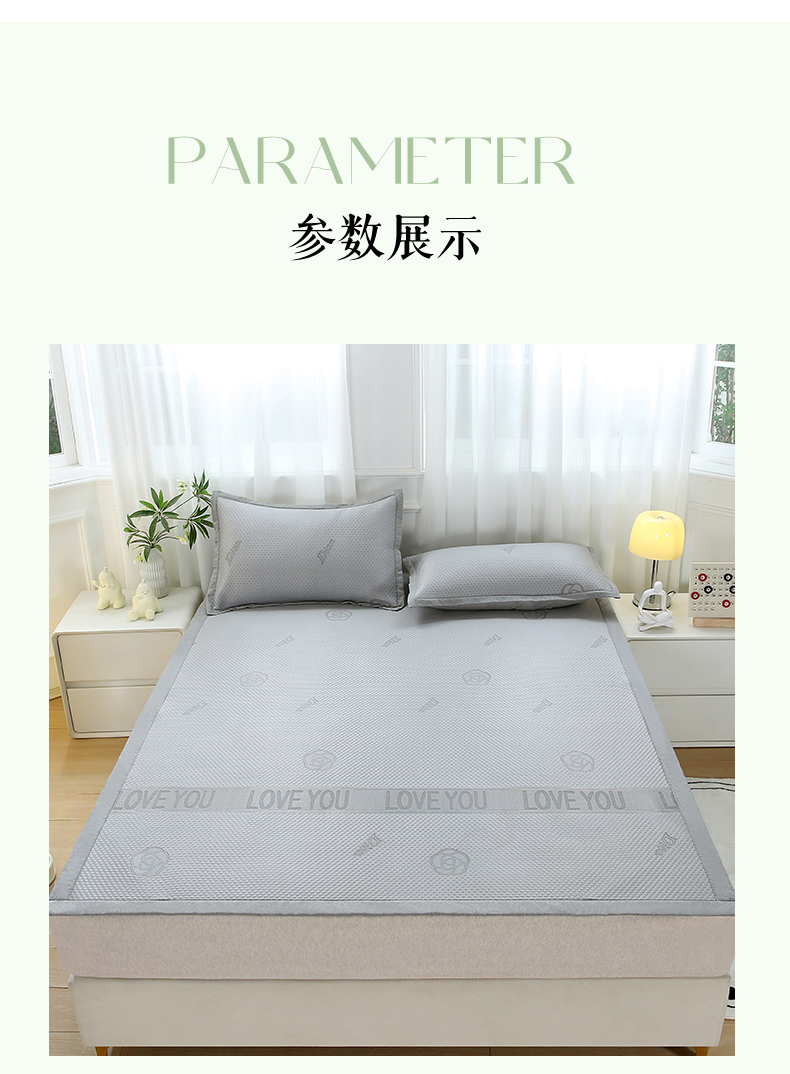 商品名称:青雅席业 2025新款抗菌提花凉感丝豆豆席-玫瑰花语系列 玫瑰花语-灰