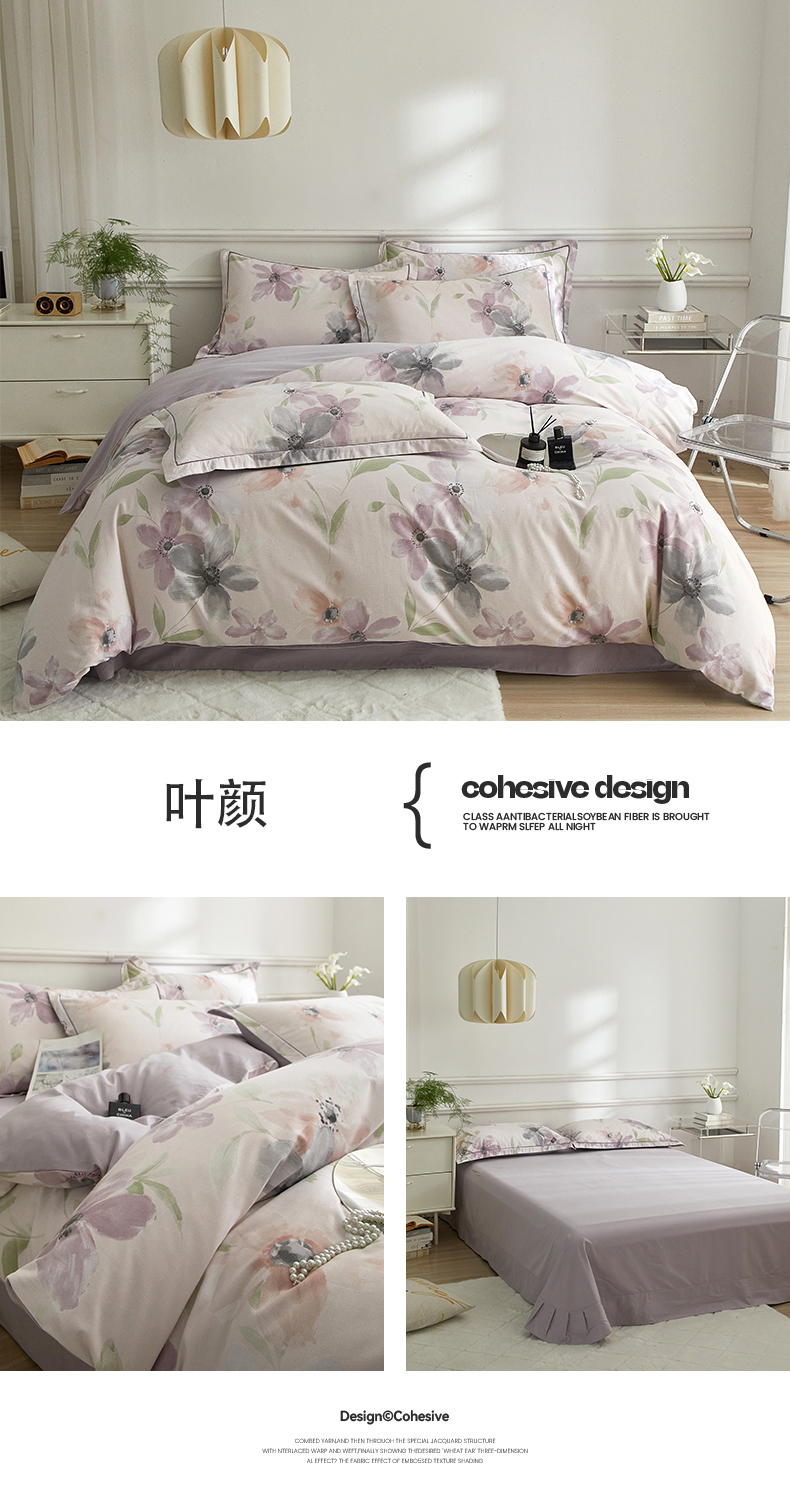 当前位置: 91家纺网 > 商品网购 > 床品套件 > 四件套 > 全棉普通四件套 > 沐白家居 2024新款全棉生态磨毛印花四件套系列 叶颜