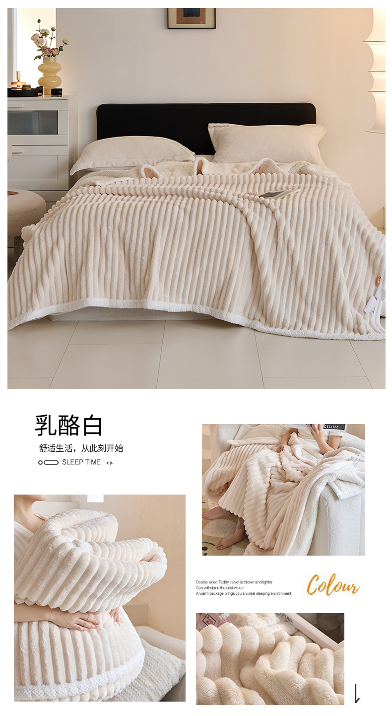 商品名称:金喜 2024新款立体抽条提花双面绒毯多用途毛毯办公室午睡毯家用毛毯被 驼色