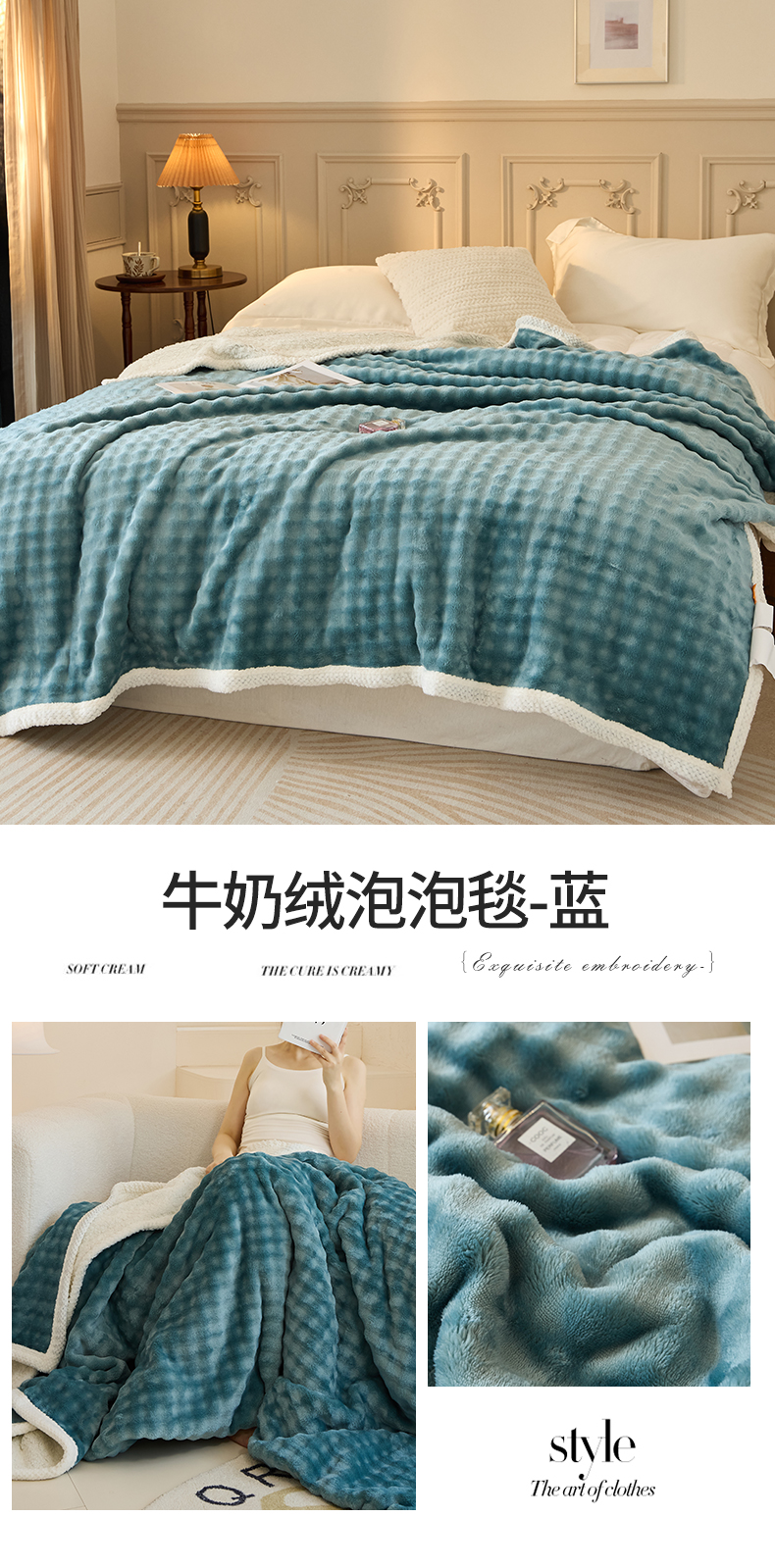 商品名称:(总)金喜 2024新款牛奶绒泡泡毯子家用毛毯午睡盖毯牛奶绒亲肤双人毛毯被