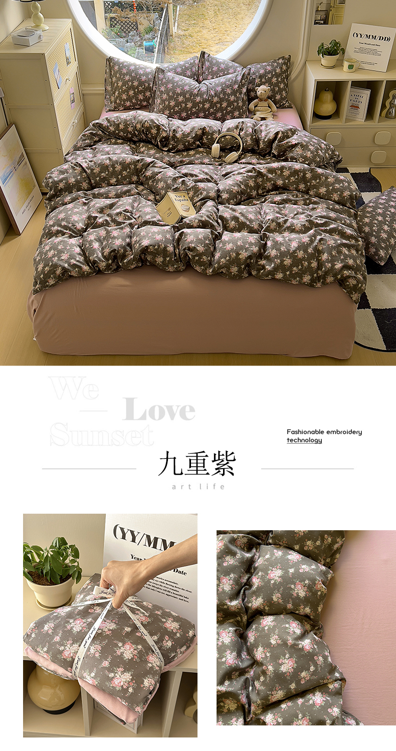 当前位置: 91家纺网 > 商品网购 > 床品套件 > 四件套 > 其它四件套 > 2025新款针织棉双层纱四件套 九重紫