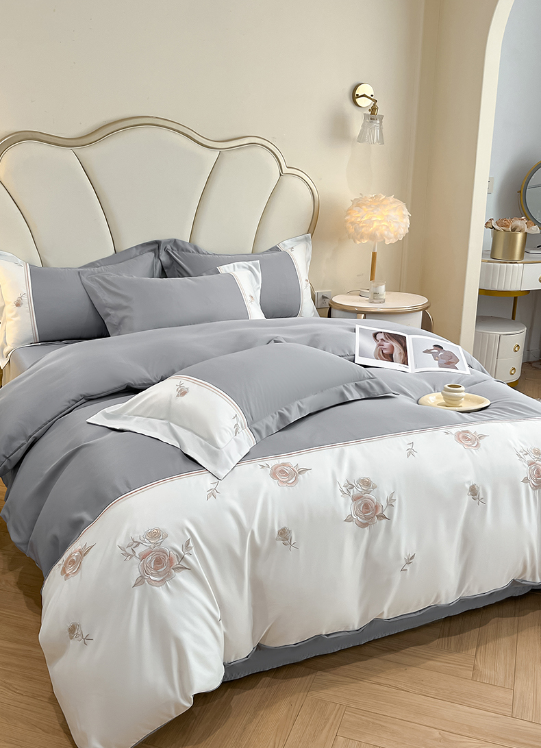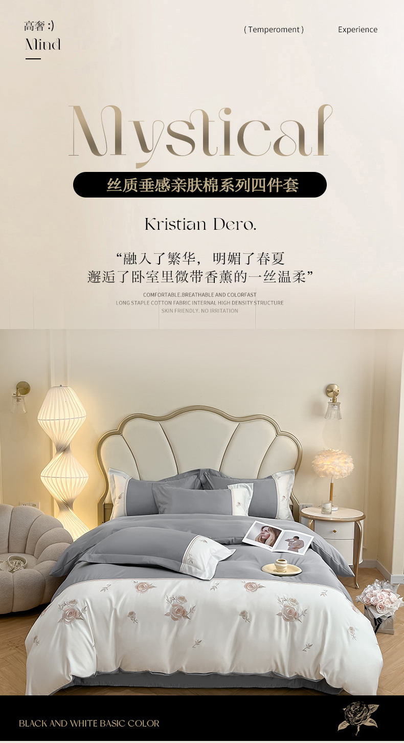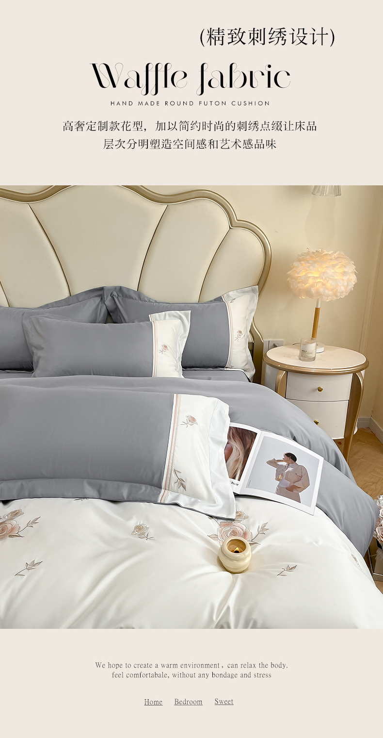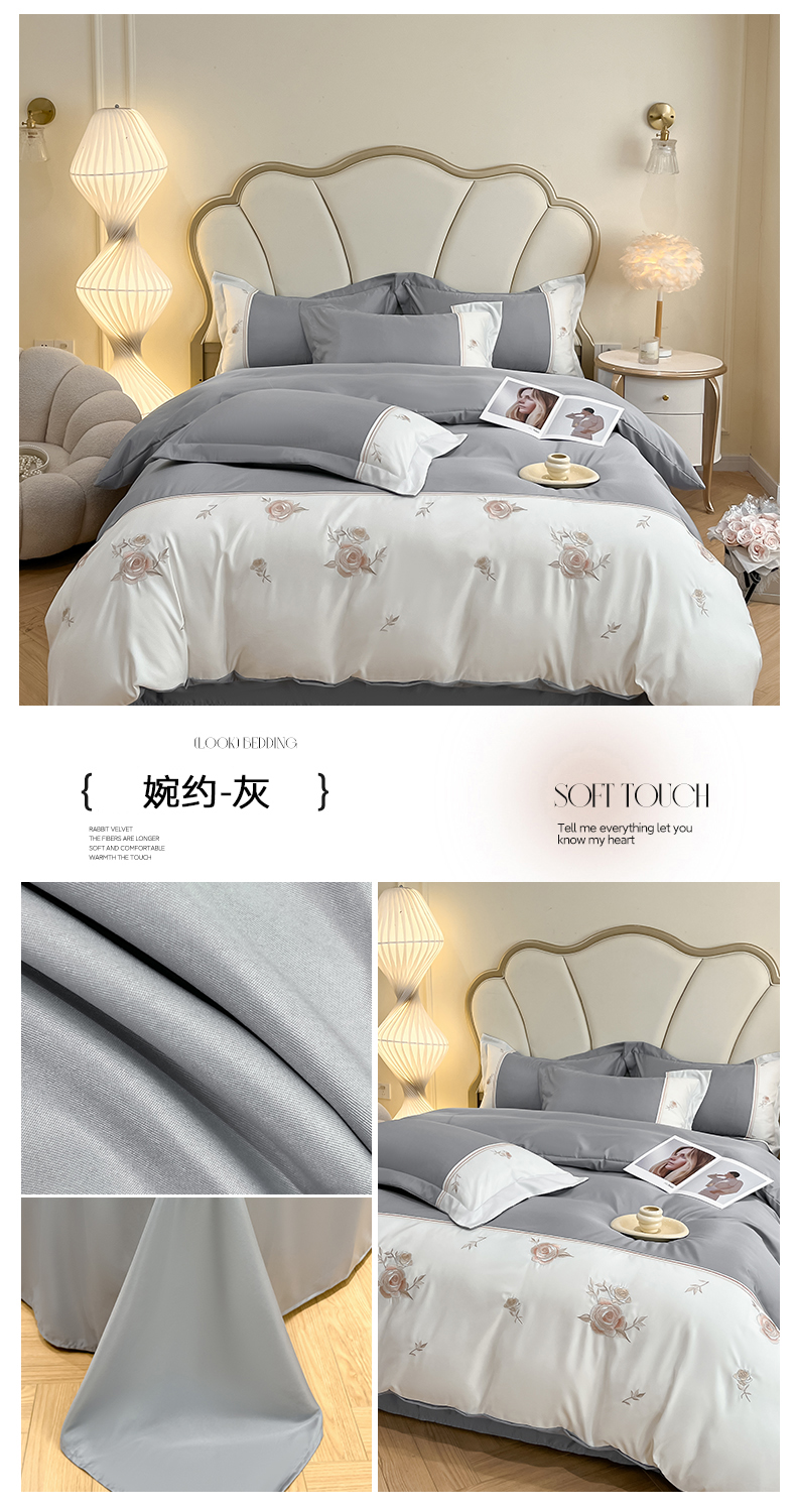 商品名称:金牛座家纺 2025新款细斜纹亲肤刺绣四件套-婉约系列 婉约-灰