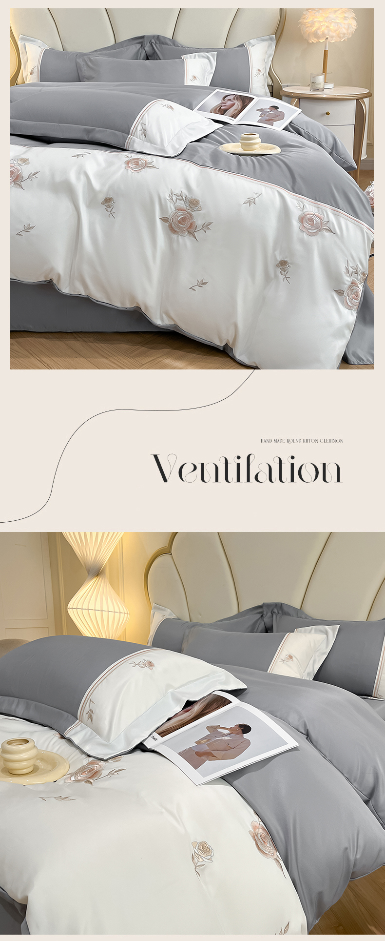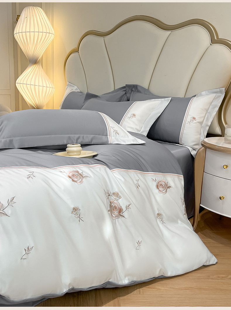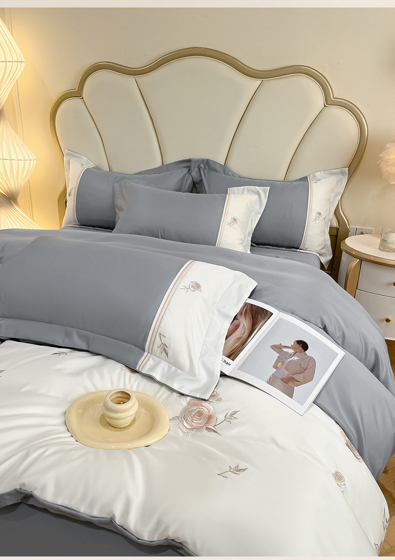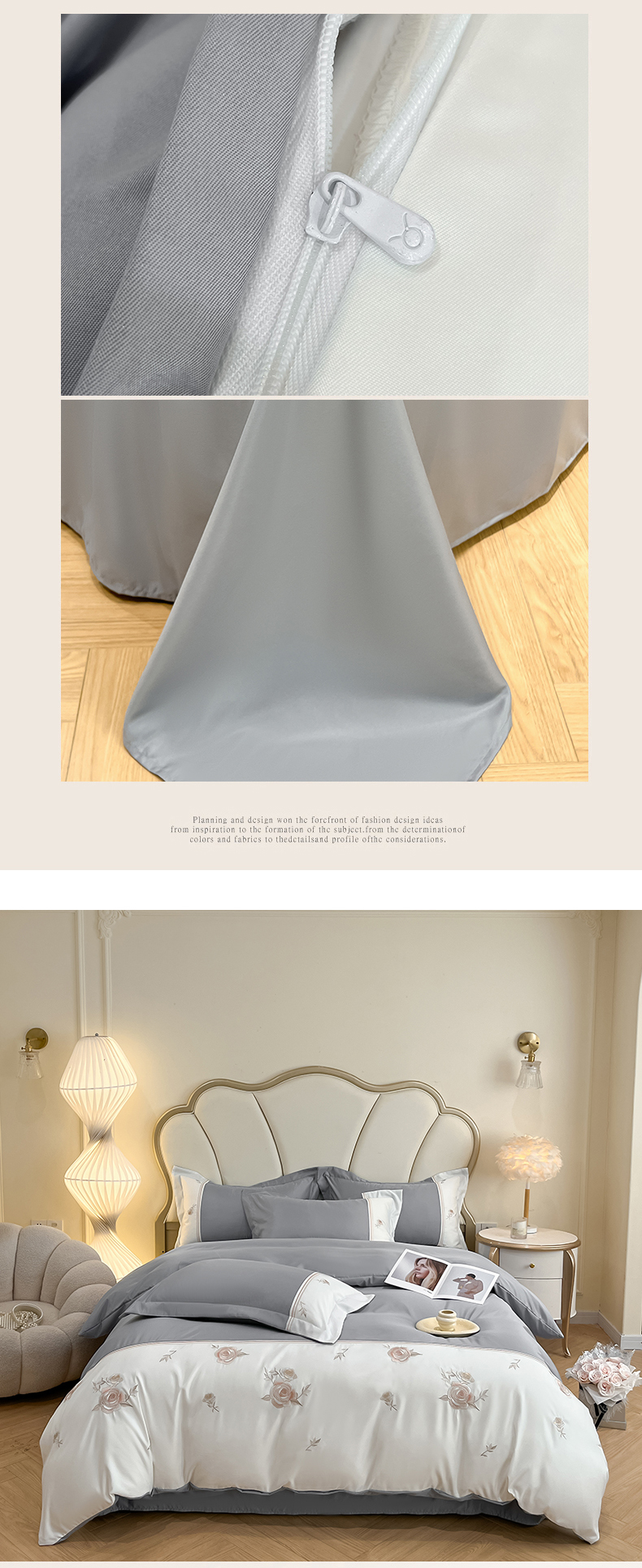 商品名称:金牛座家纺 2025新款细斜纹亲肤刺绣四件套-婉约系列 婉约-灰