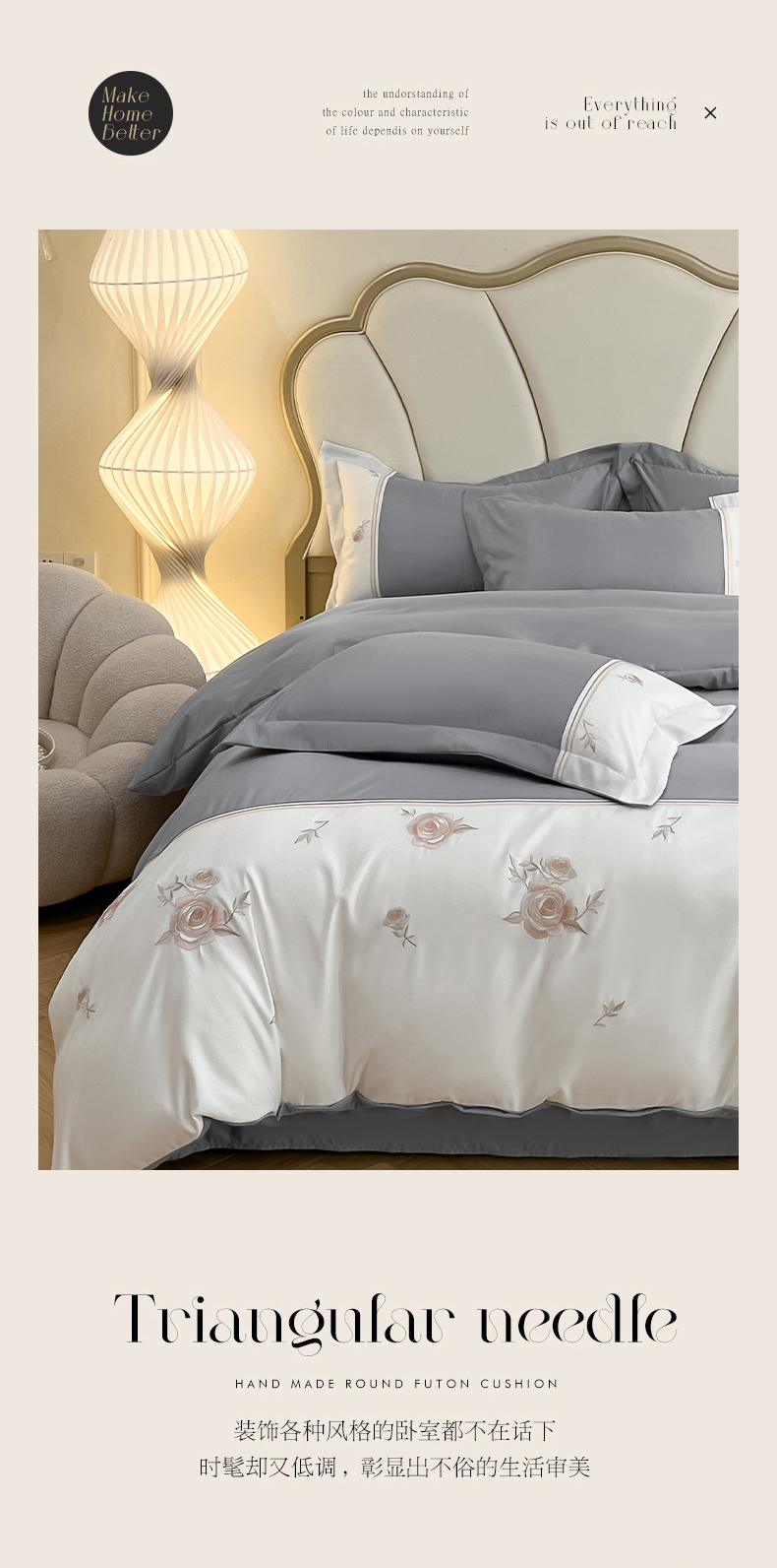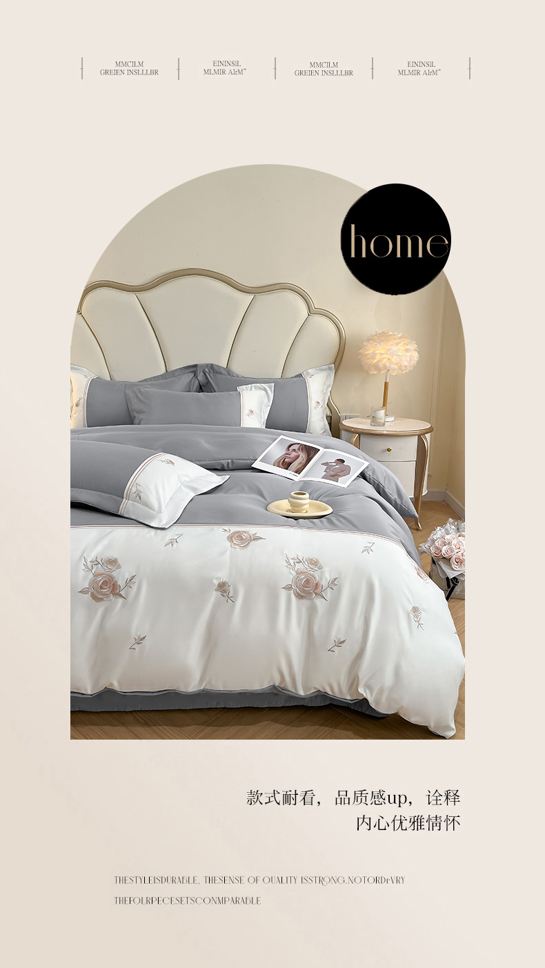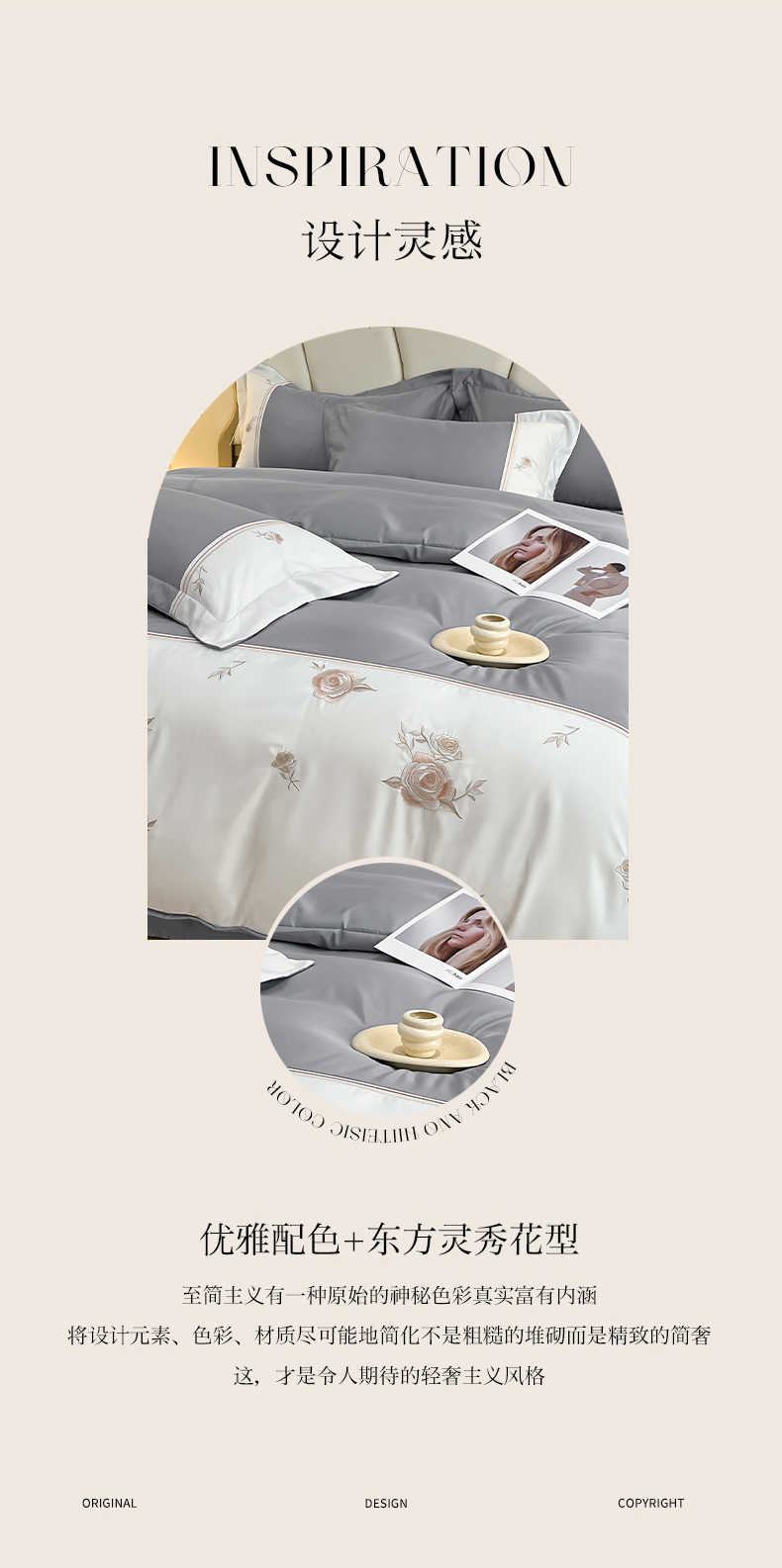 金牛座家纺 2025新款细斜纹亲肤刺绣四件套-婉约系列 婉约-灰