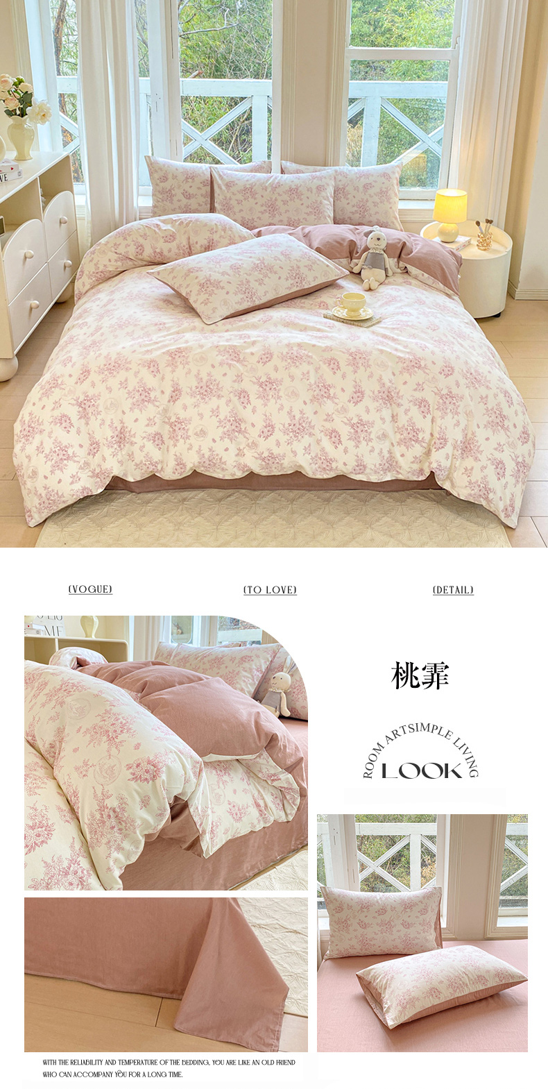 商品名称:念家居 2025新款直播爆款三件套印花小清新13070全棉四件套 桃霏