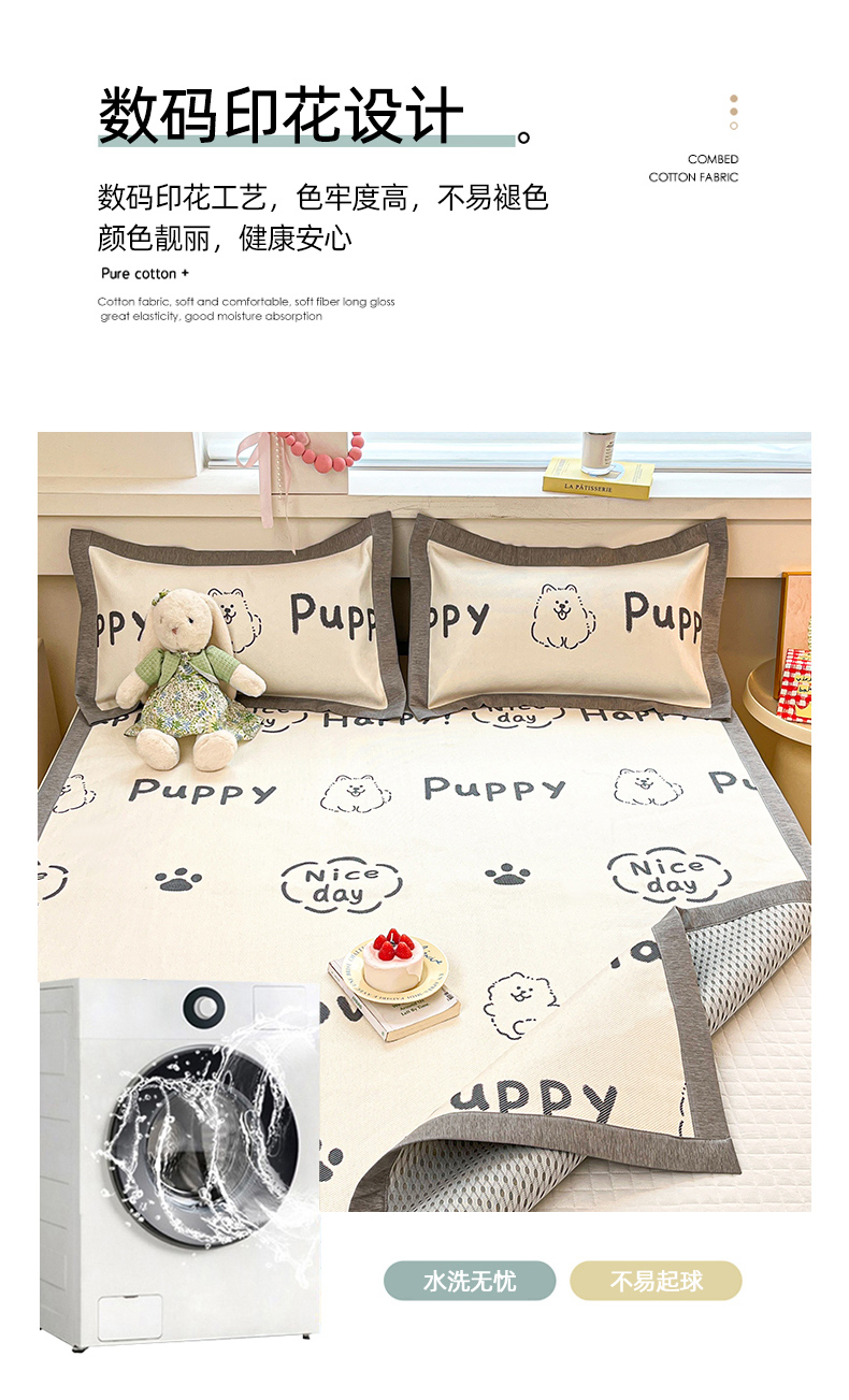 商品名称:迪乐妮 2025新款印花真冰藤冰凉席 快乐小狗
