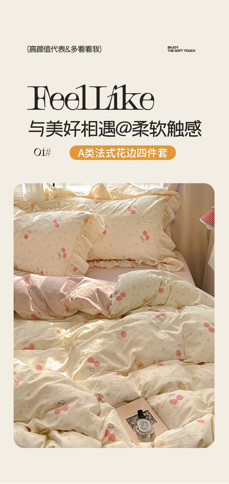 当前位置: 91家纺网 > 商品网购 > 床品套件 > 四件套 > 其它四件套 > 冕悠家纺 2025新款A类法式花边四件套超柔裸睡级床单被套三件套-风格一+微信提供买家秀 初樱