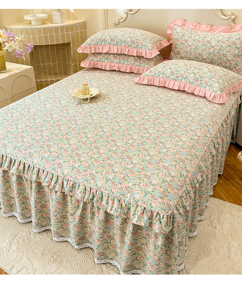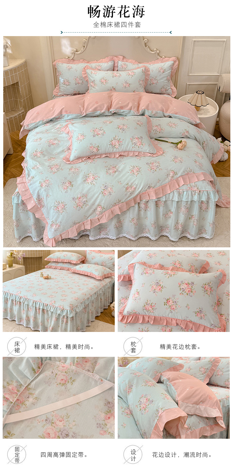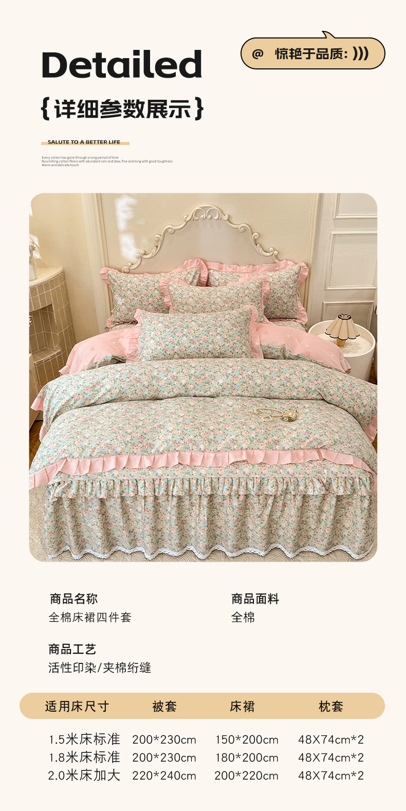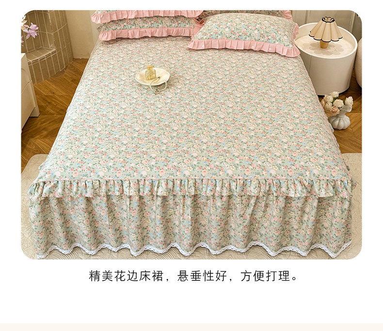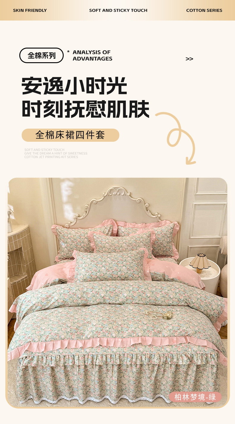 当前位置: 91家纺网 > 商品网购 > 床品套件 > 四件套 > 全棉普通四件套 > 美达家纺 2025新款韩版全棉床裙款床单款四件套 柏林梦境-绿