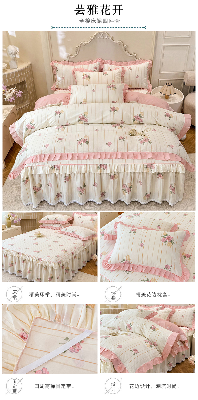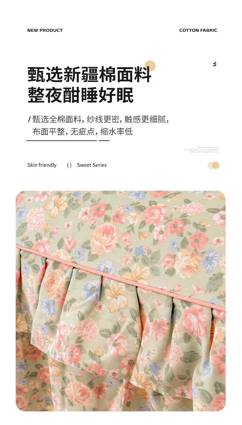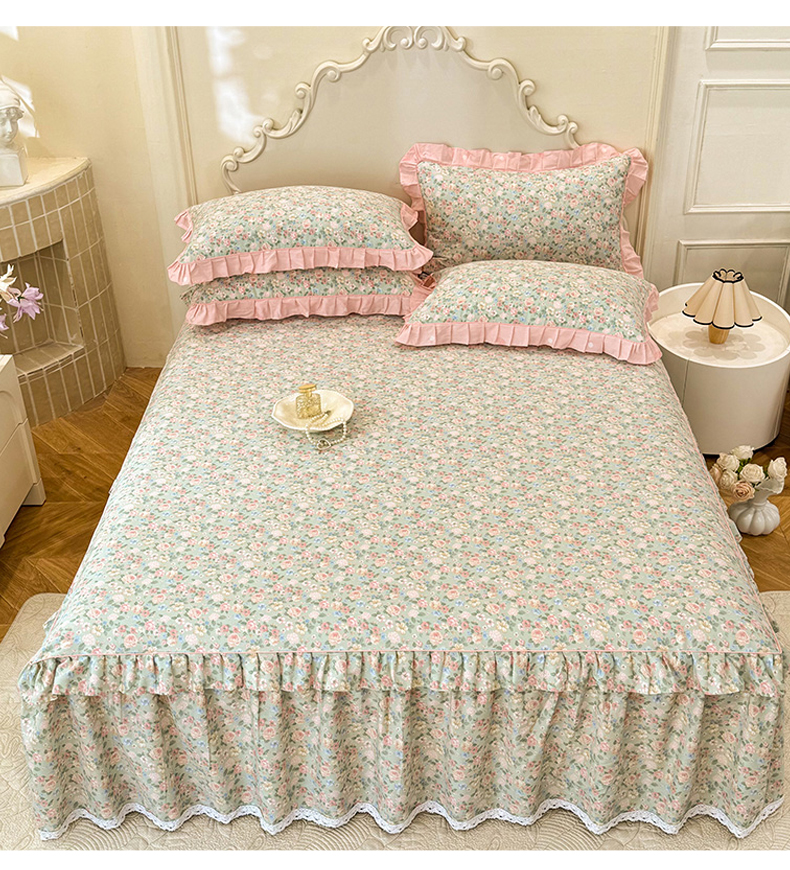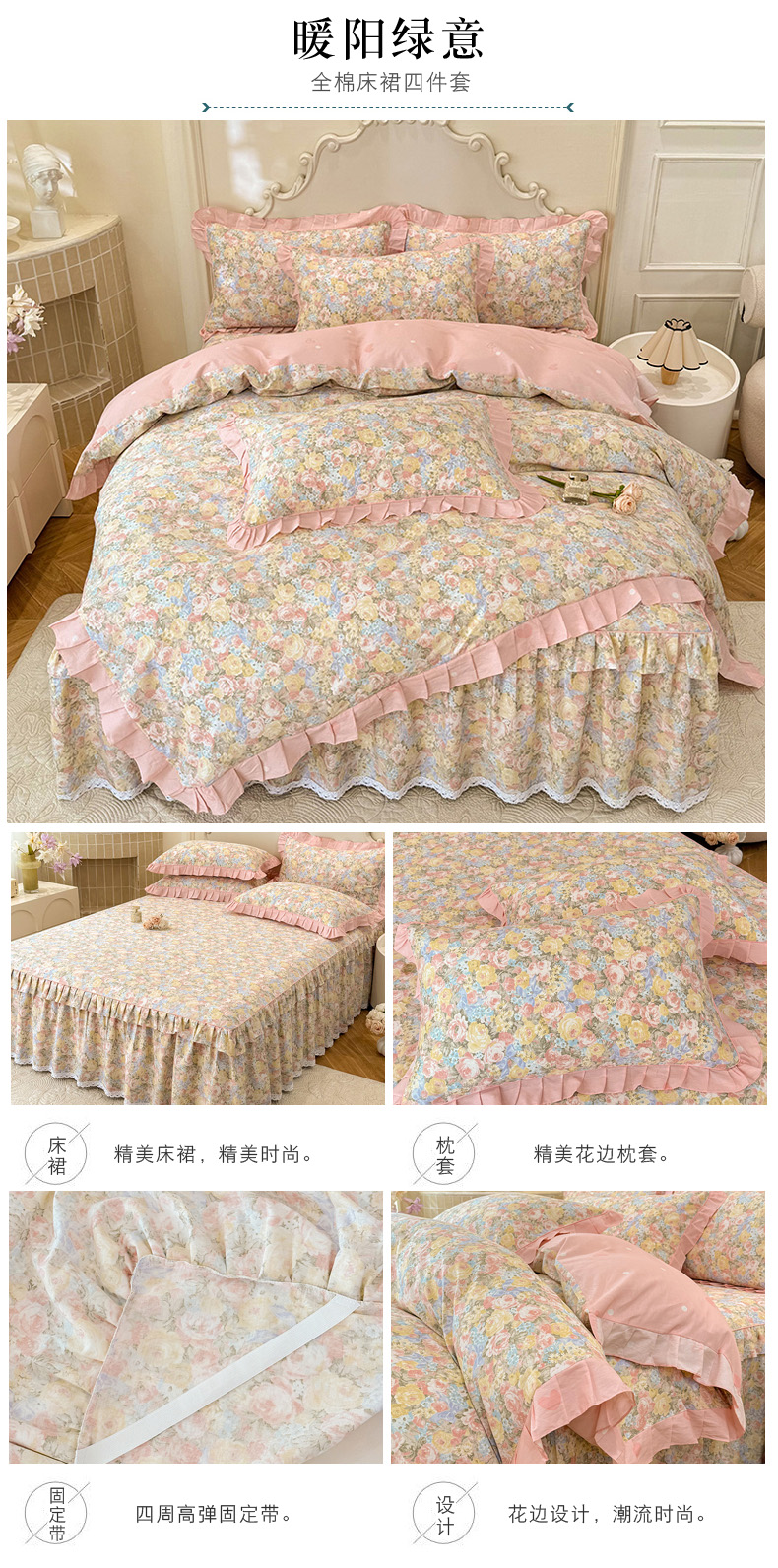 当前位置: 91家纺网 > 商品网购 > 床品套件 > 四件套 > 全棉普通四件套 > 美达家纺 2025新款韩版全棉床裙款床单款四件套 柏林梦境-绿