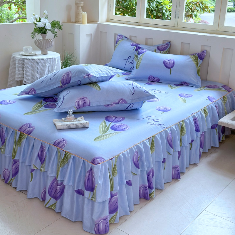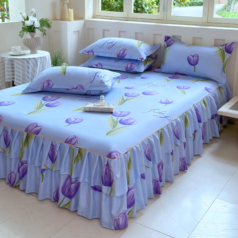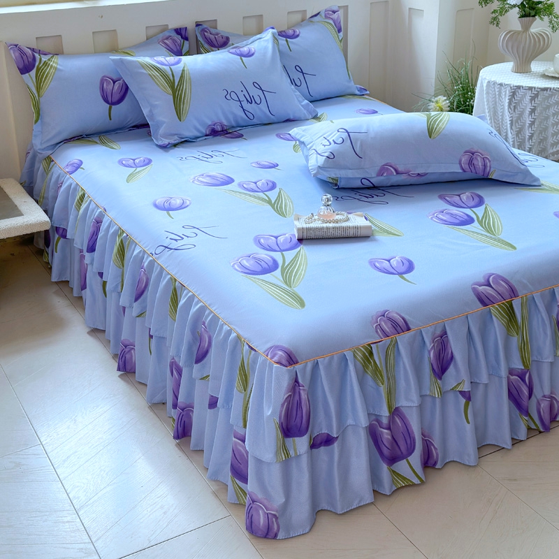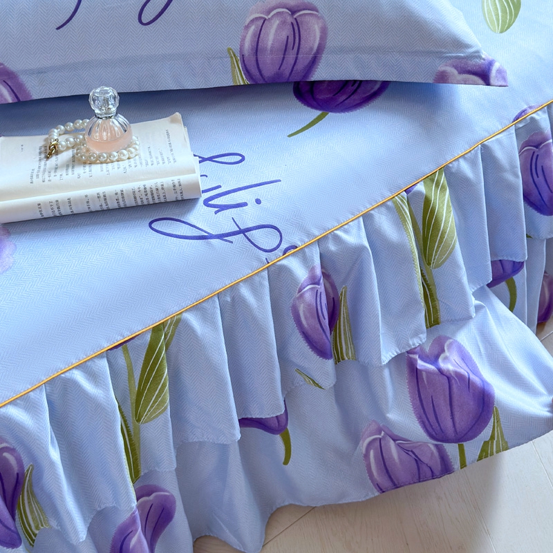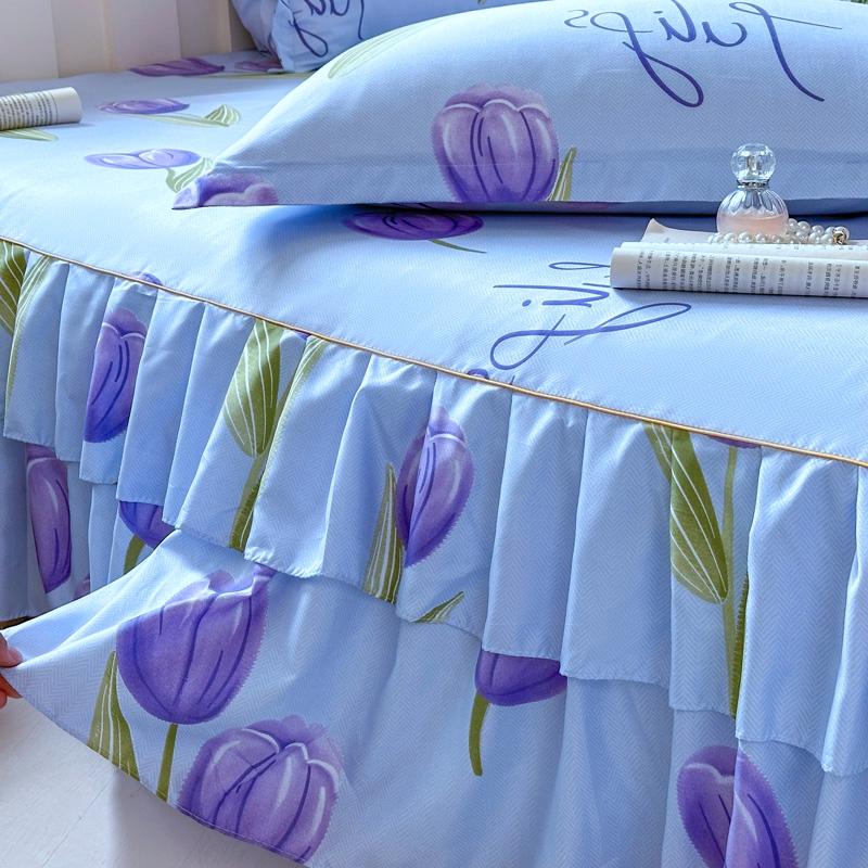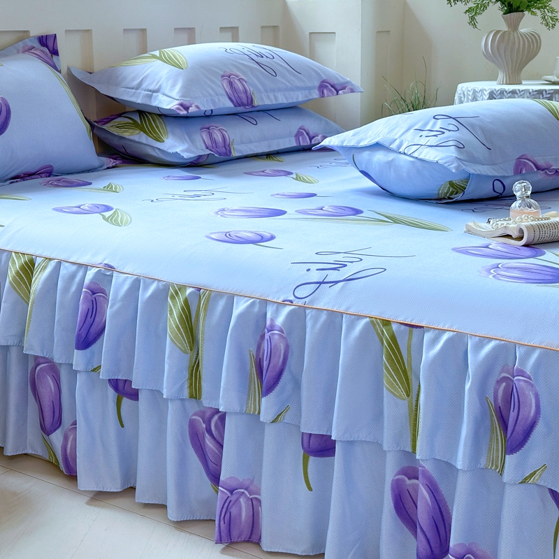 雨田2025新款夹棉印花床裙 唯爱花季兰