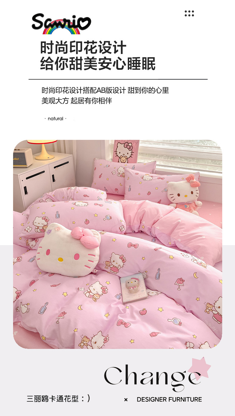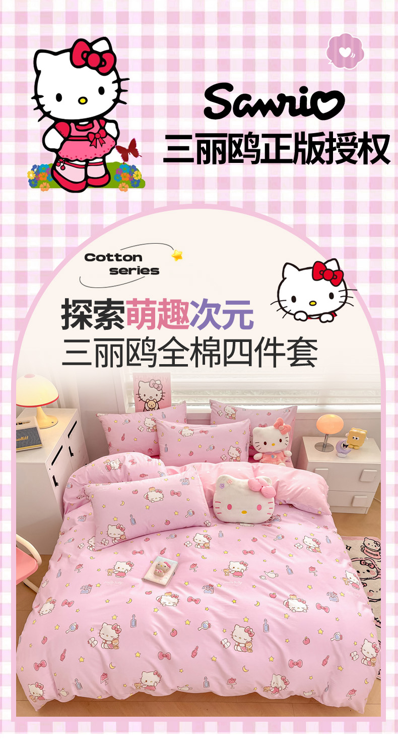 当前位置: 91家纺网 > 商品网购 > 床品套件 > 四件套 > 全棉普通四件套 > 暮思家居 2025新款正版授权三丽鸥全棉纯棉四件套系列-第三批 美美凯蒂