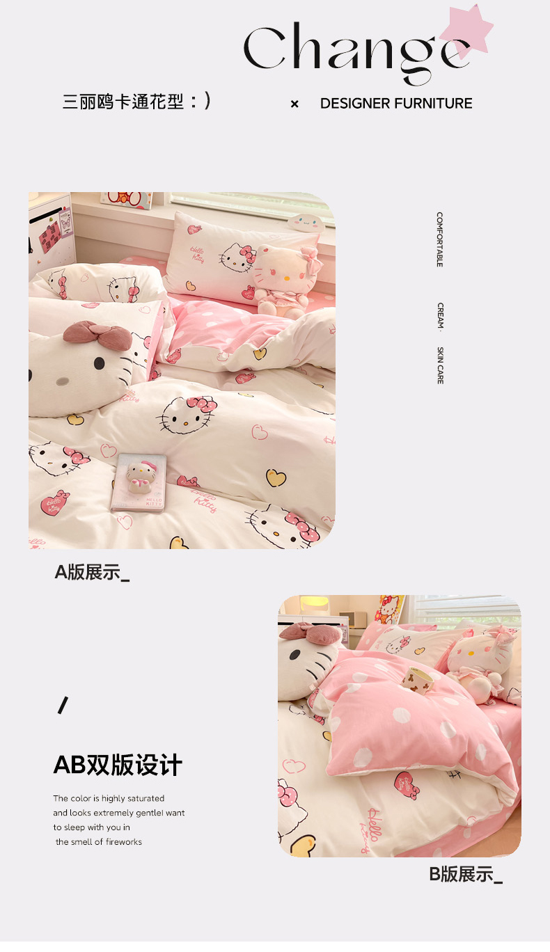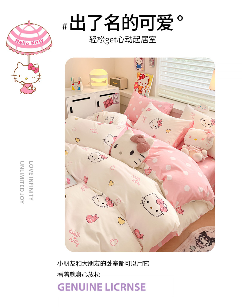 当前位置: 91家纺网 > 商品网购 > 床品套件 > 四件套 > 全棉普通四件套 > 暮思家居 2025新款正版授权三丽鸥全棉纯棉四件套系列-第三批 少女凯蒂
