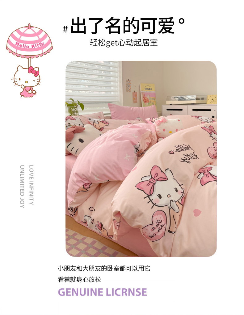 当前位置: 91家纺网 > 商品网购 > 床品套件 > 四件套 > 全棉普通四件套 > 暮思家居 2025新款正版授权三丽鸥全棉纯棉四件套系列-第三批 音乐KT