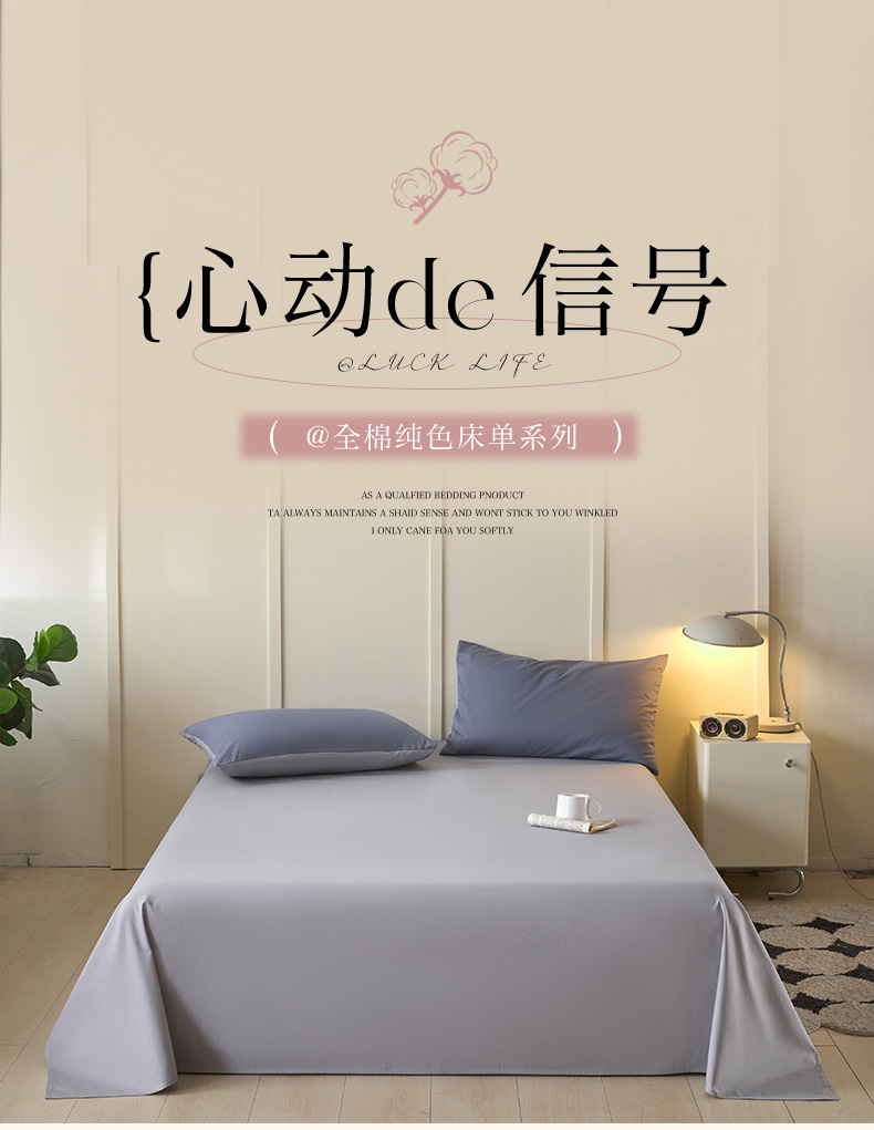 乐美家纺 2025新款全棉纯棉纯色床单床单单件单床单 石灰