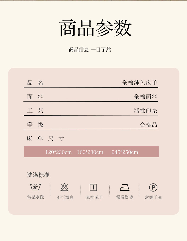 商品名称:乐美家纺 2025新款全棉纯棉纯色床单床单单件单床单 石灰