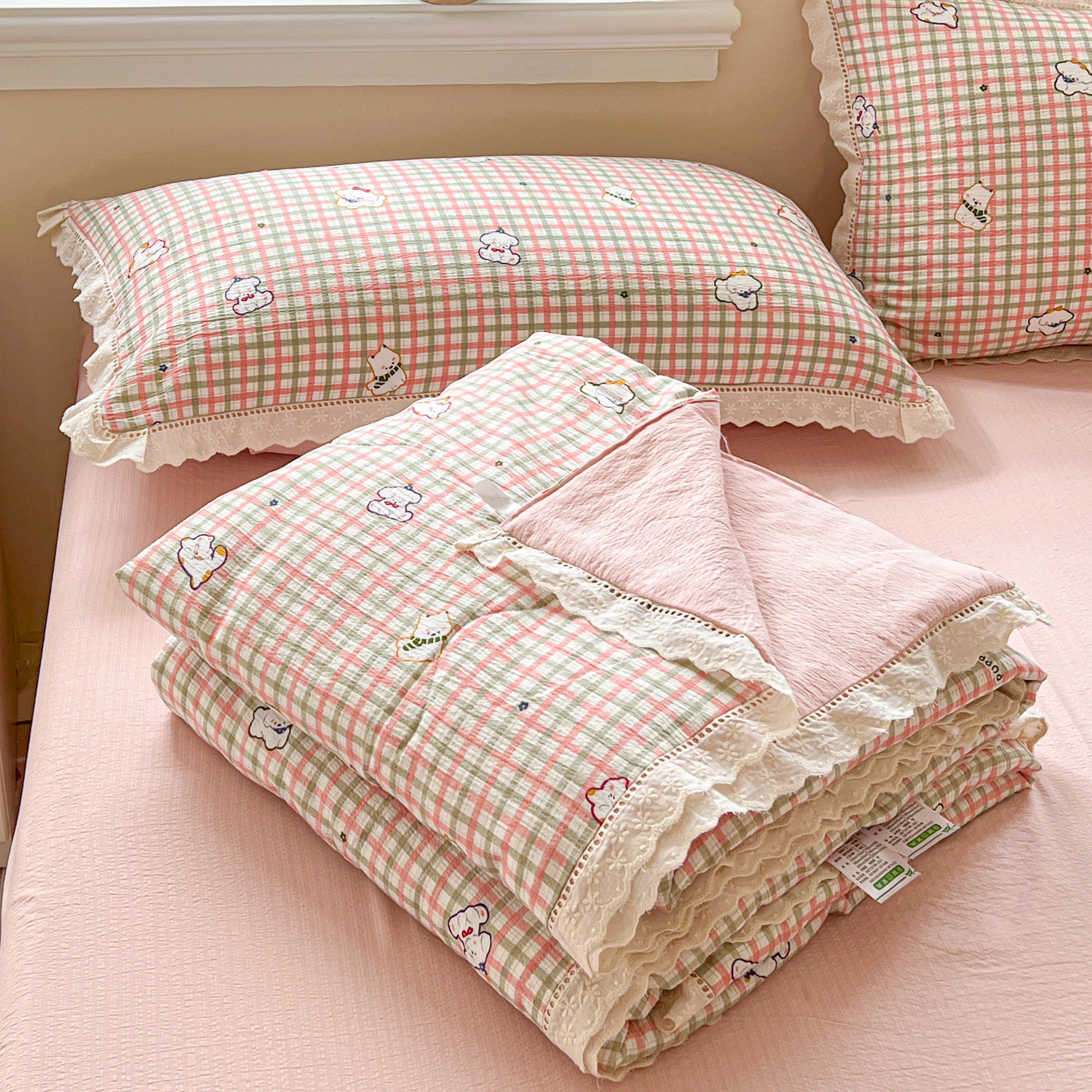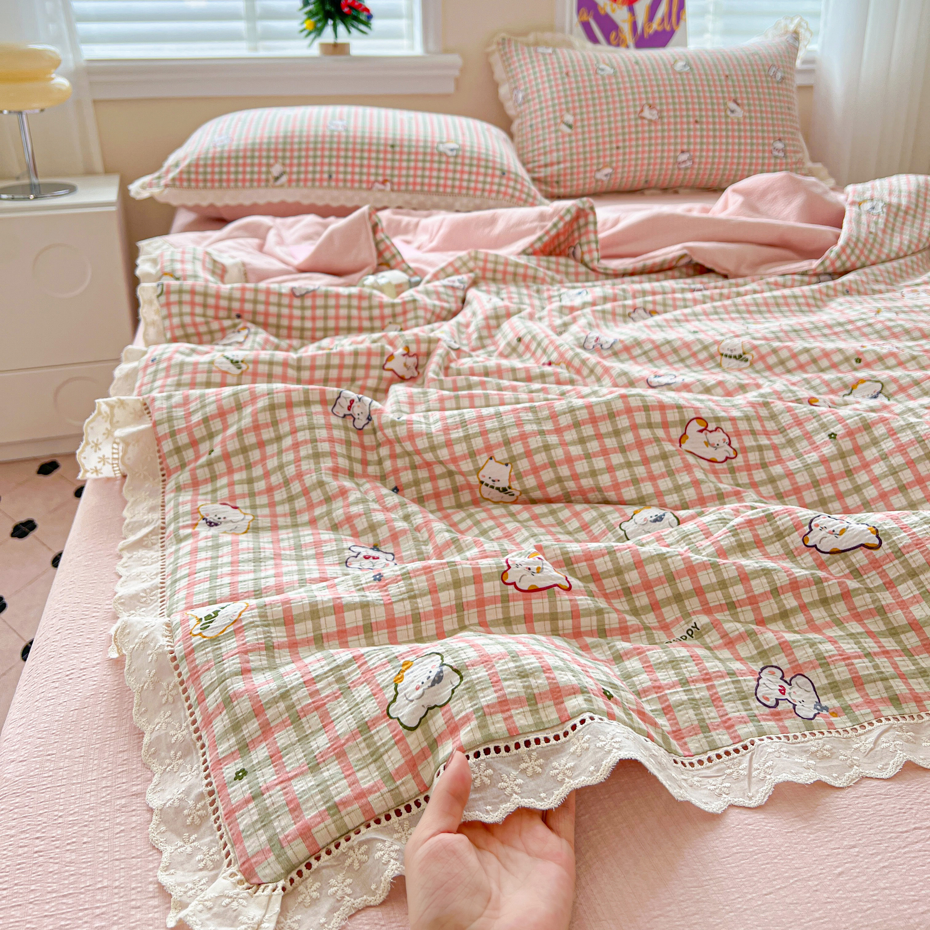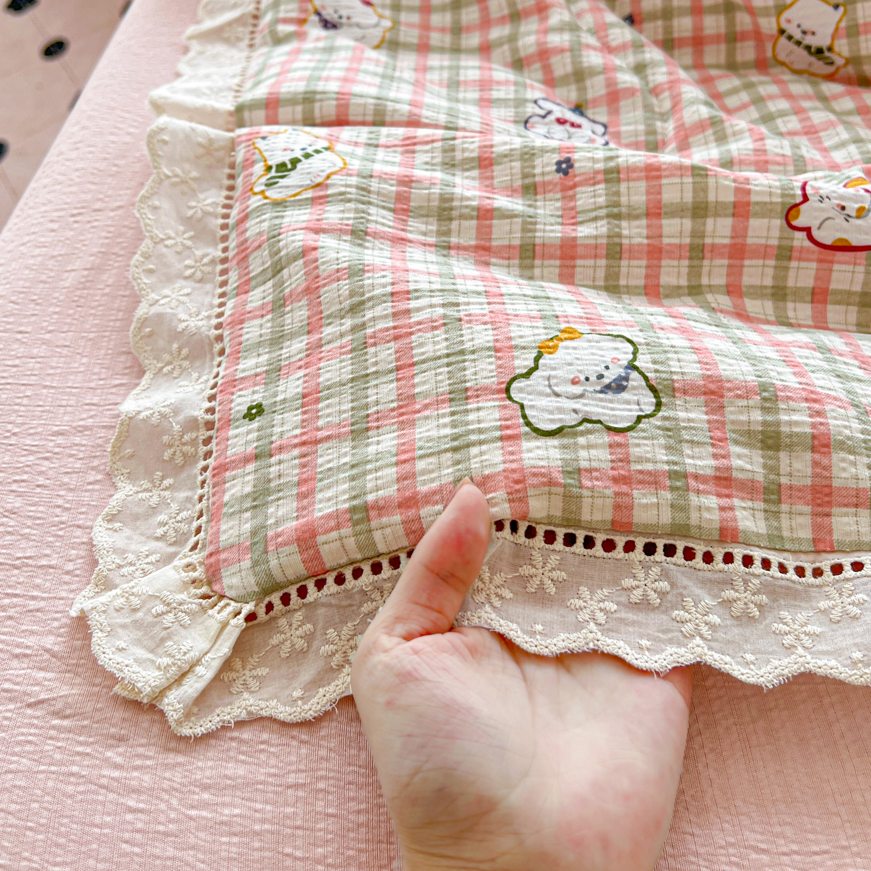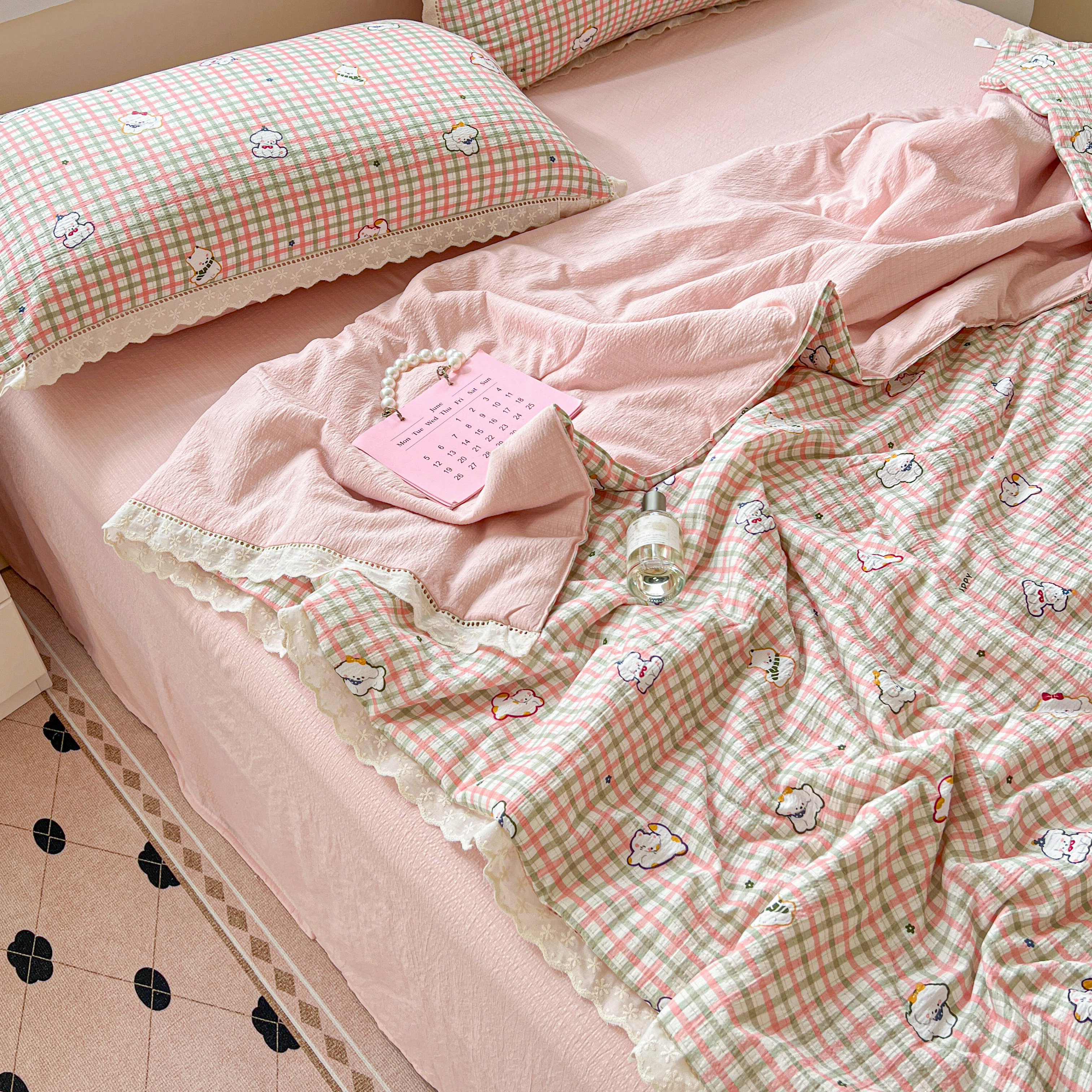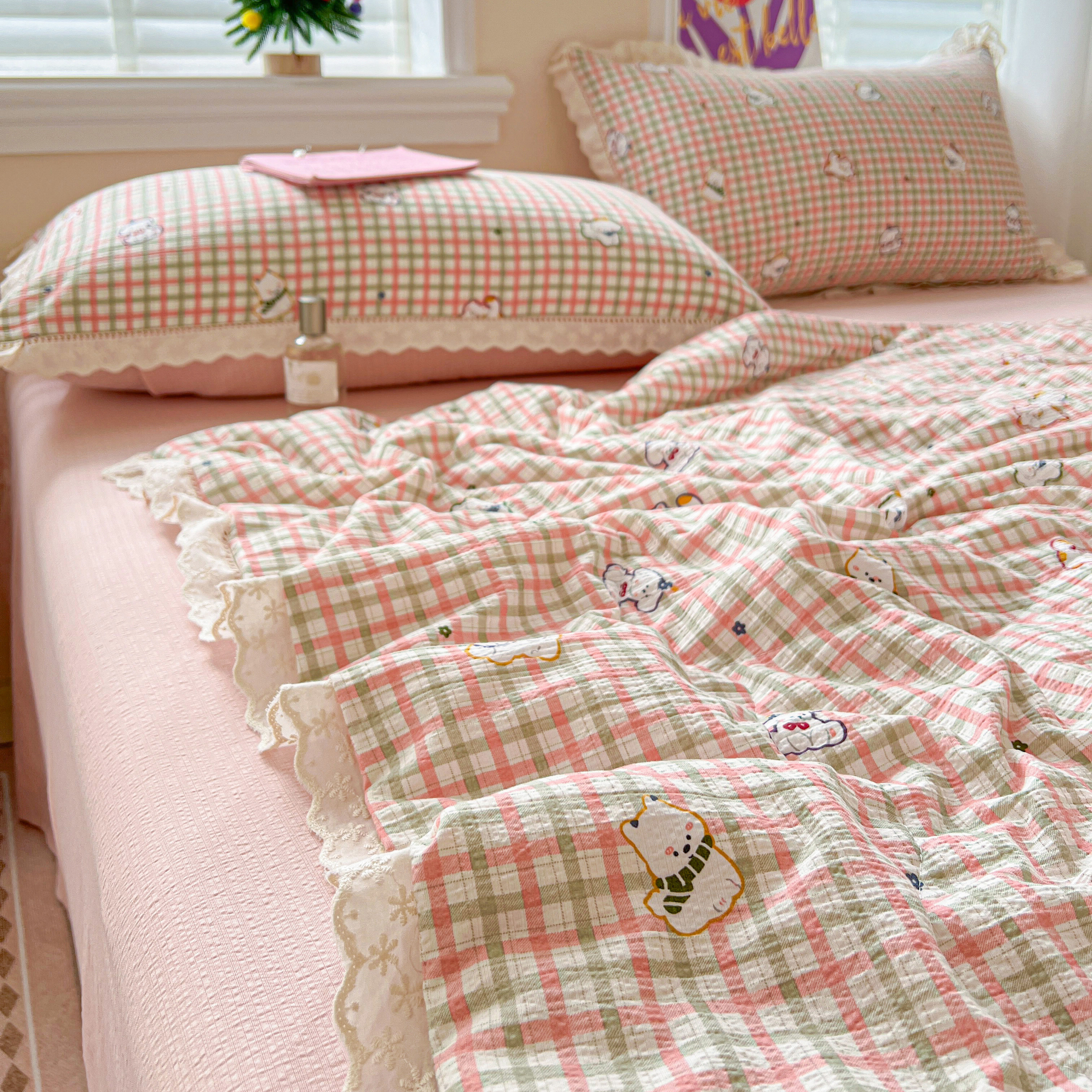 2025新款云感皱皱纱全棉花边款夏被四件套 格格西高地
