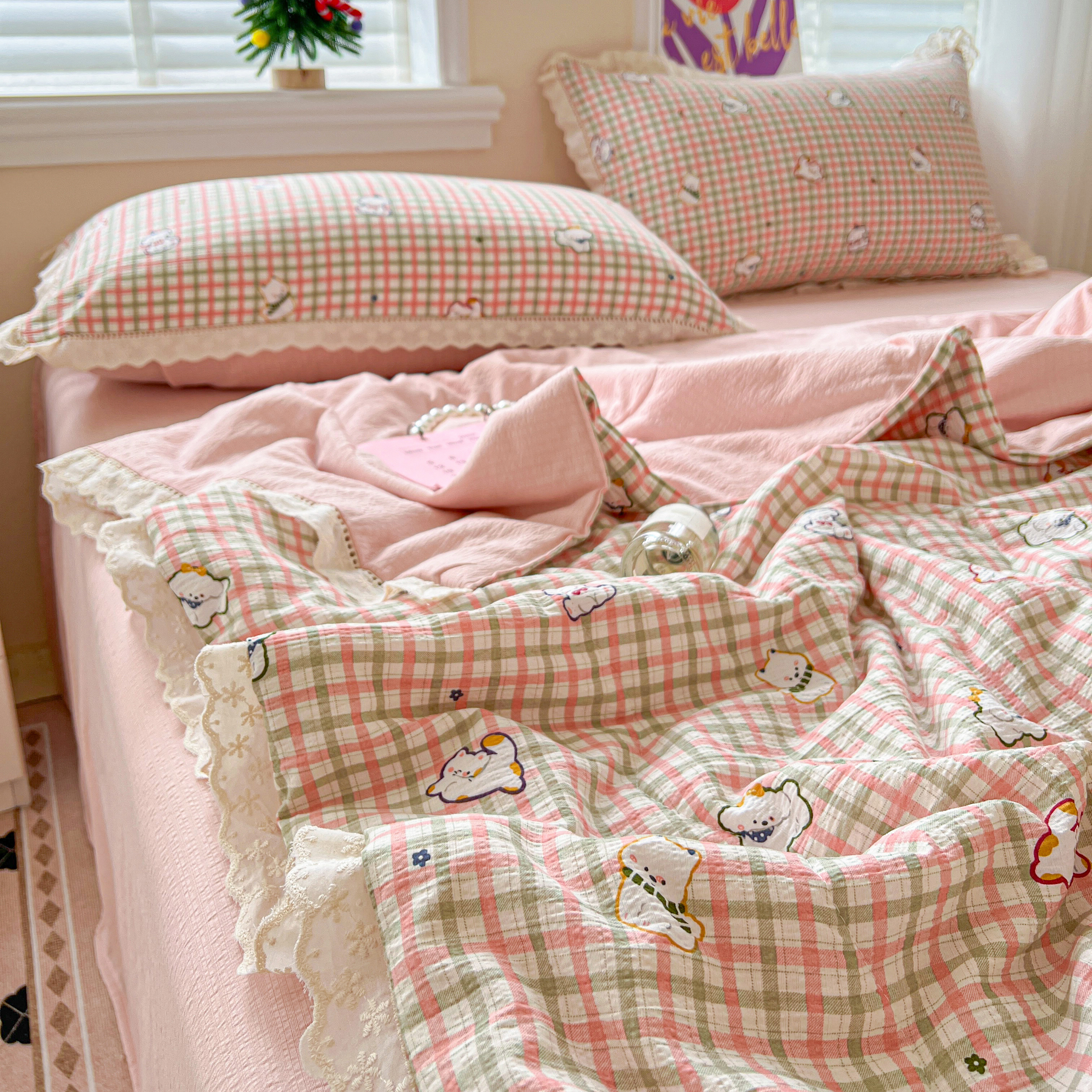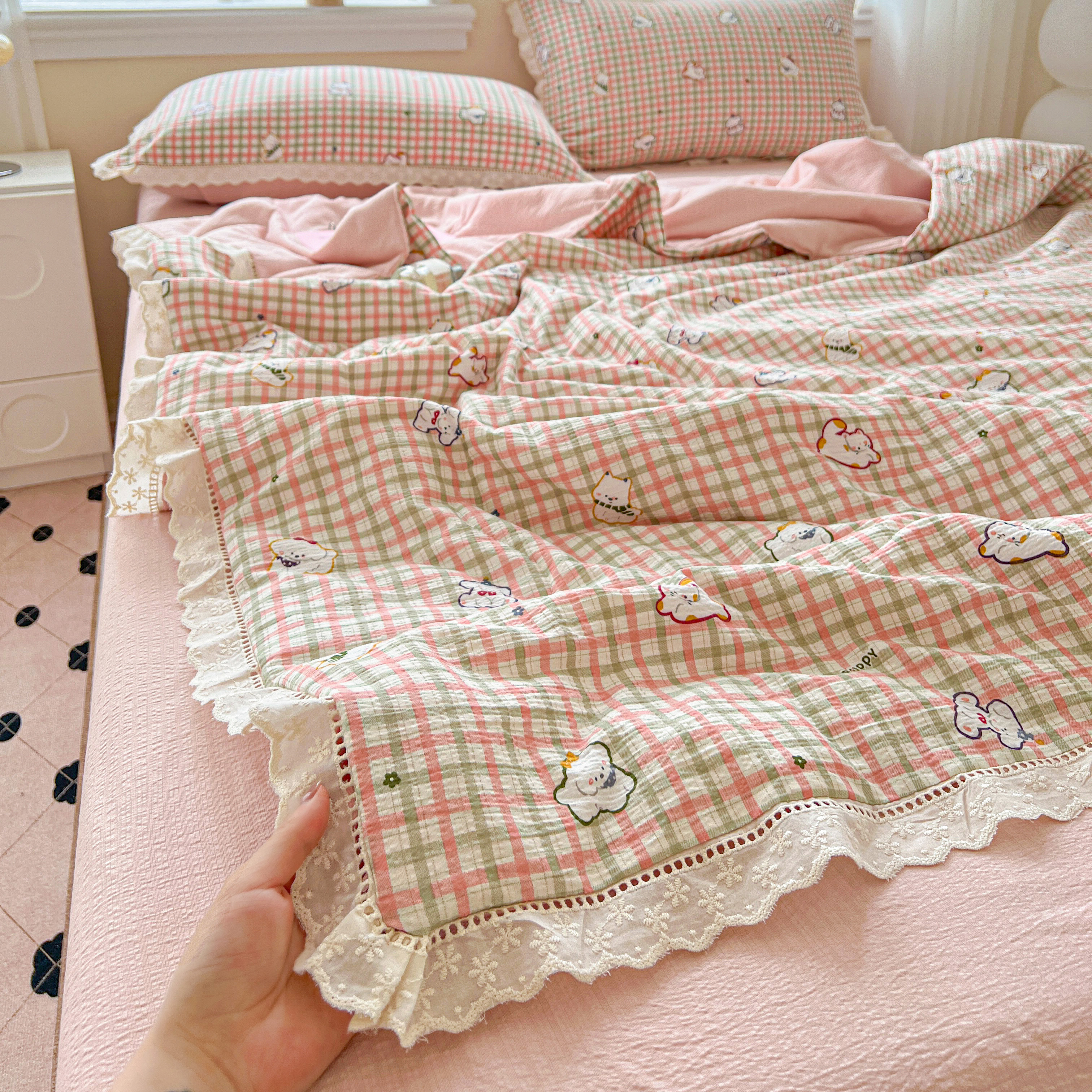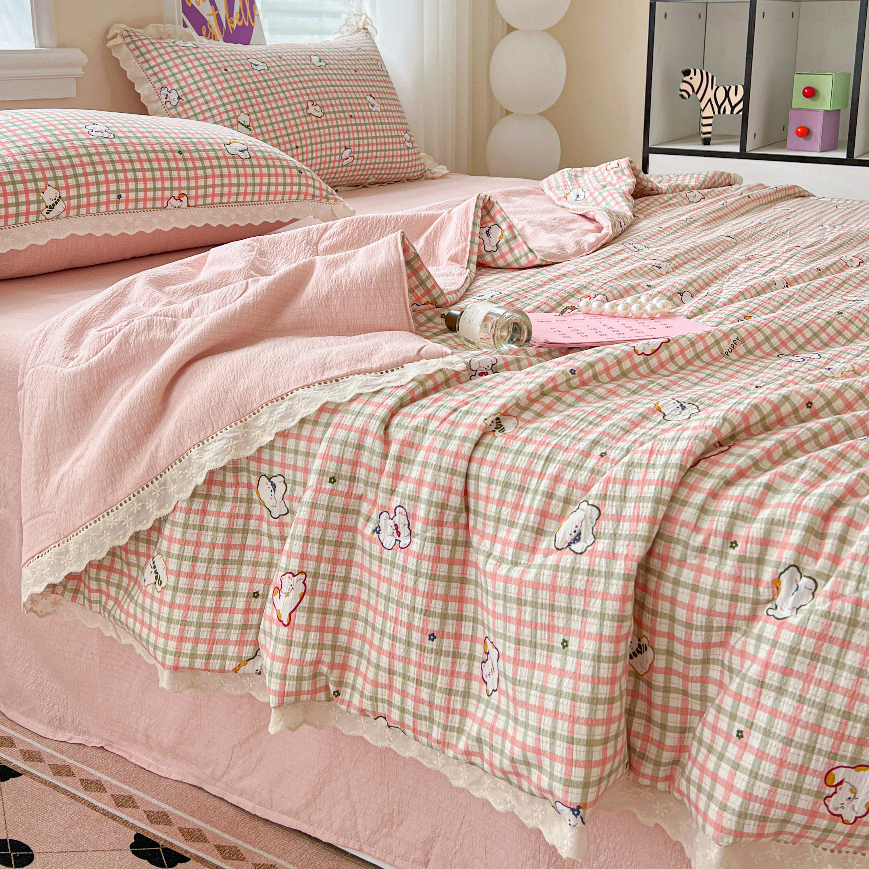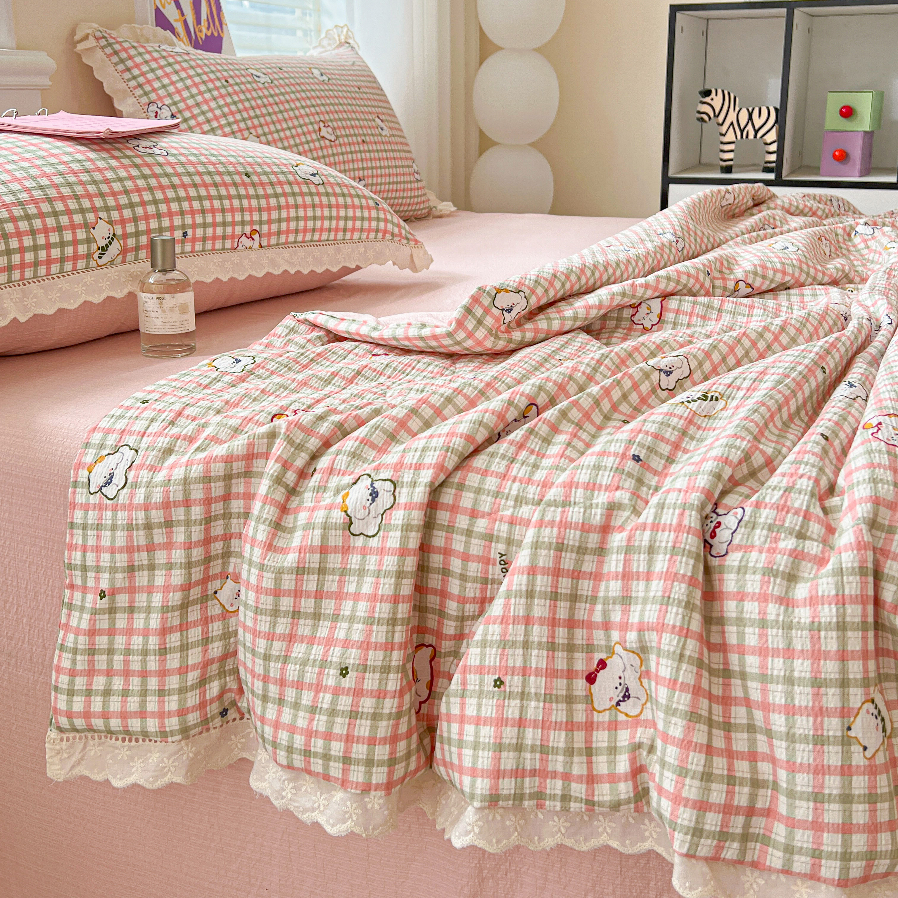 2025新款云感皱皱纱全棉花边款夏被四件套 格格西高地