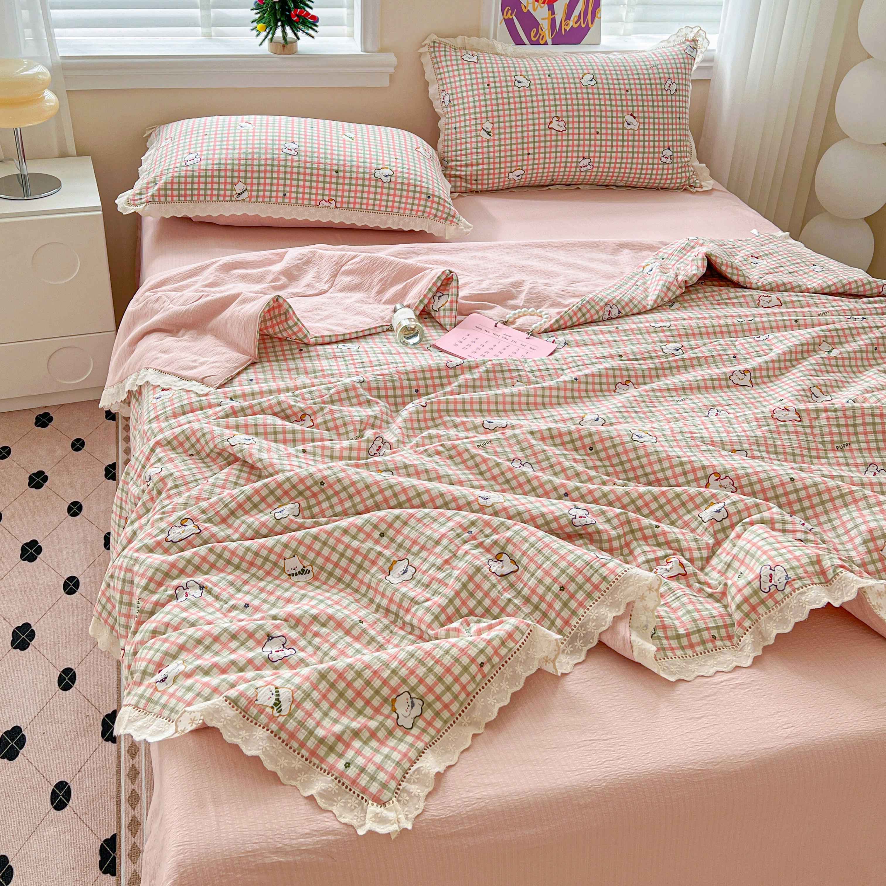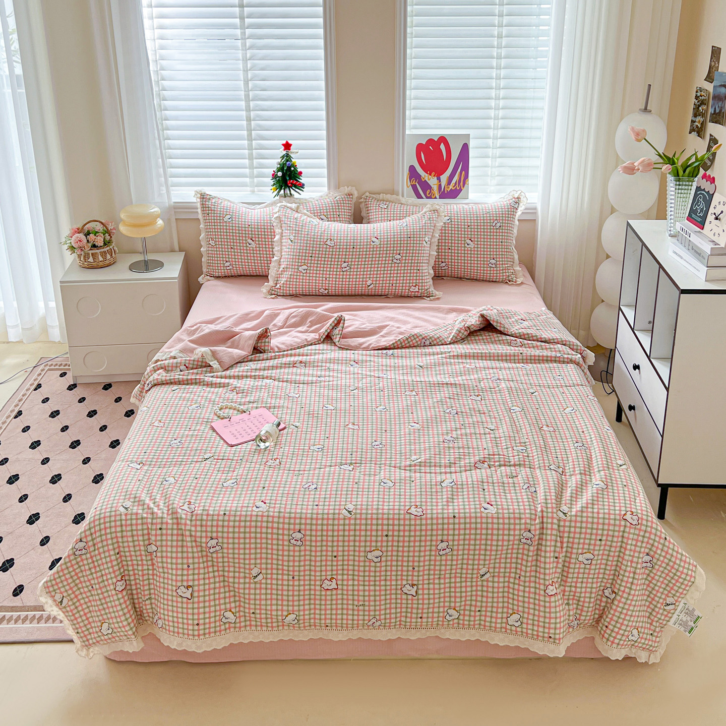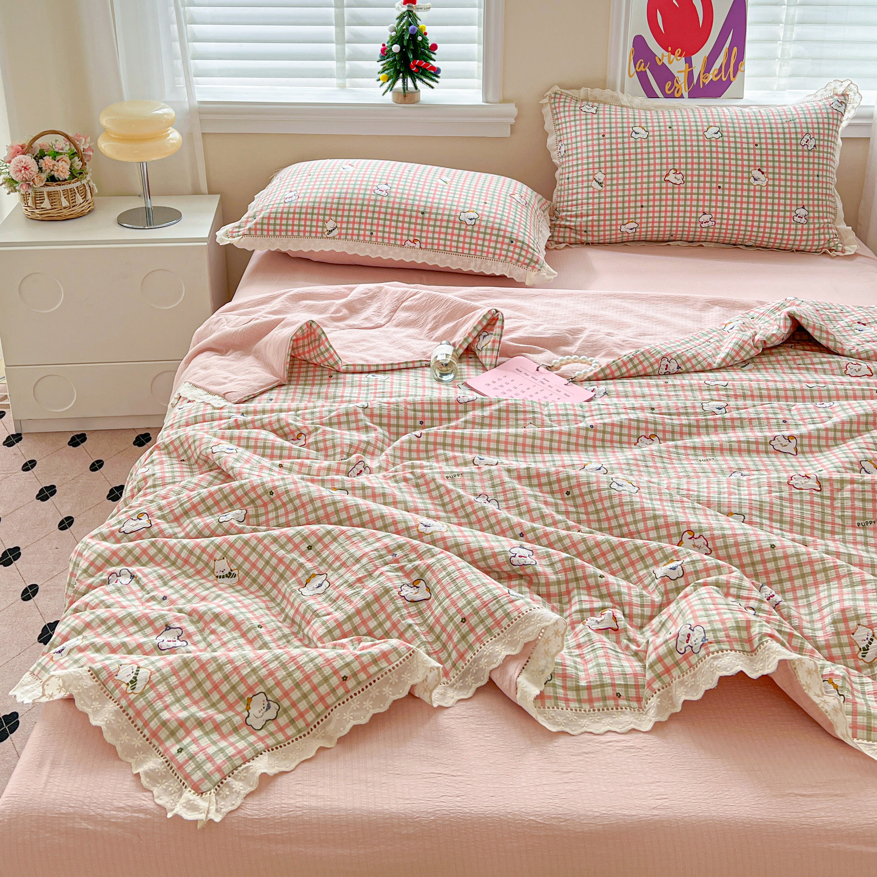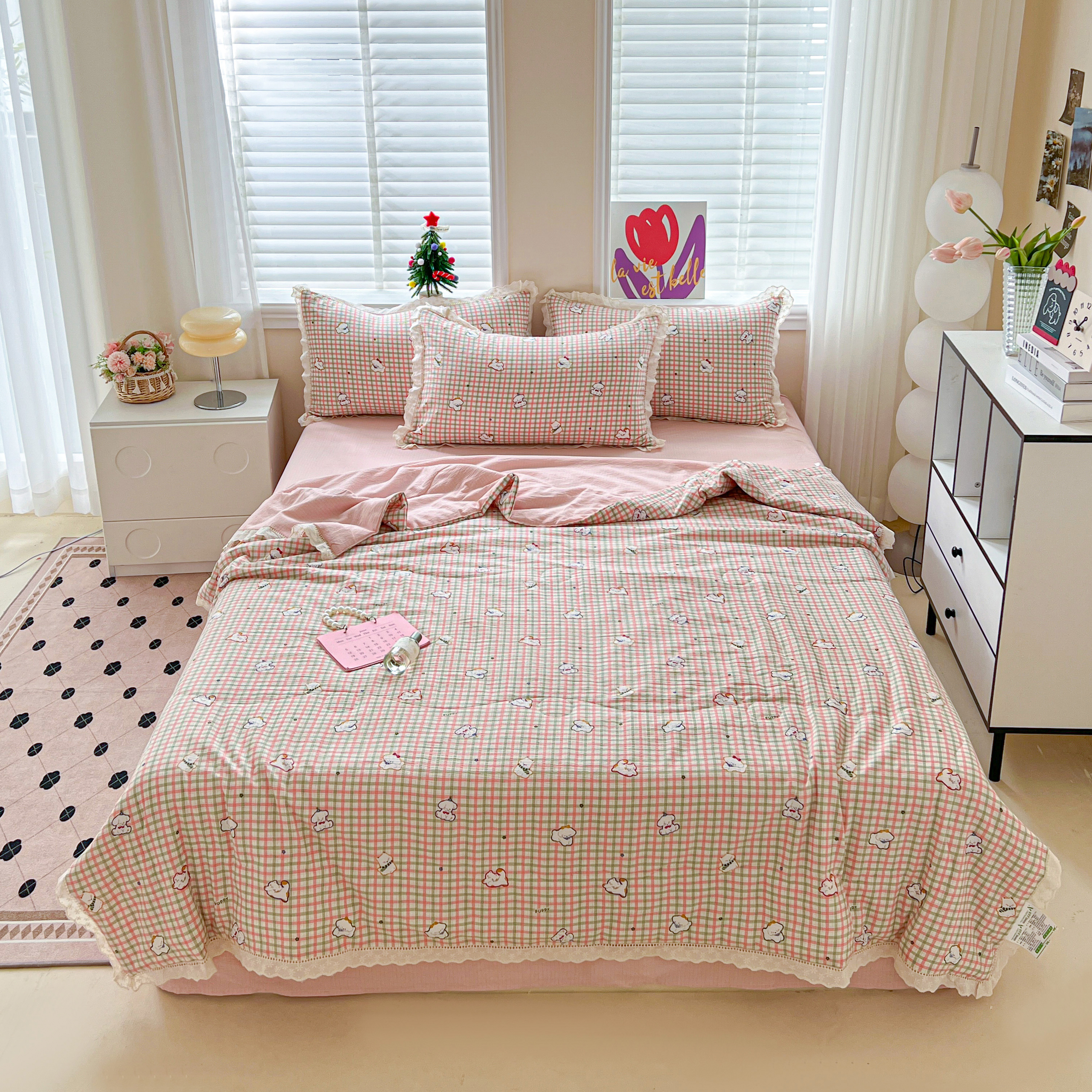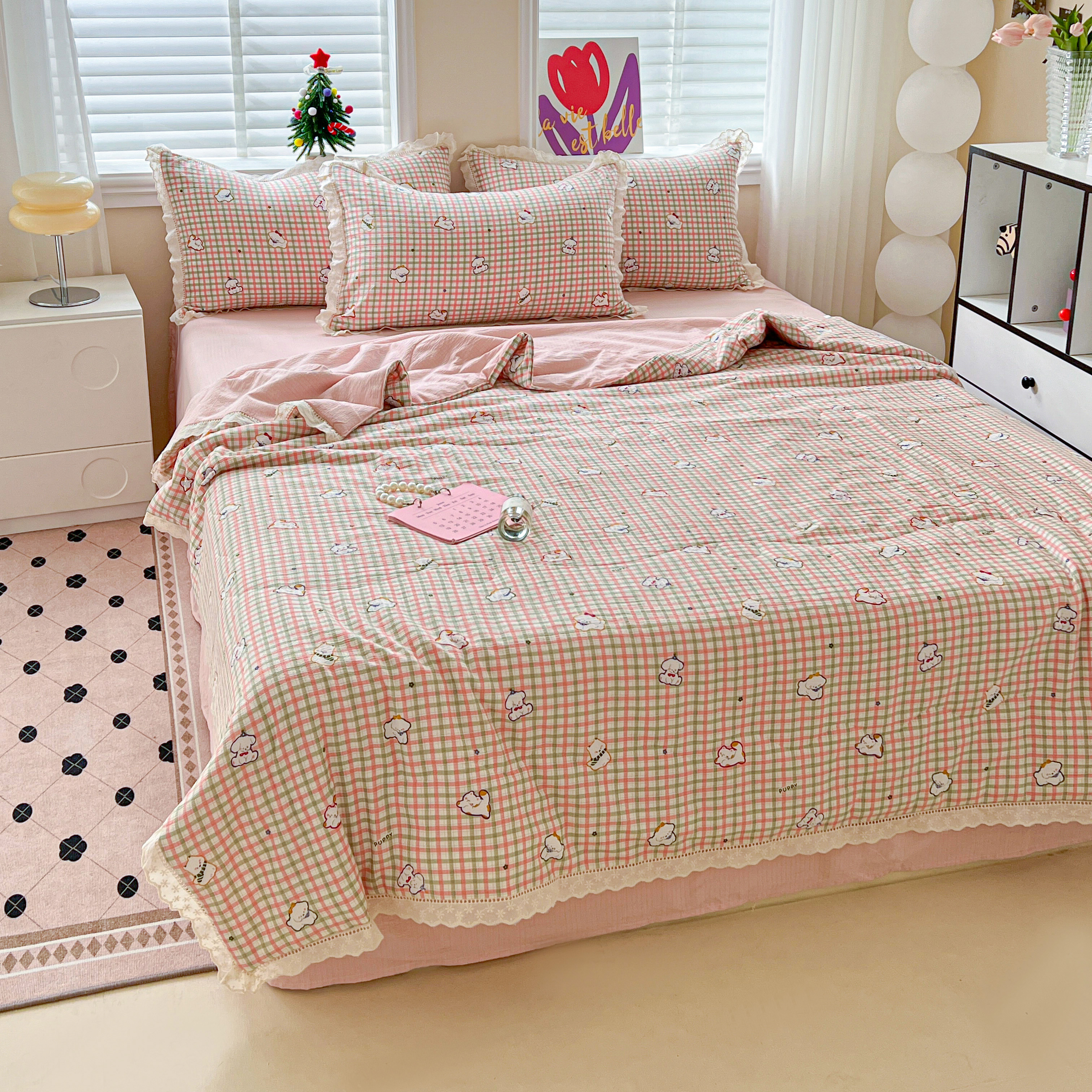 2025新款云感皱皱纱全棉花边款夏被四件套 格格西高地